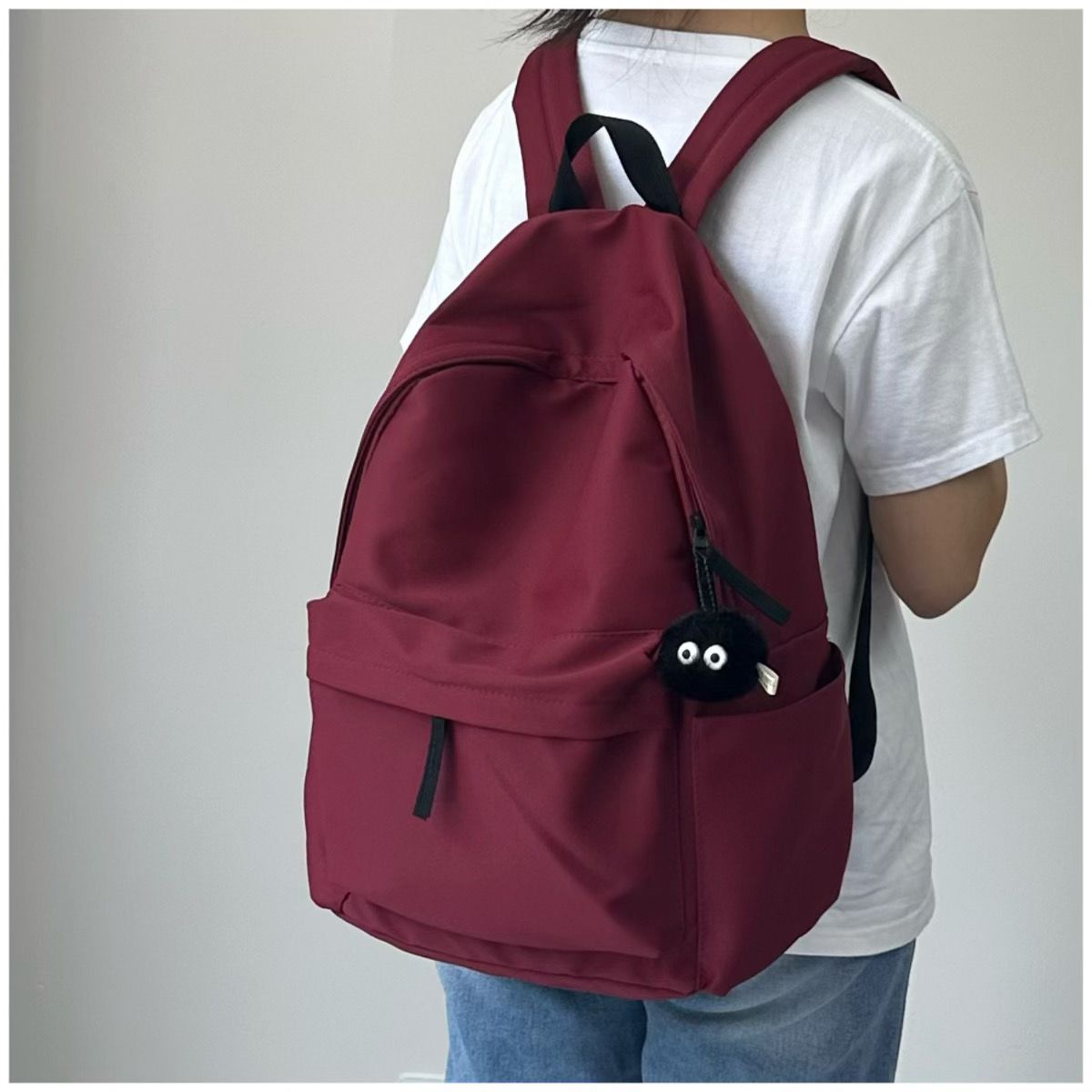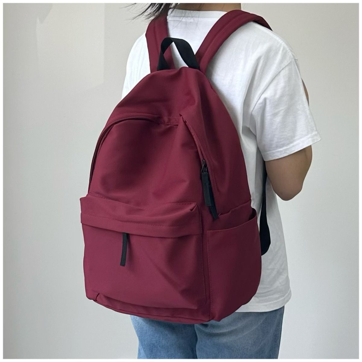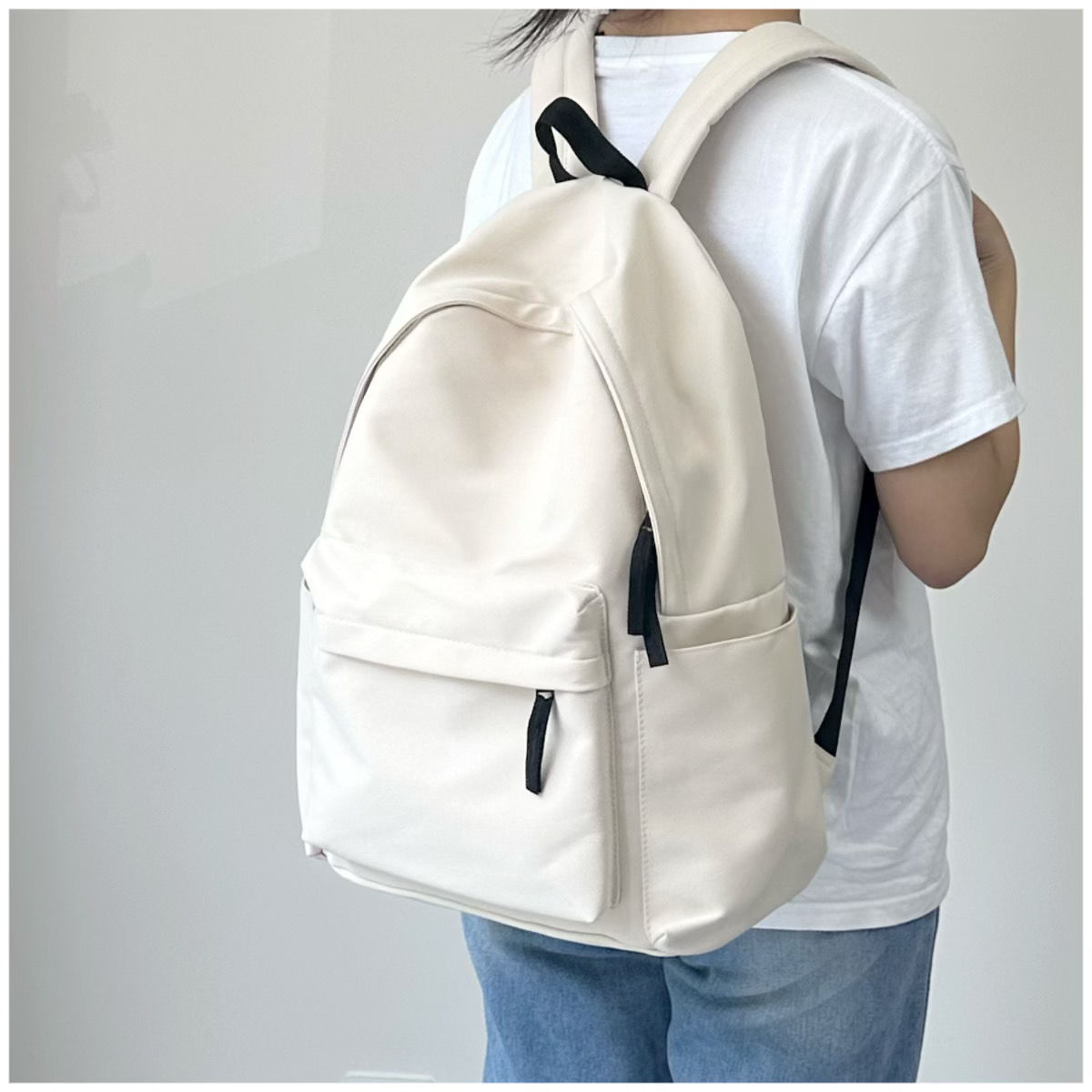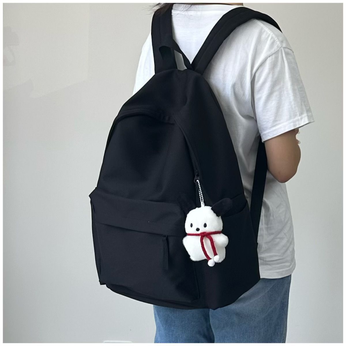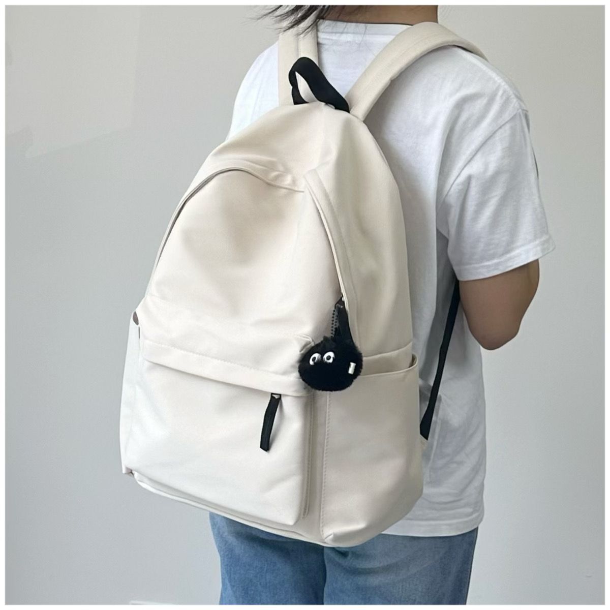 日系书包少女古着感纯色百搭双肩包初中高中大学生大容量背包男生