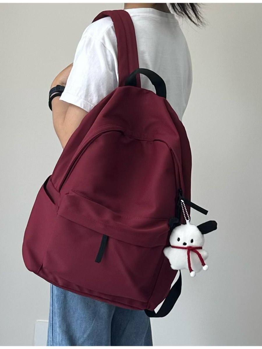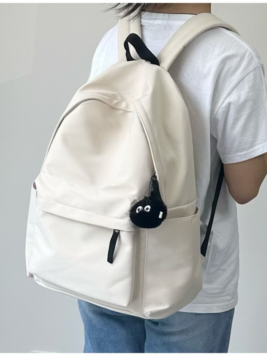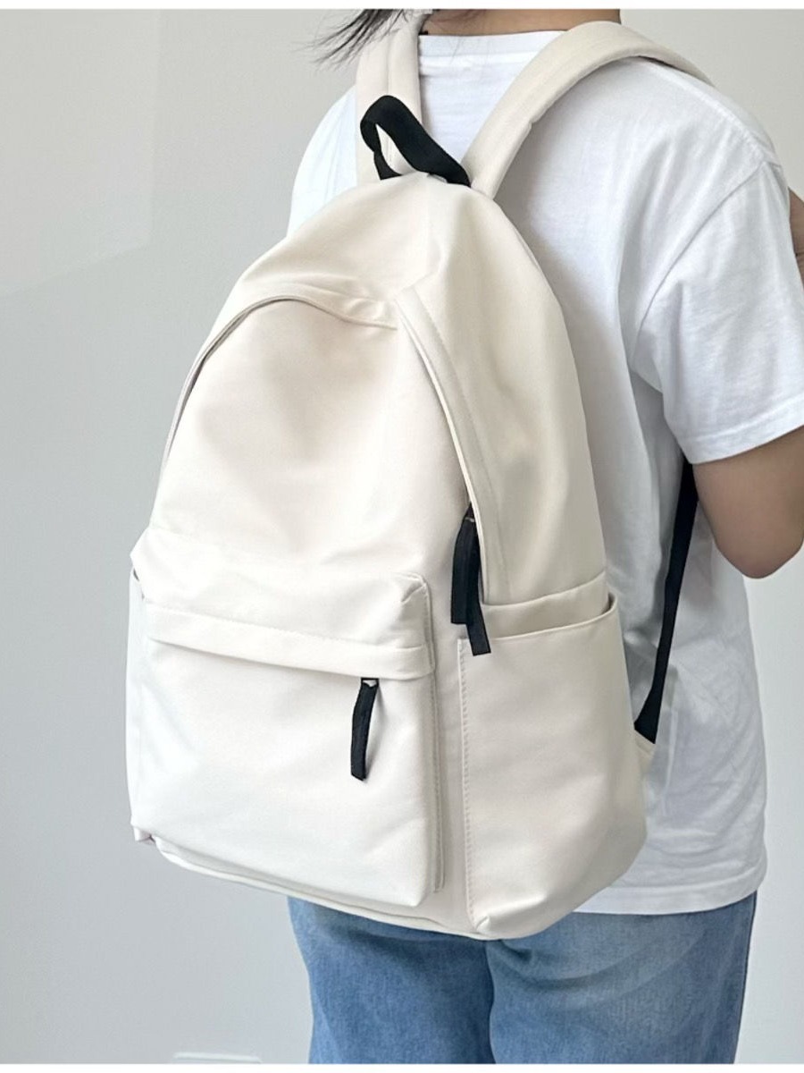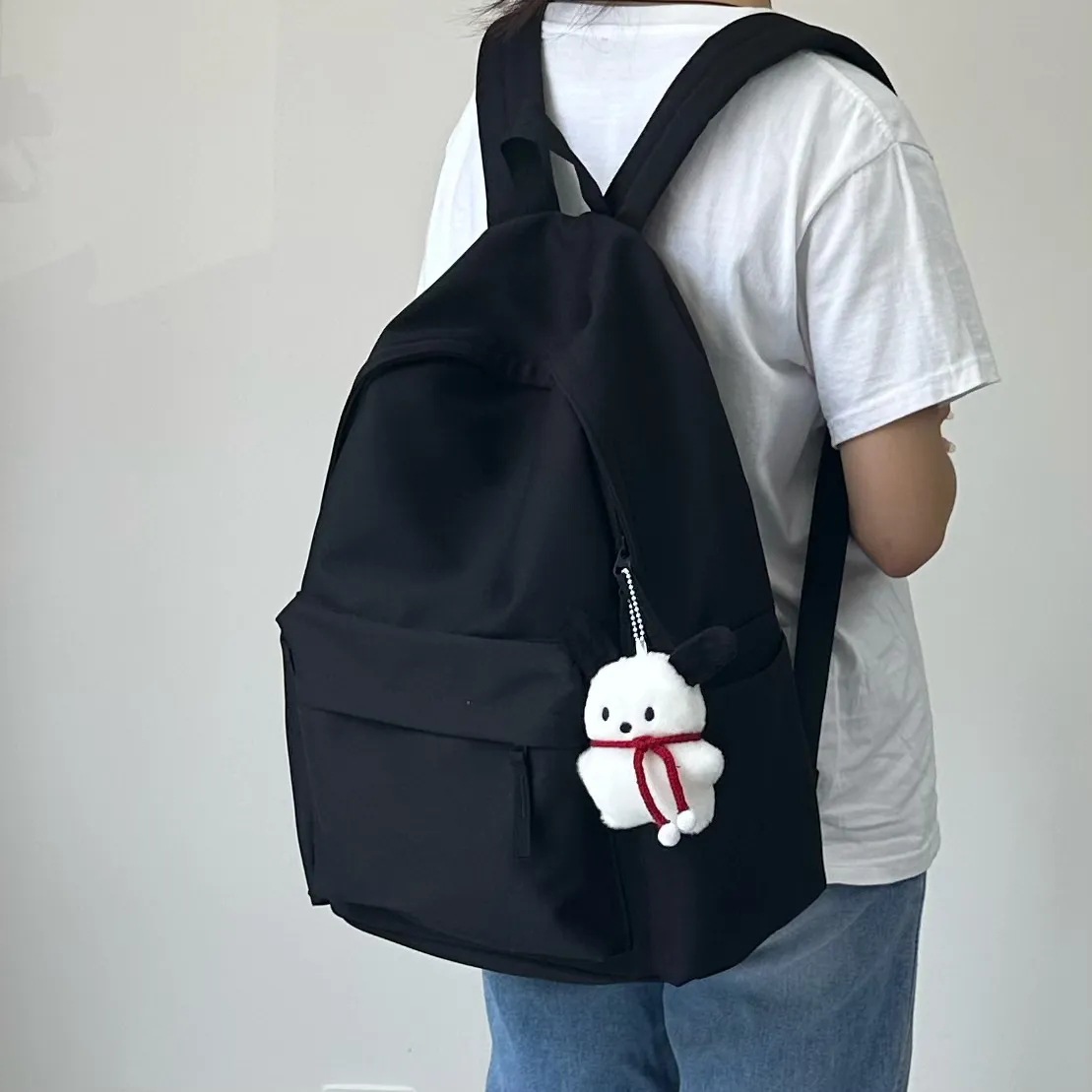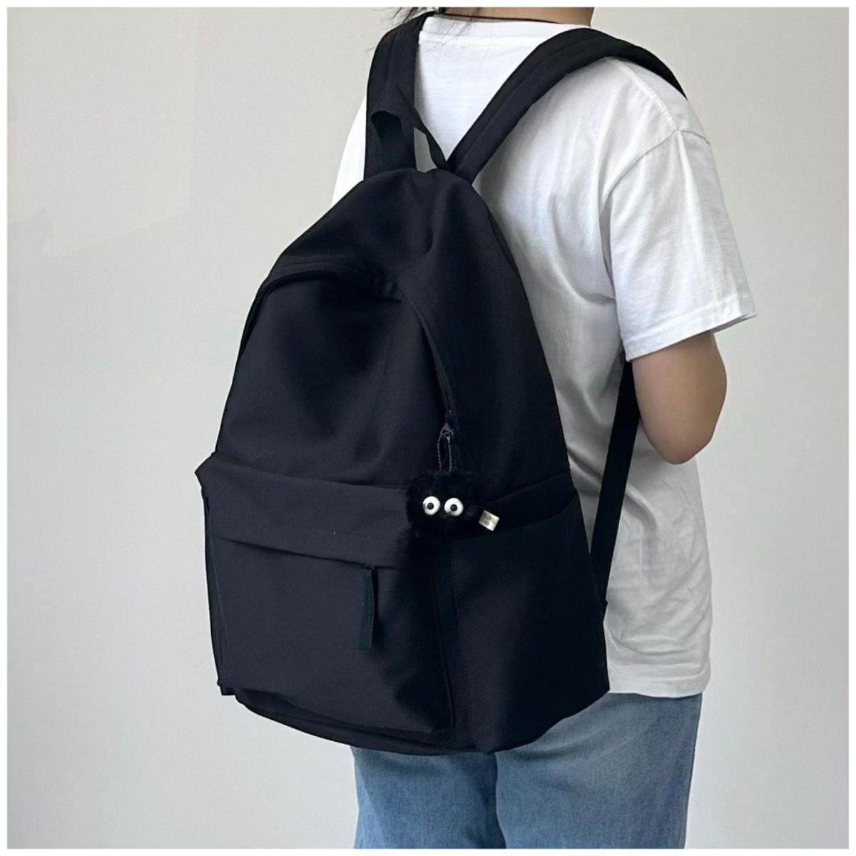 日系书包少女古着感纯色百搭双肩包初中高中大学生大容量背包男生