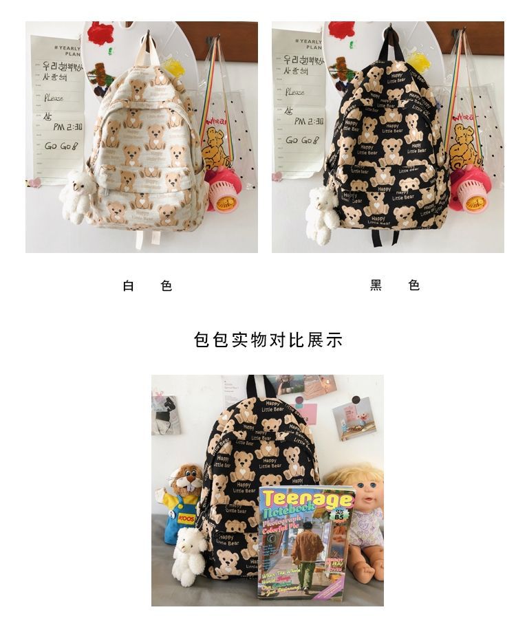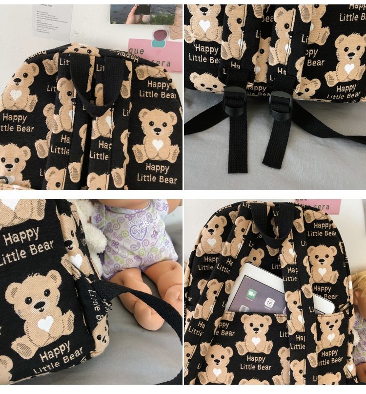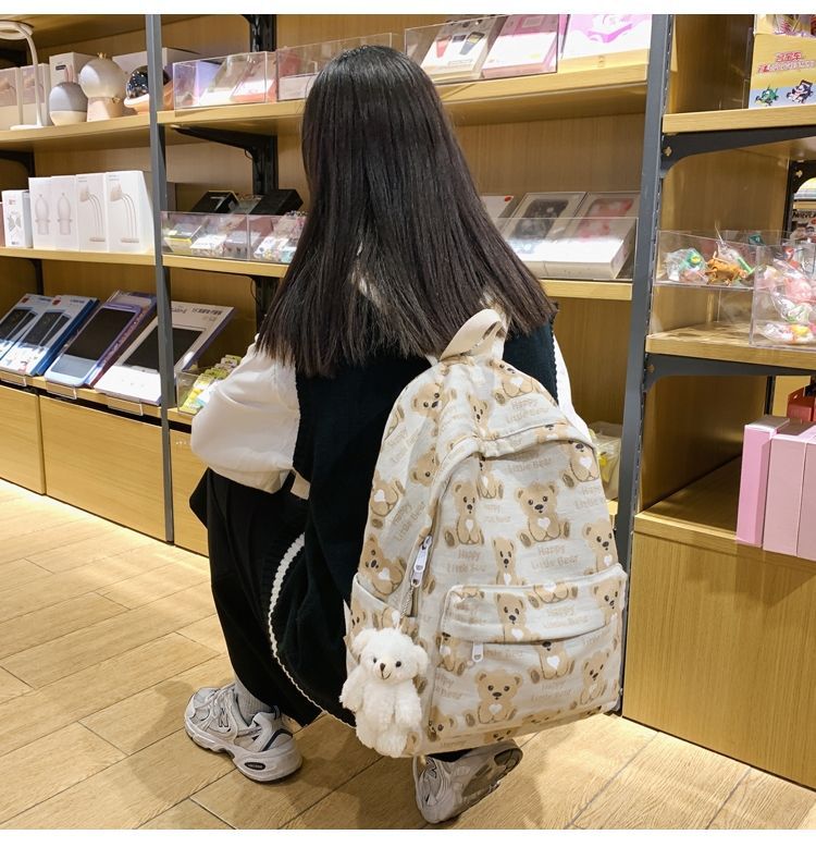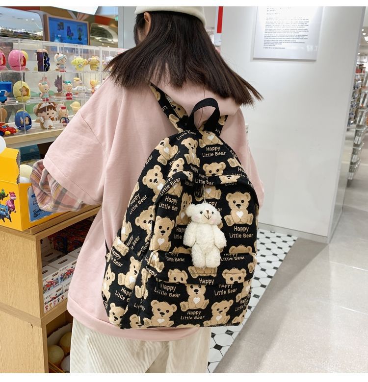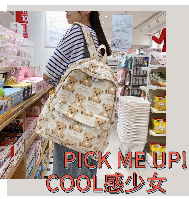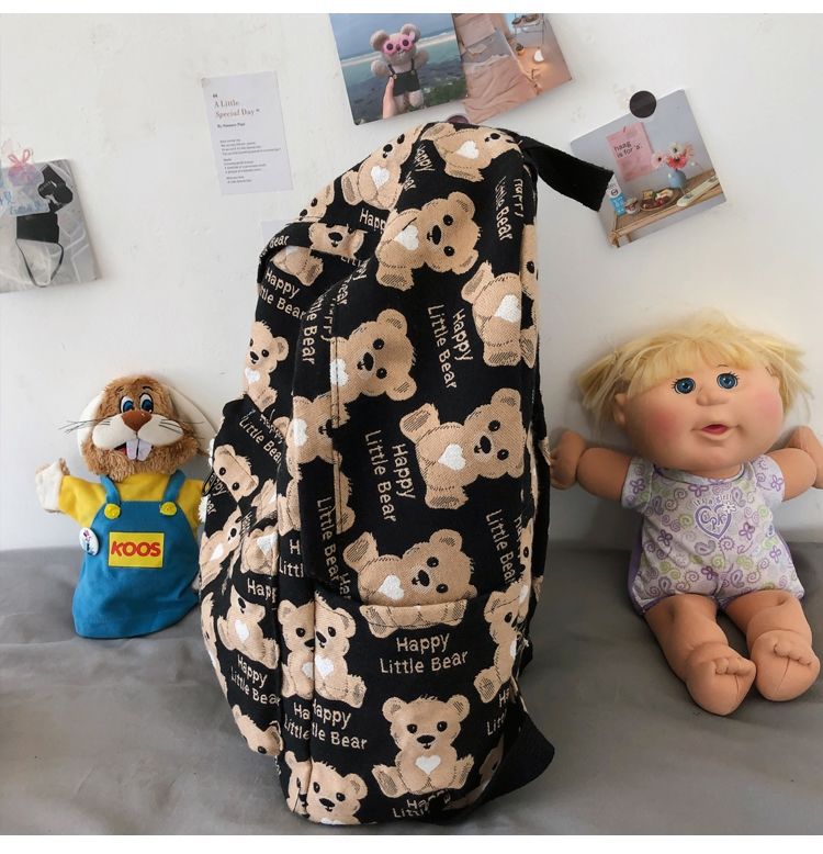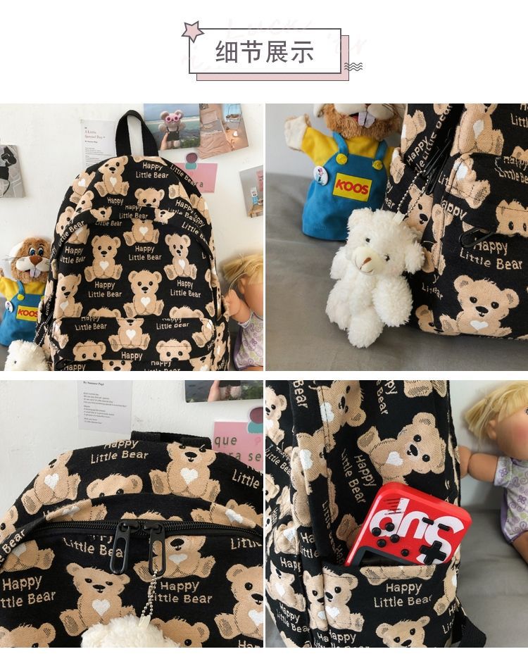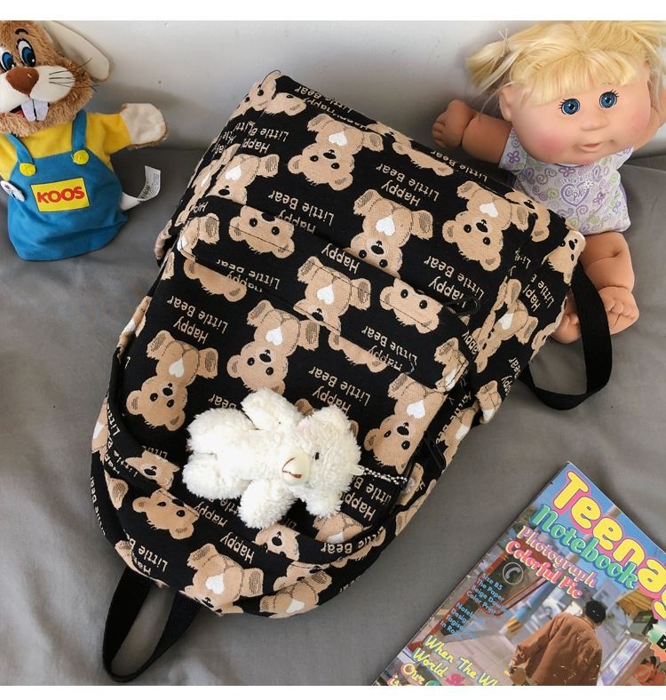 韩国ins小熊学生双肩包女 百搭帆布背包学院风可爱软妹少女书包萌