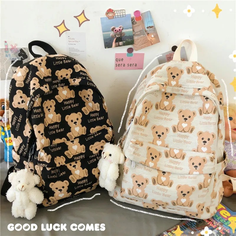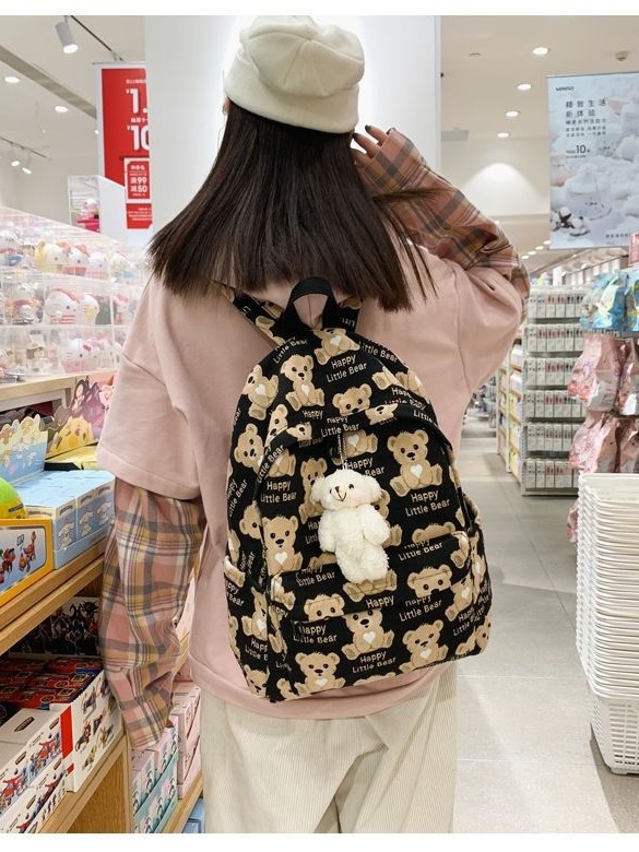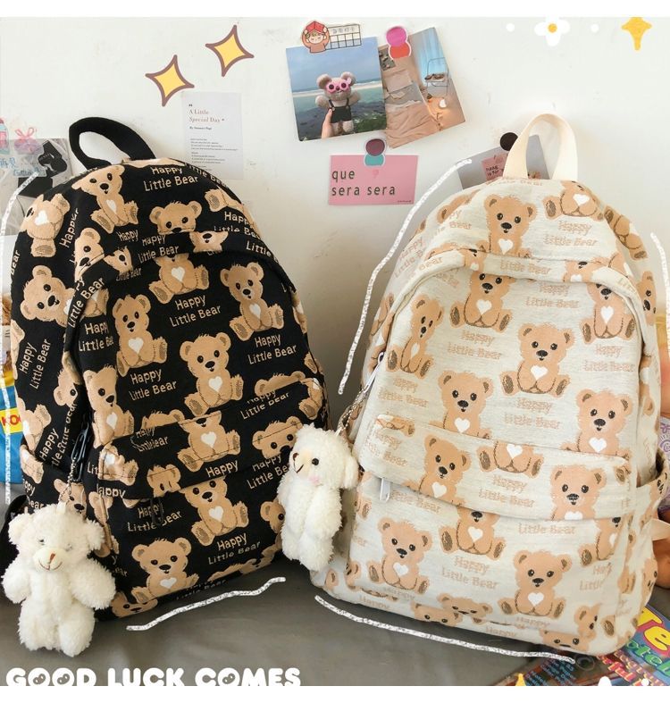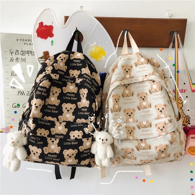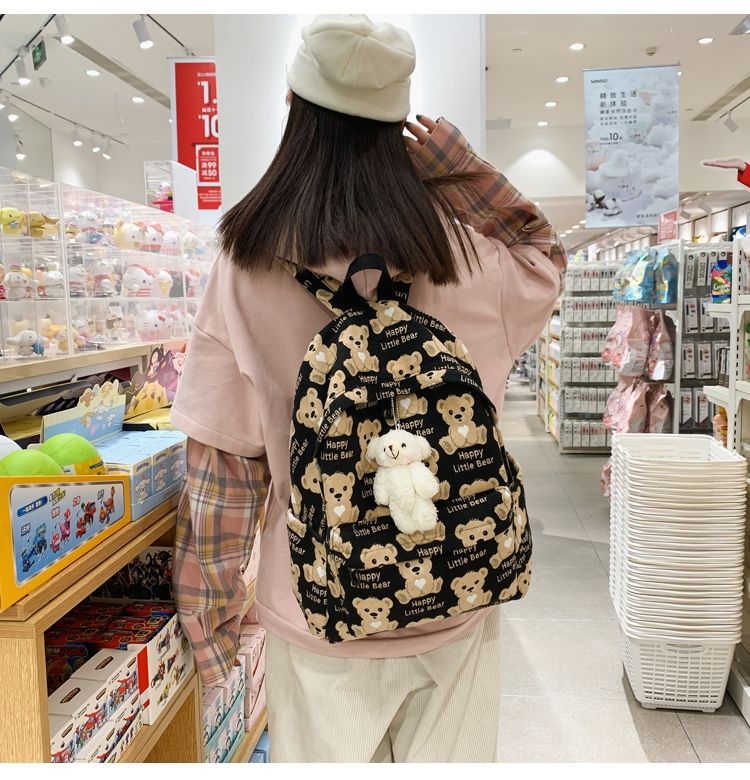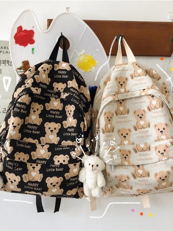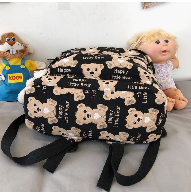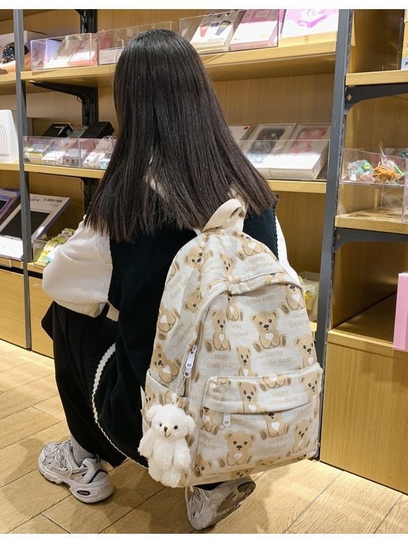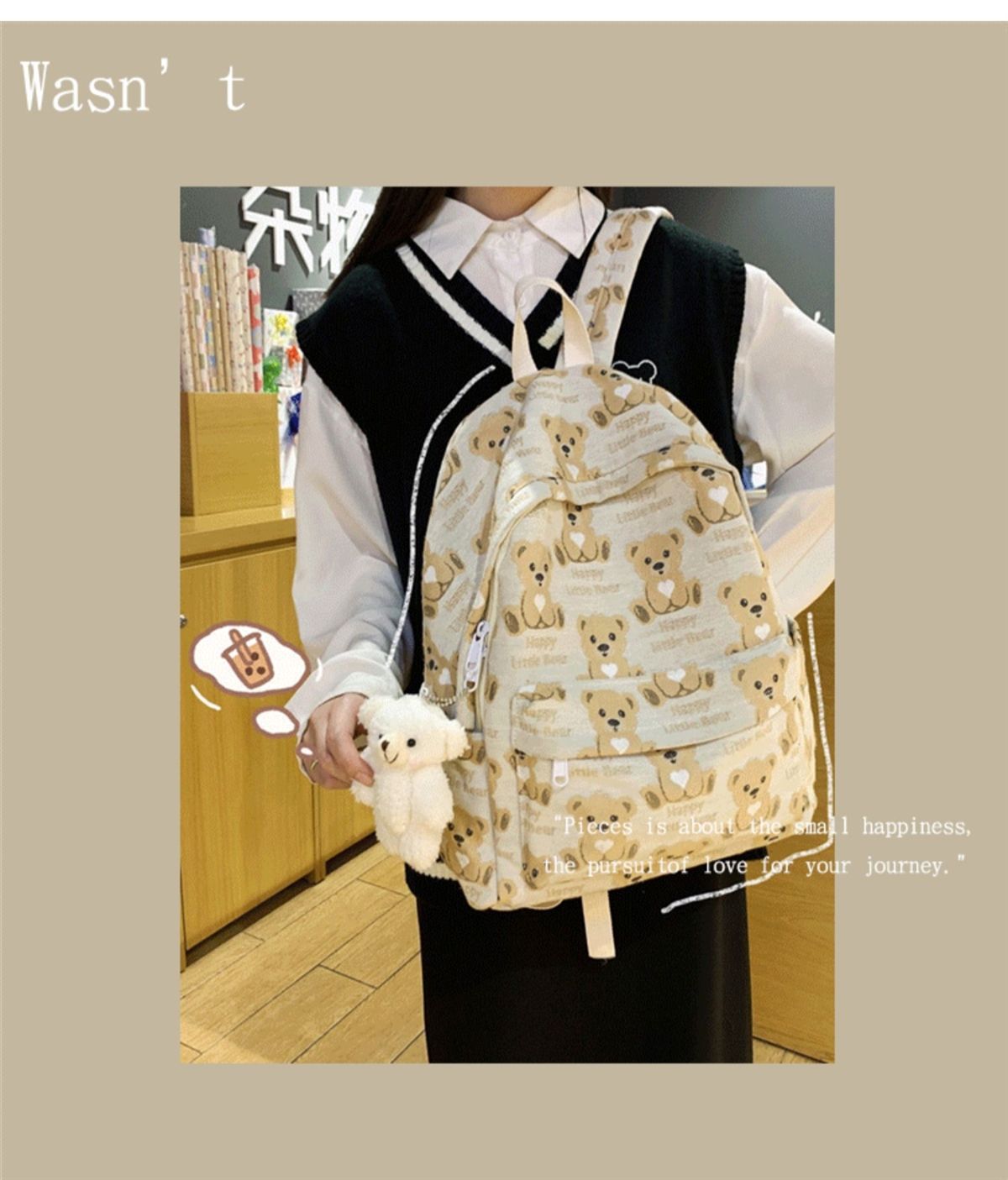 韩国ins小熊学生双肩包女 百搭帆布背包学院风可爱软妹少女书包萌