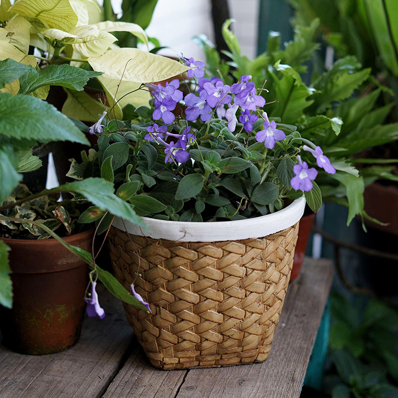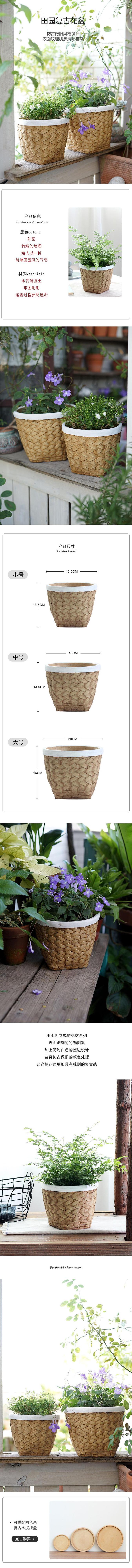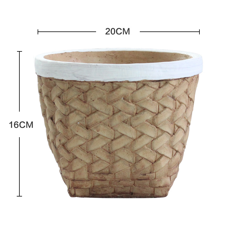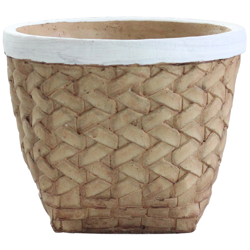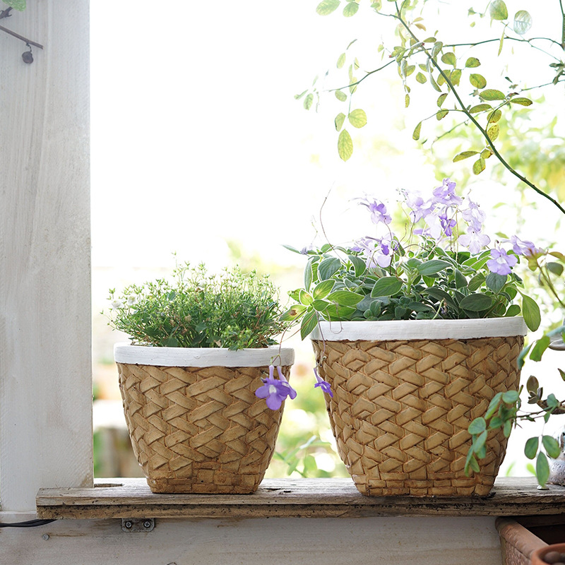 个性复古水泥花盆欧式家用创意编织竹编北欧简约绿植藤编盆栽盆器