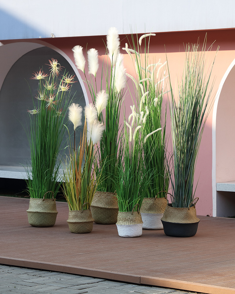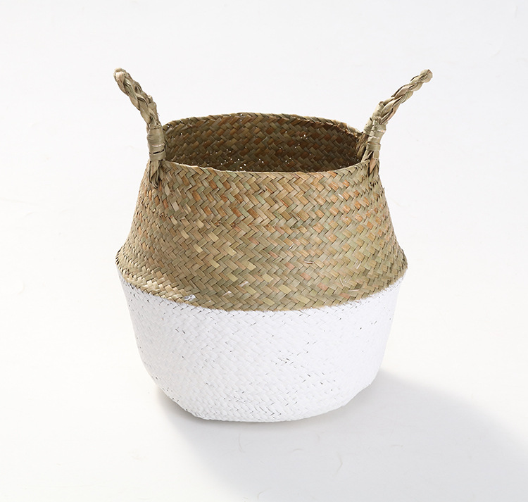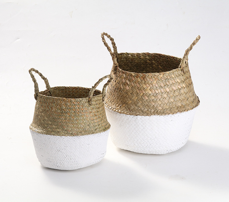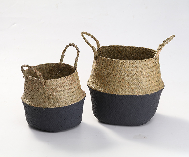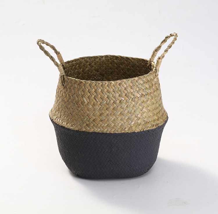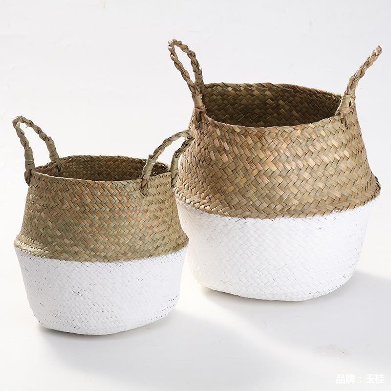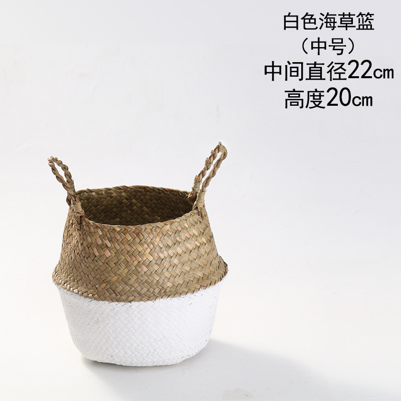 北欧家居客厅装饰手工编织手提折叠篮子收纳藤筐海草花篮花盆摆件