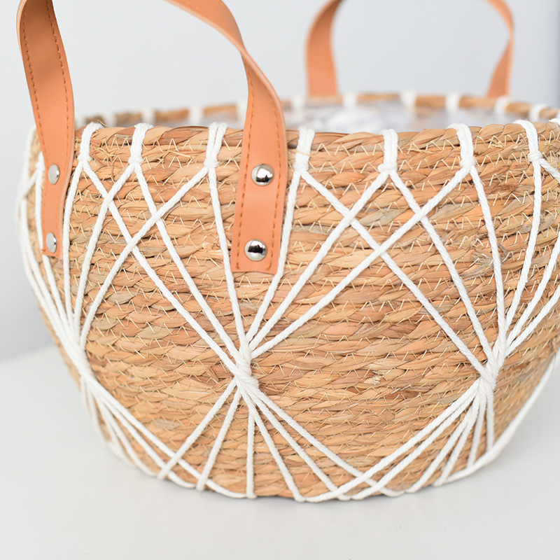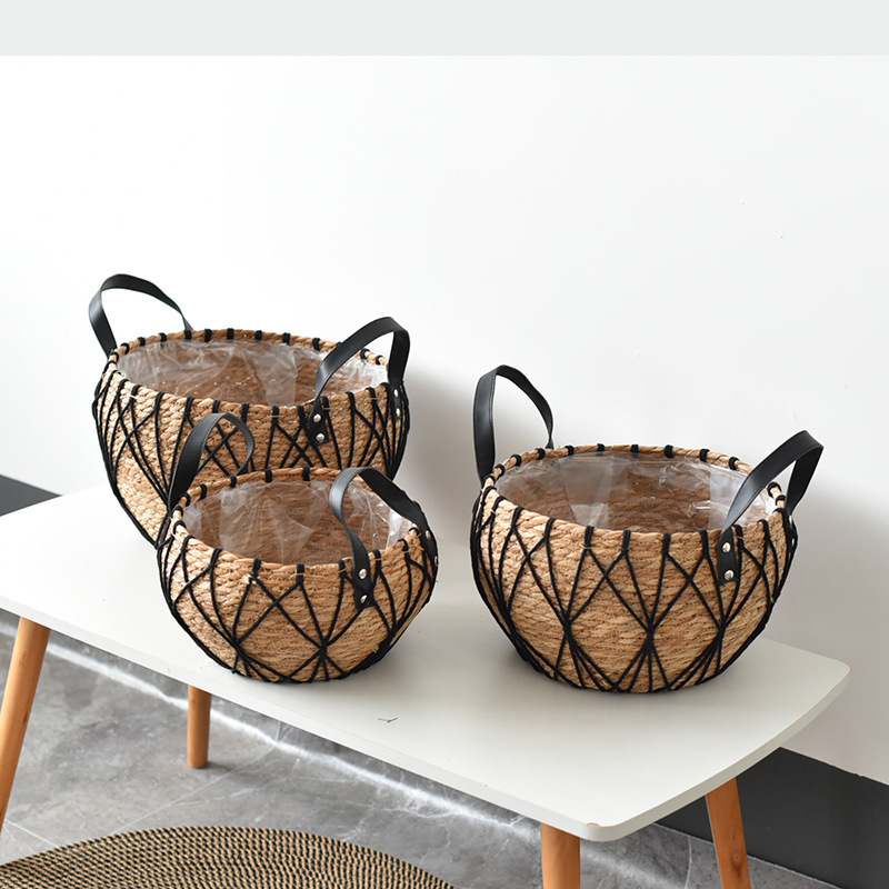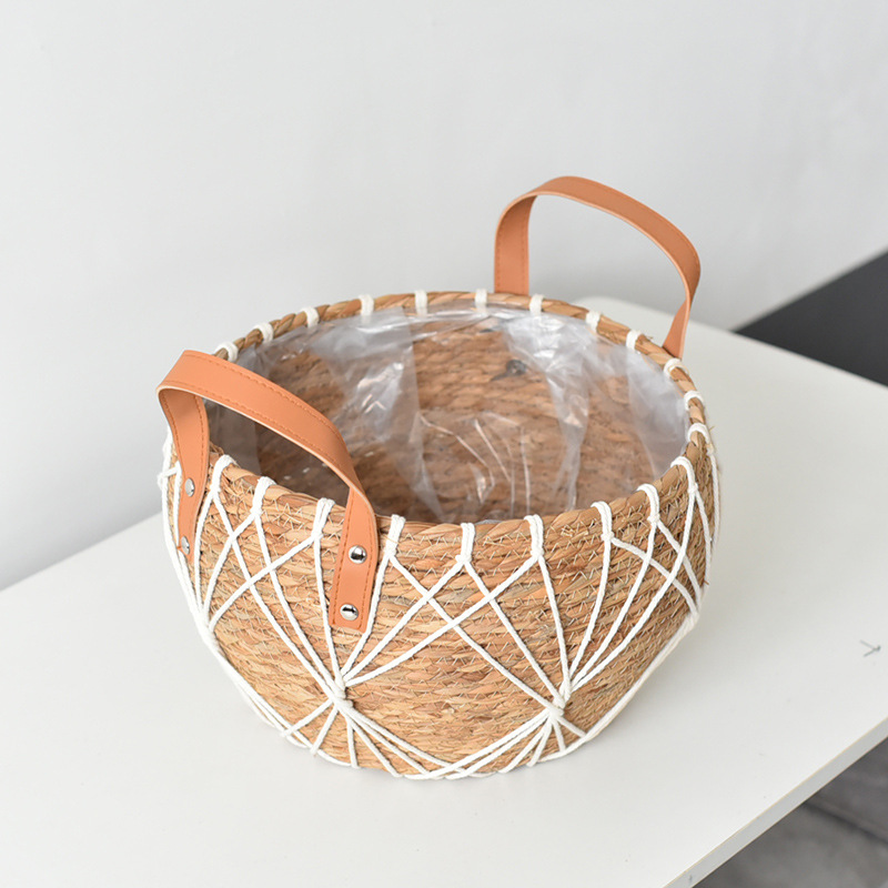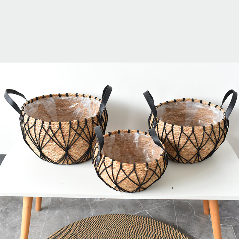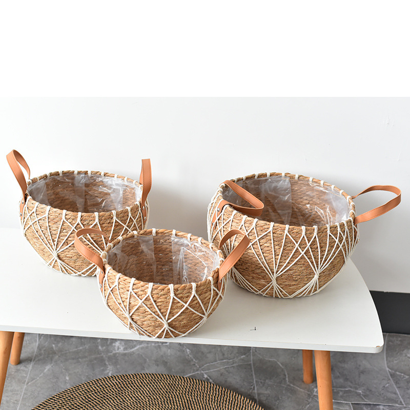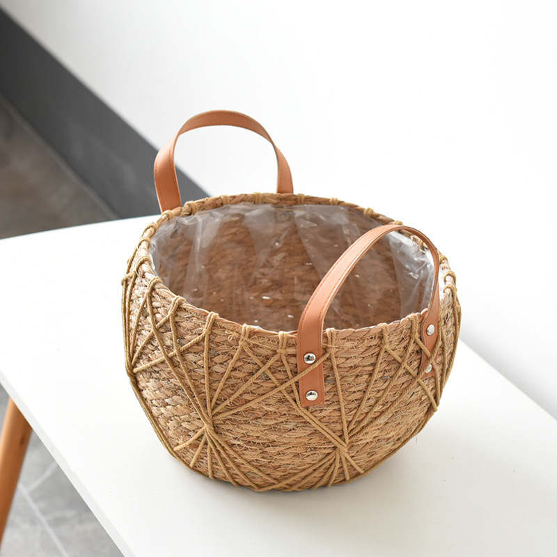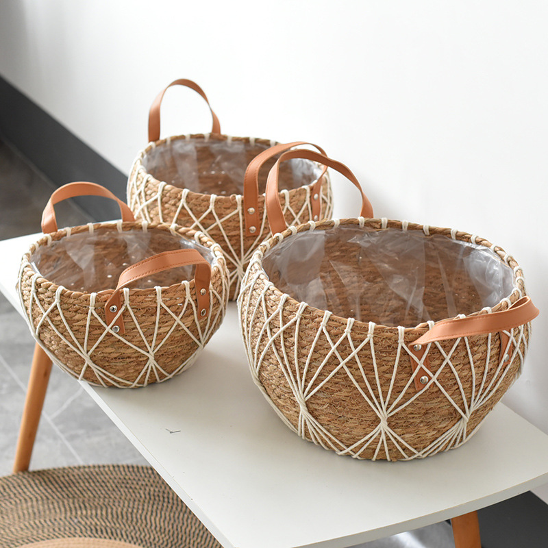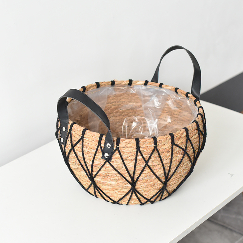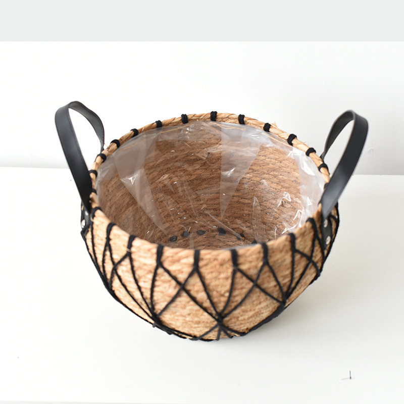 北欧藤编花篮艺术编织花盆民宿客栈装饰摆件盆栽套盆样板间编织篮