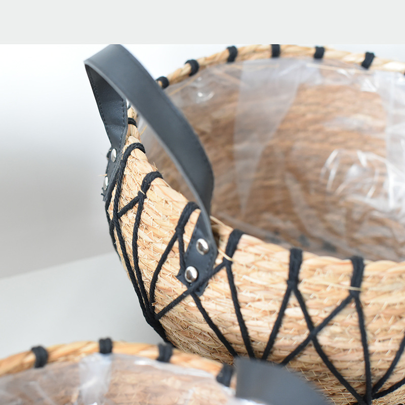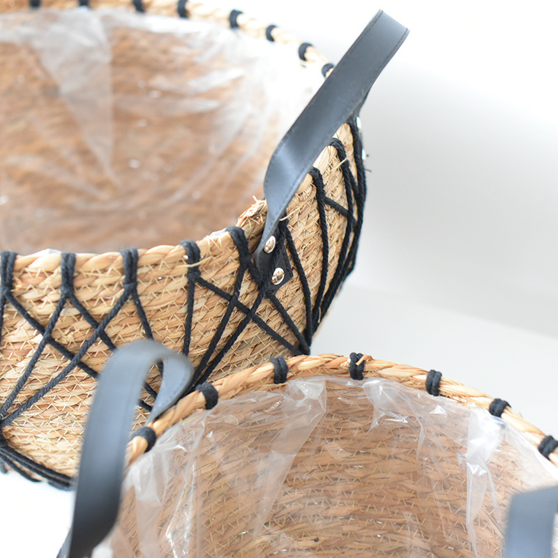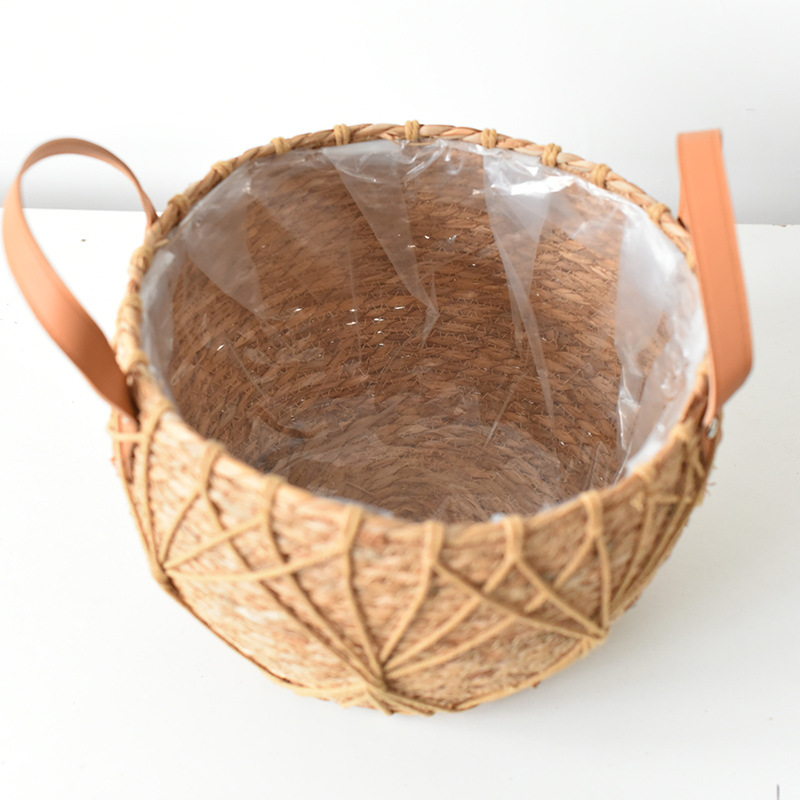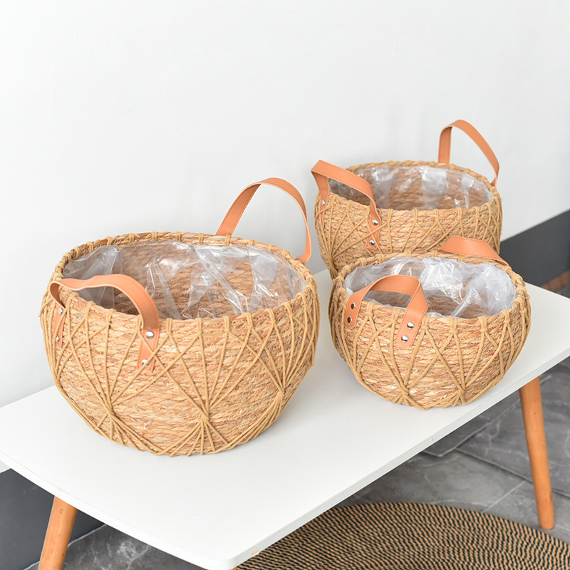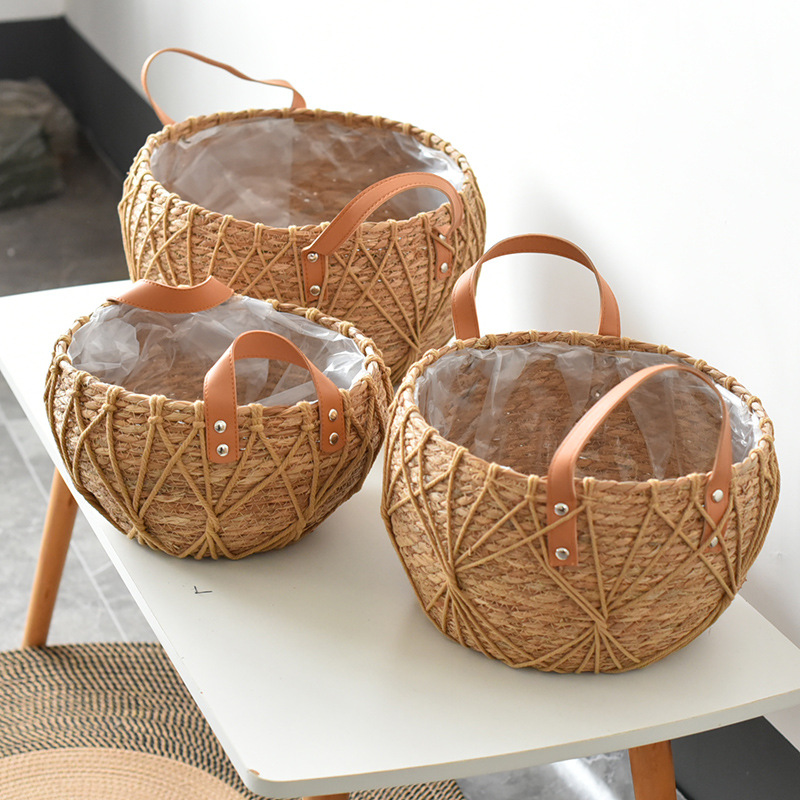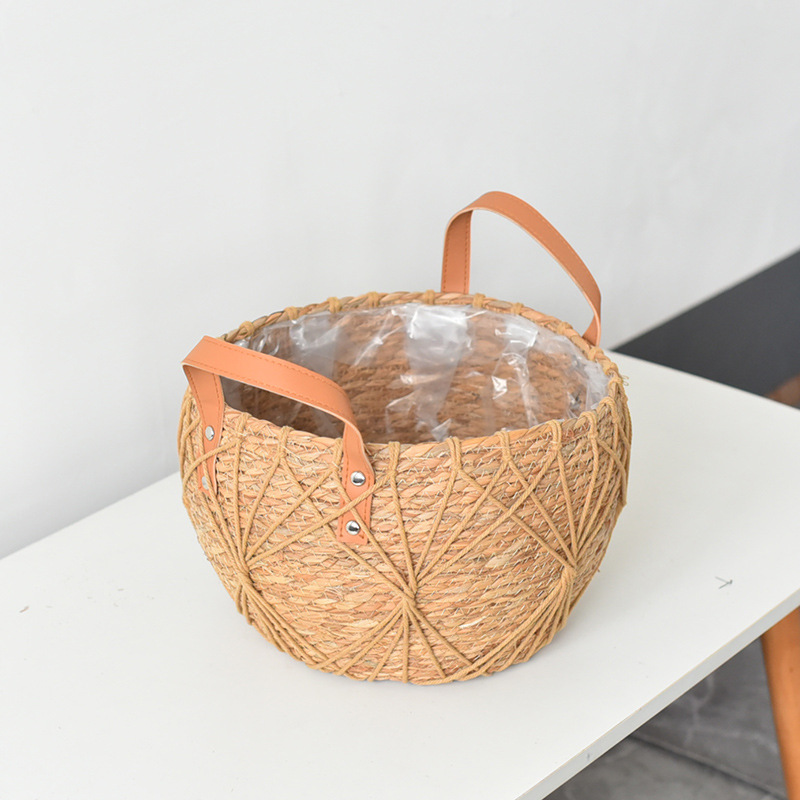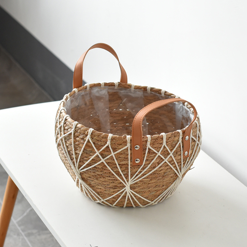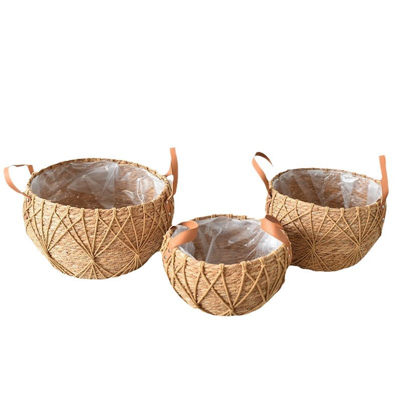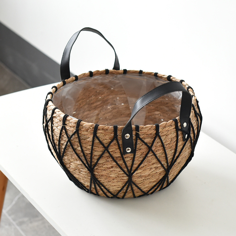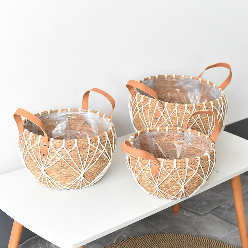 北欧藤编花篮艺术编织花盆民宿客栈装饰摆件盆栽套盆样板间编织篮