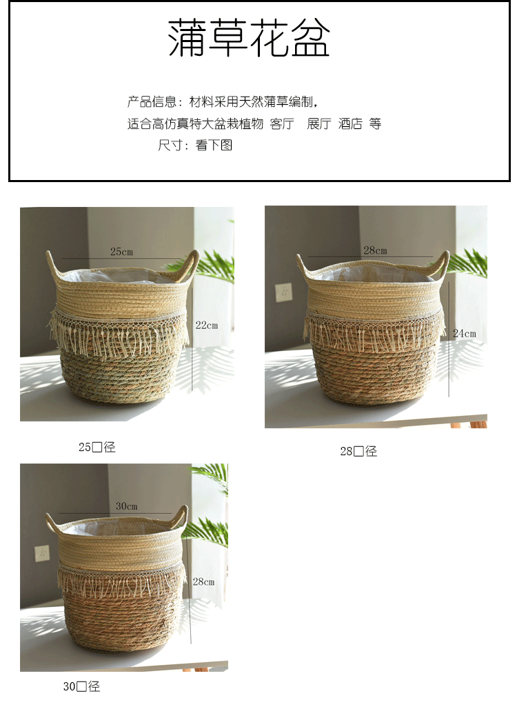 编织花盆特大草编花盆套客厅篮子装饰北欧藤编花盆竹编编织创意
