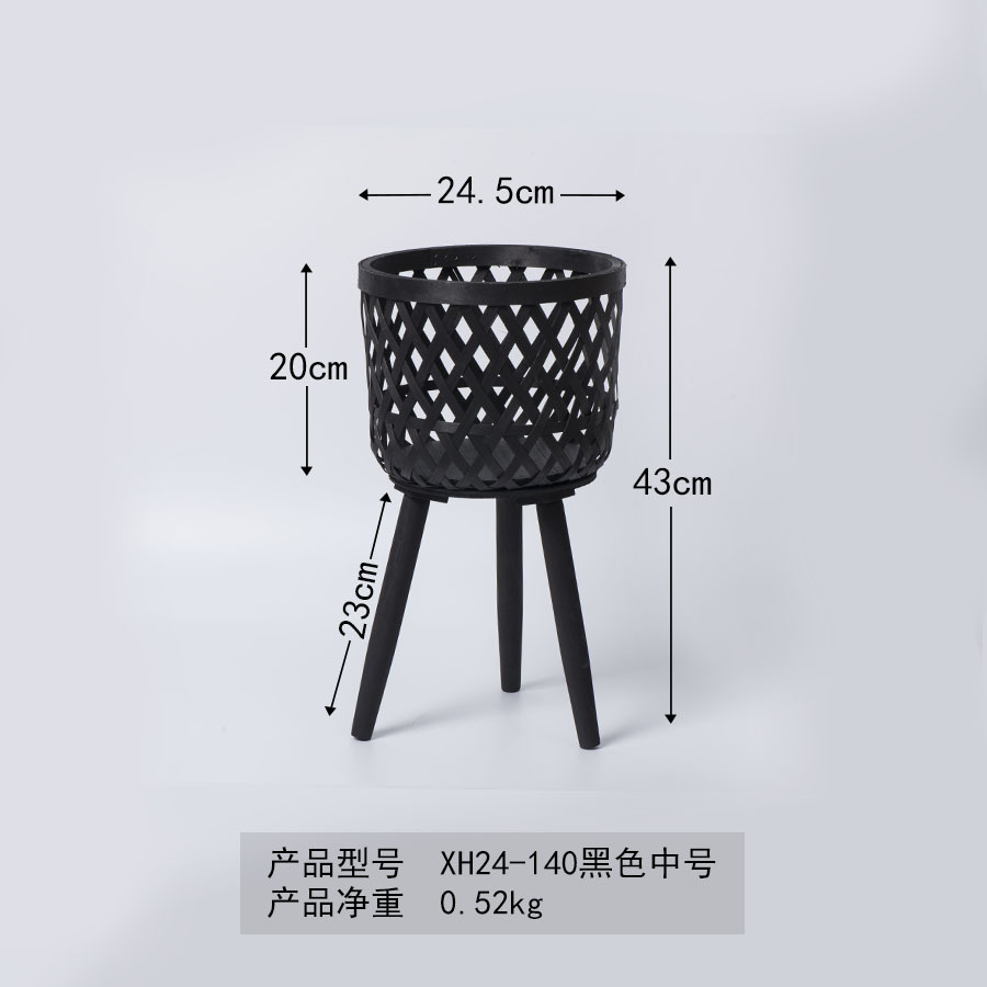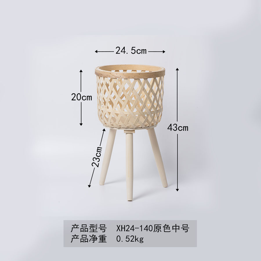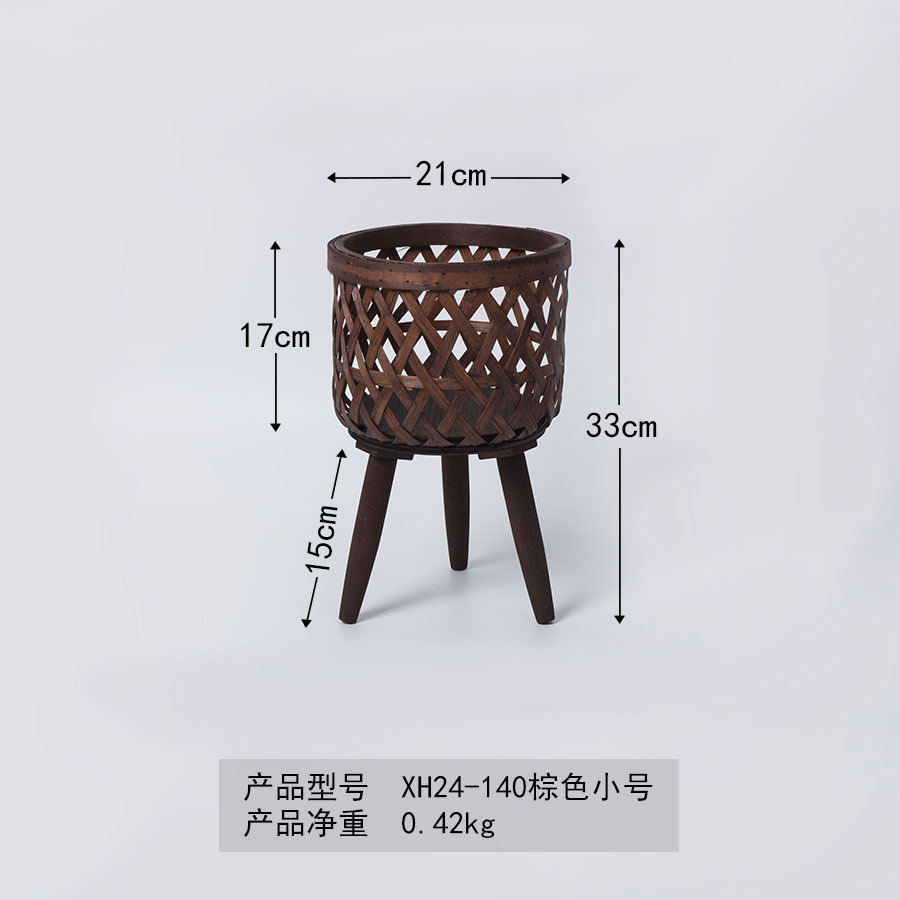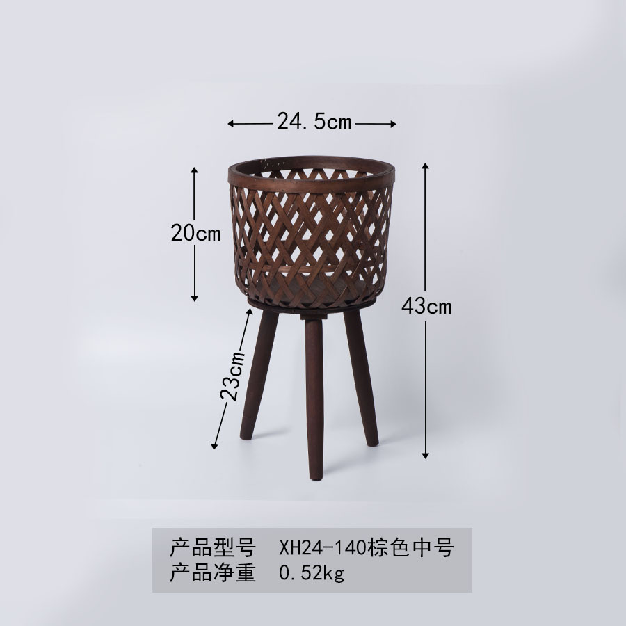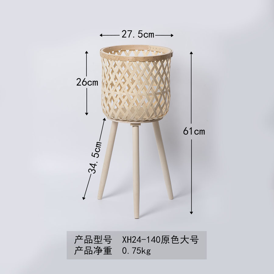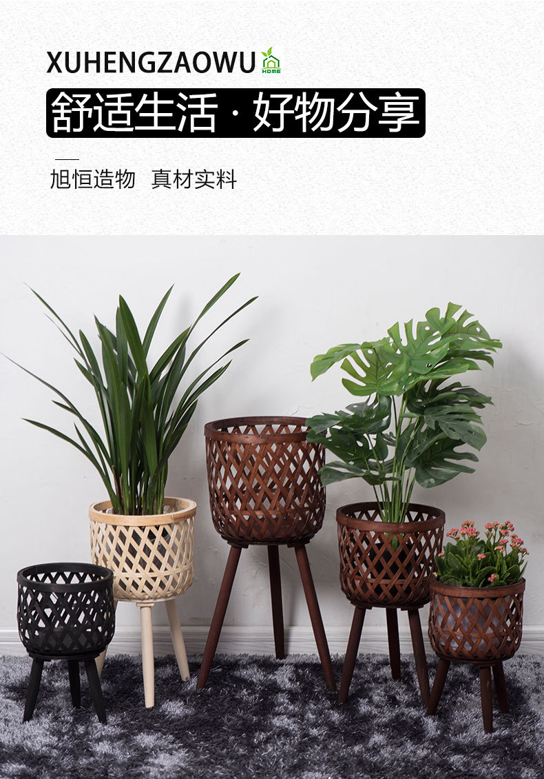 北欧风藤编花盆室内阳台客厅植物绿萝手工编织木制高脚落地花架