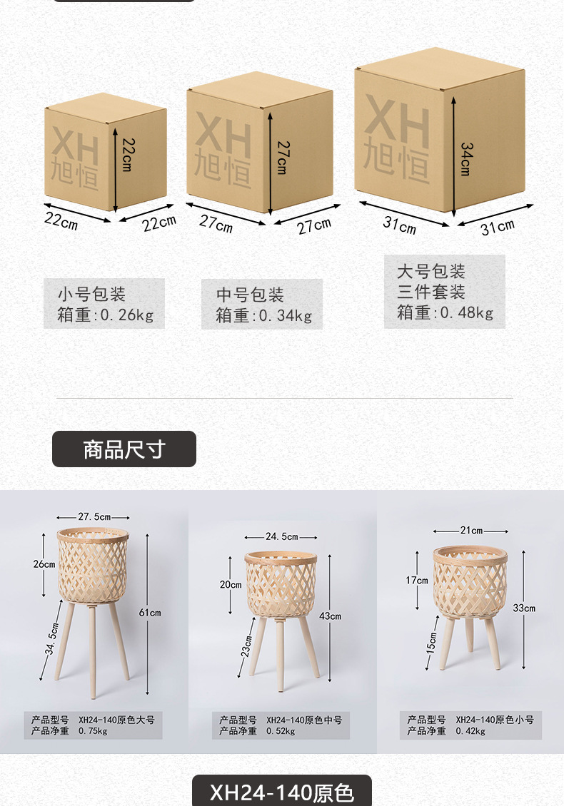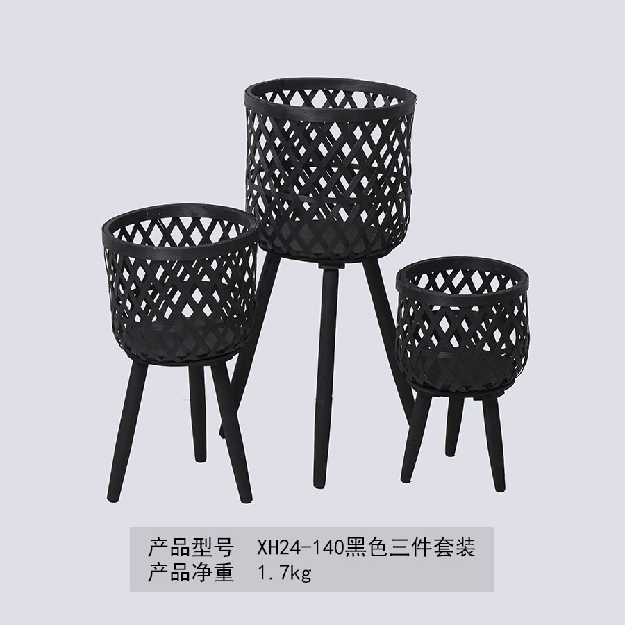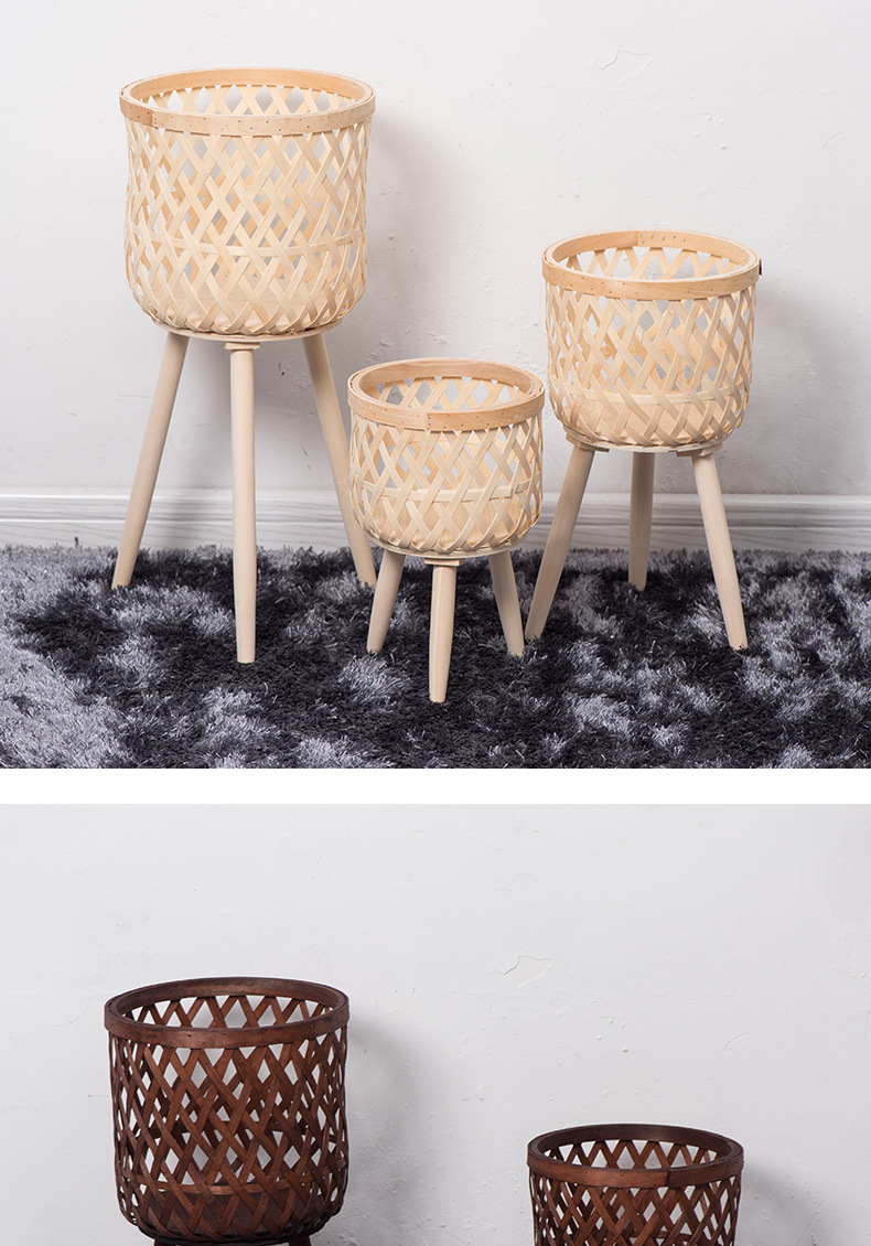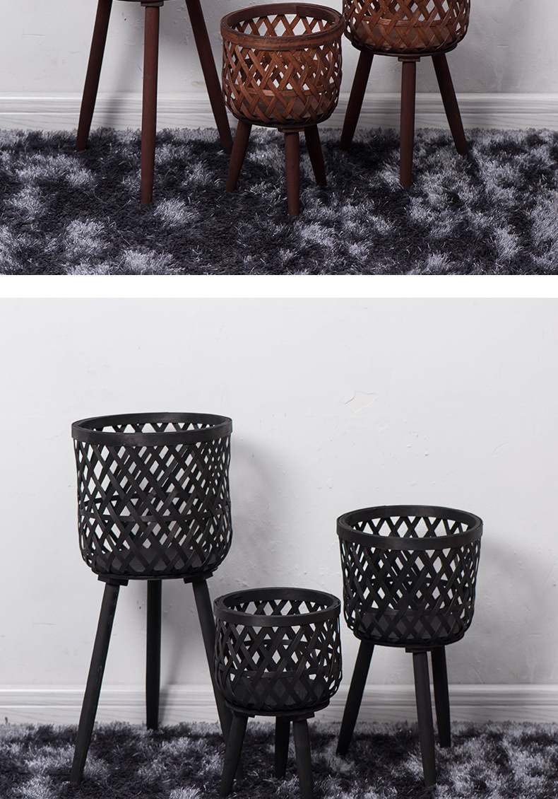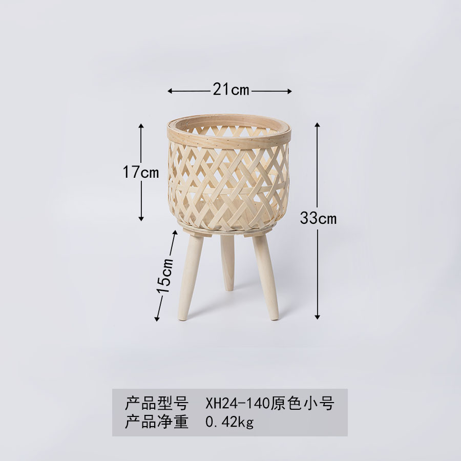 北欧风藤编花盆室内阳台客厅植物绿萝手工编织木制高脚落地花架