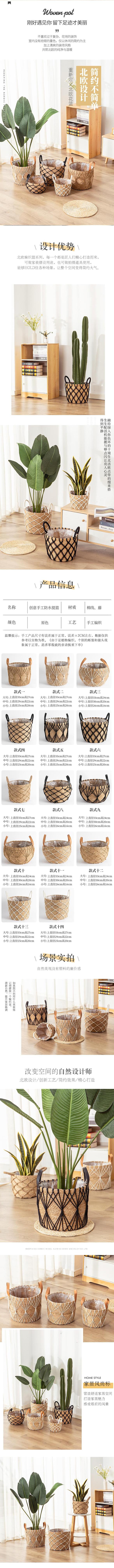 花架藤编客厅家居花篮花盆草编落地装饰海草落地式编织篮竹网兜