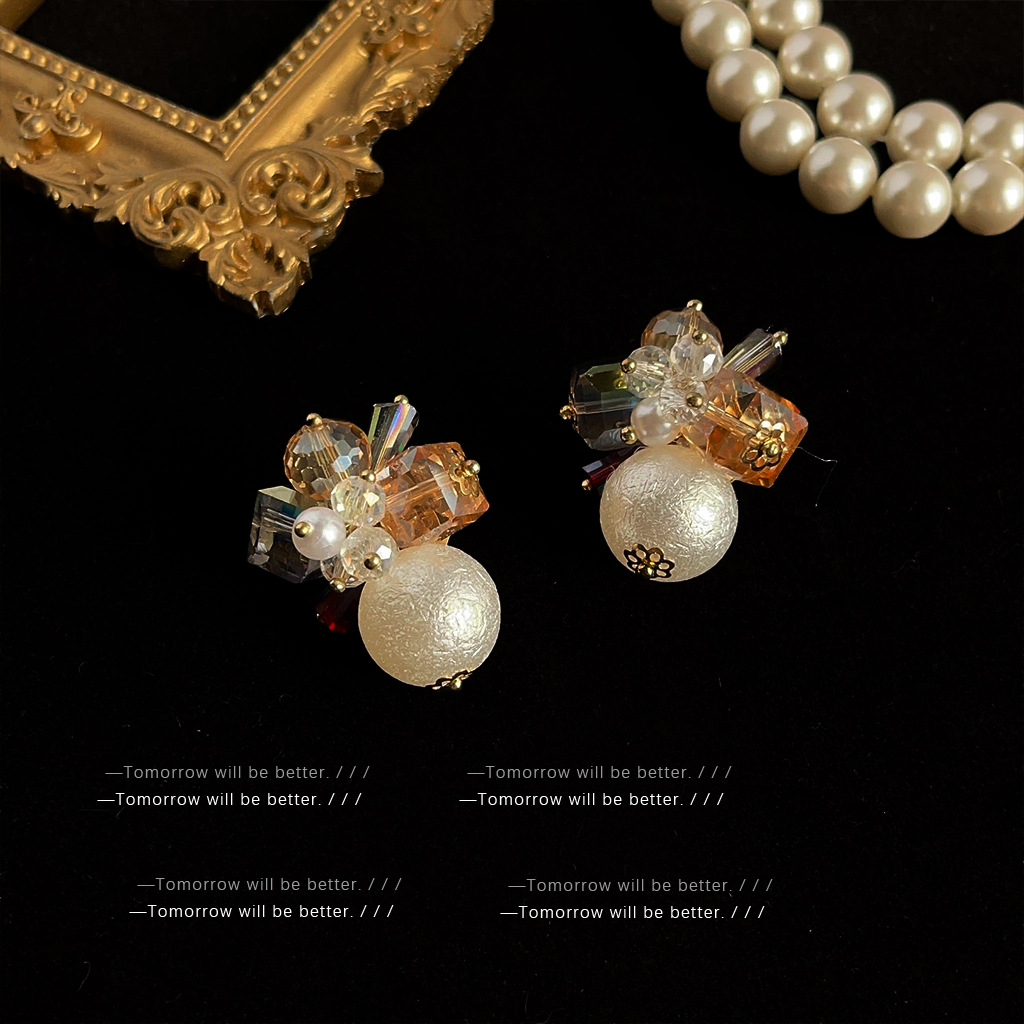 镀真金品质耳环 透明水晶 .颜色不规则,含有矿物杂质.实属正常,