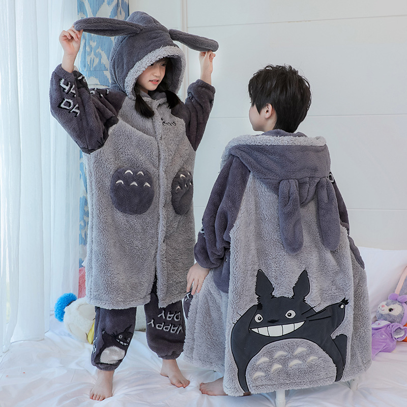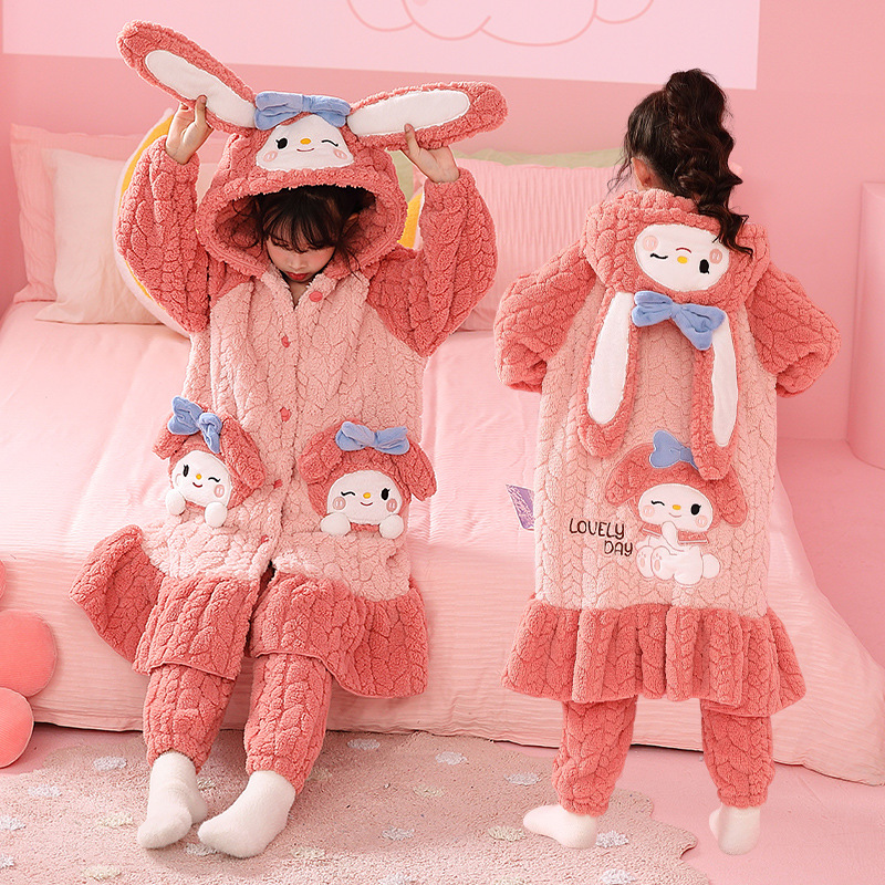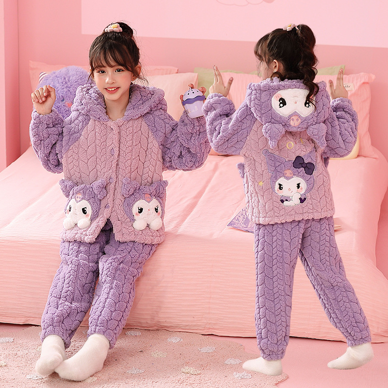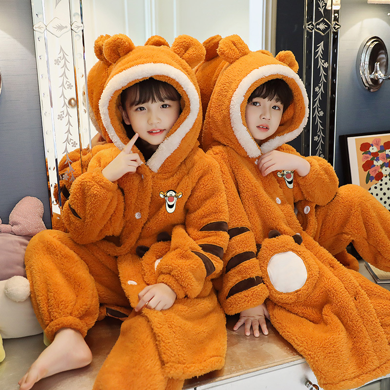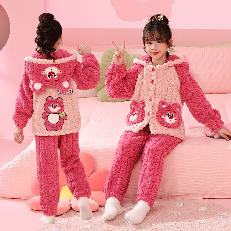 秋冬季儿童珊瑚绒睡衣男童宝宝加绒保暖卡通家居服女孩法兰绒套装