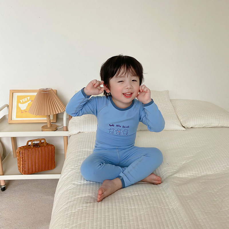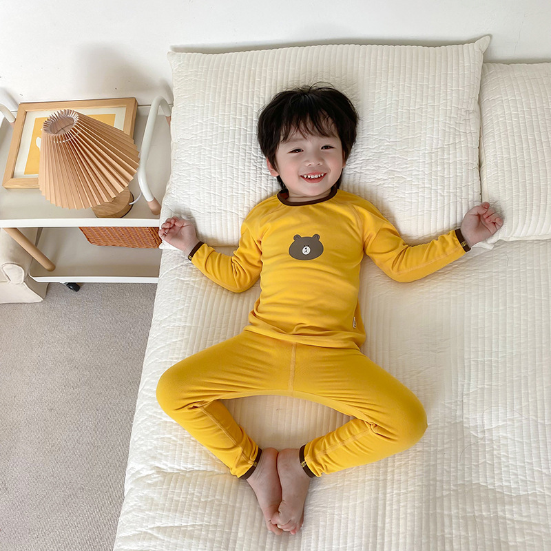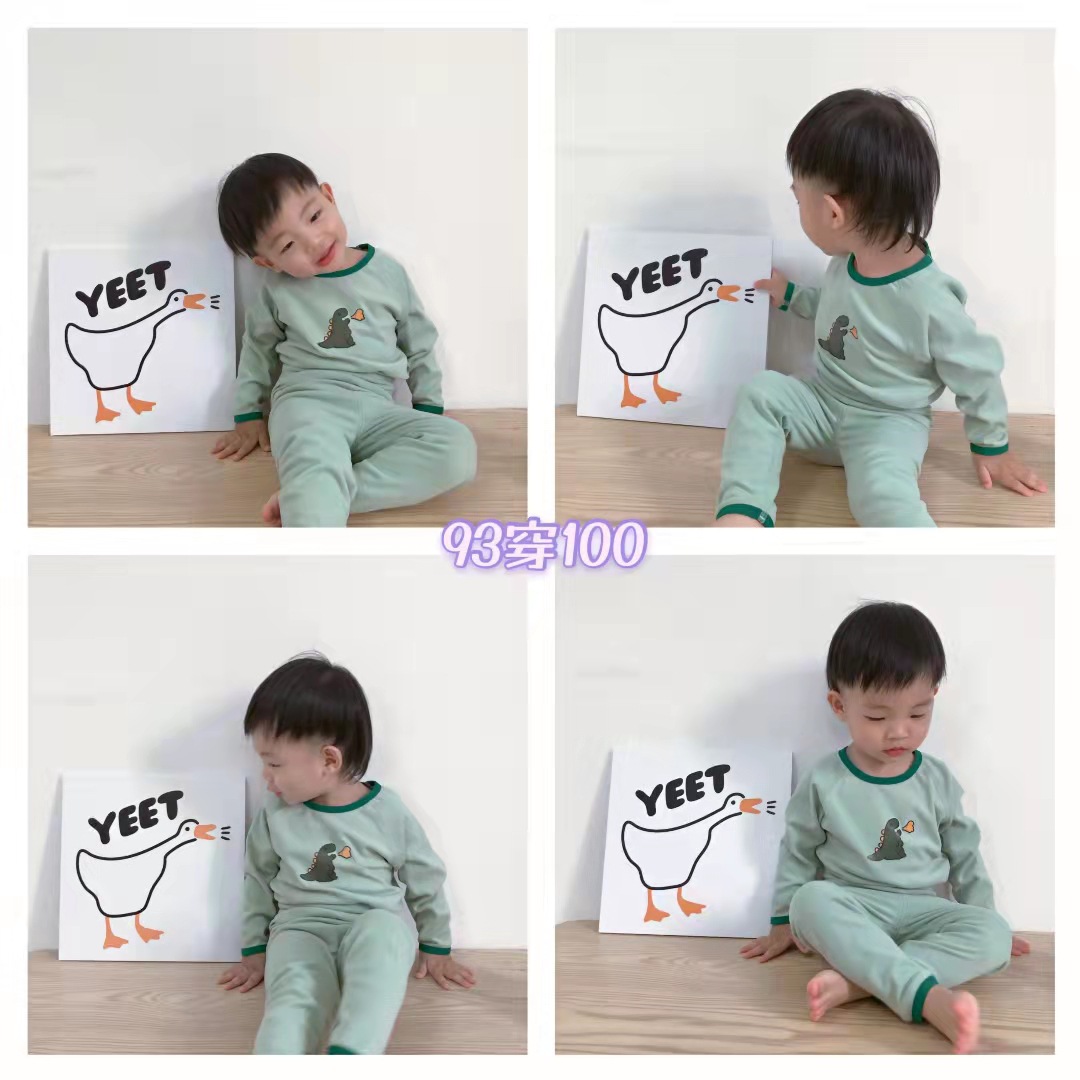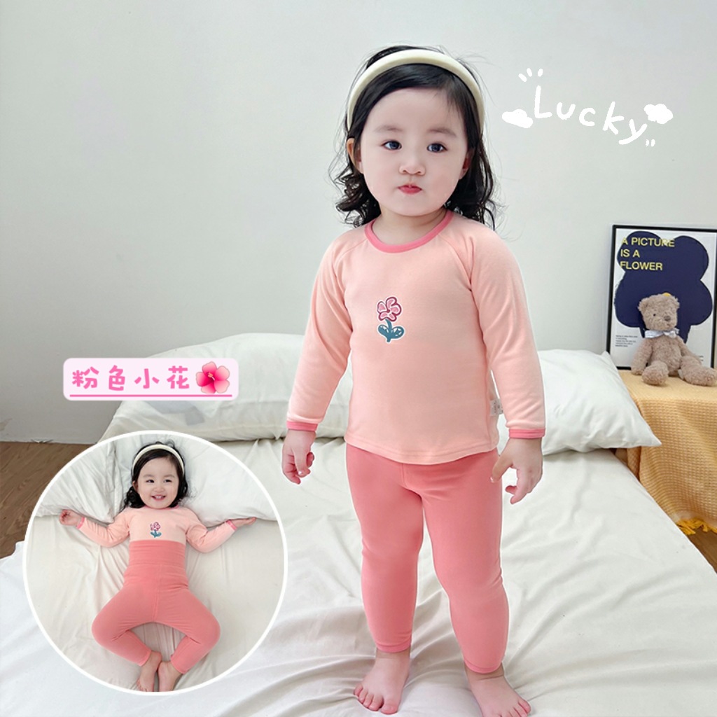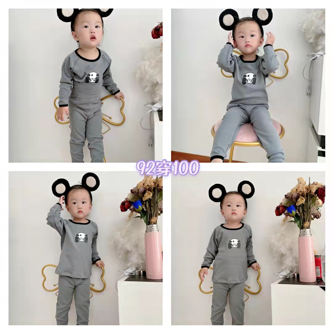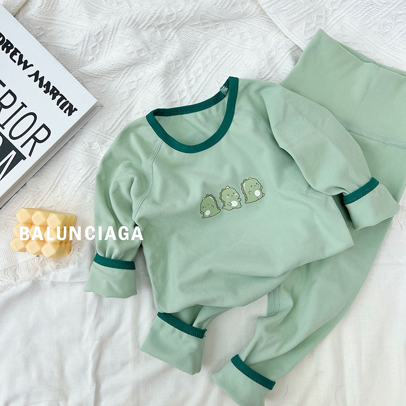 24婴幼儿无骨高腰内衣套装儿童春秋德绒秋衣秋裤女宝男童家居服