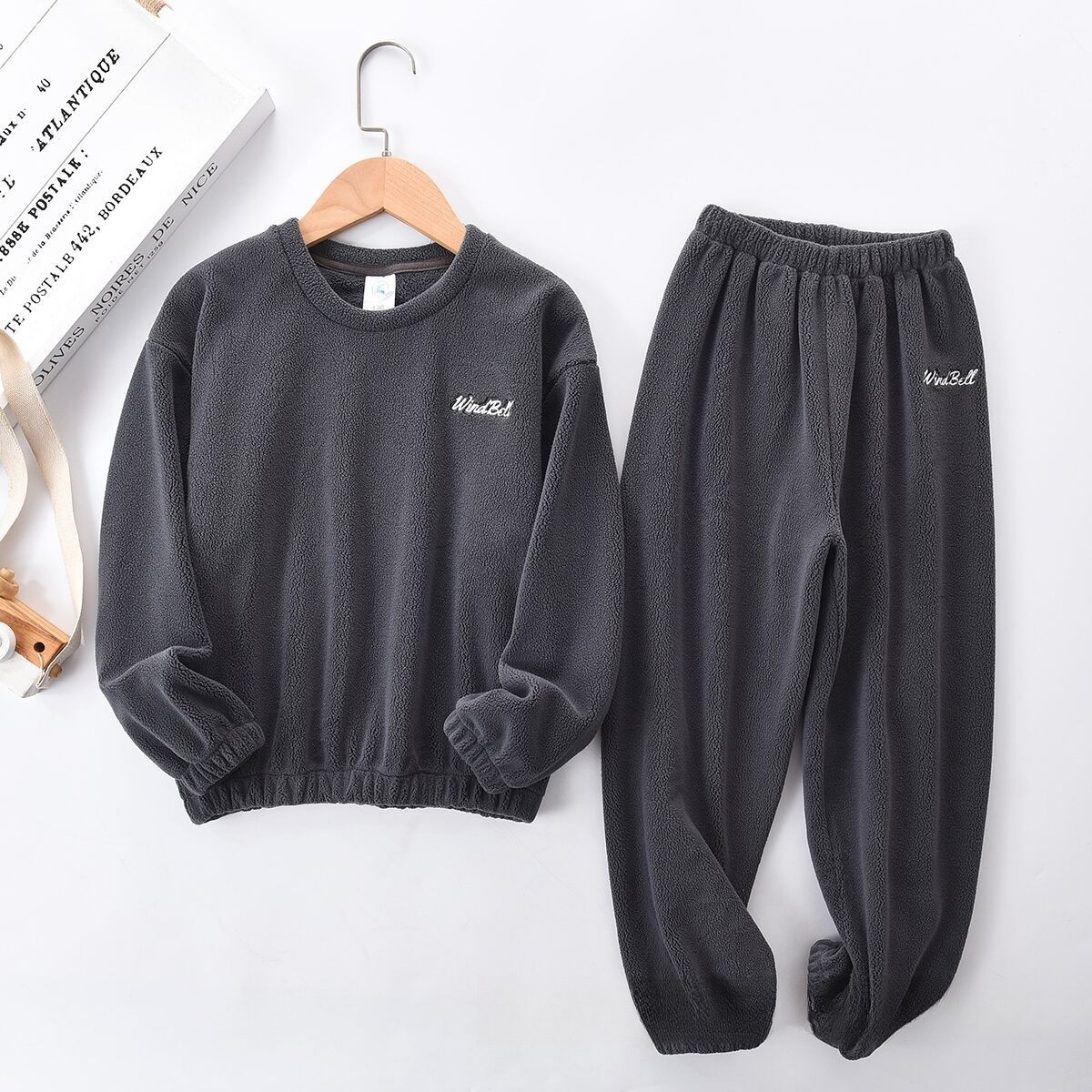 2024冬季加绒儿童睡衣套装可外穿防风加厚摇粒绒家居服中大童睡裤