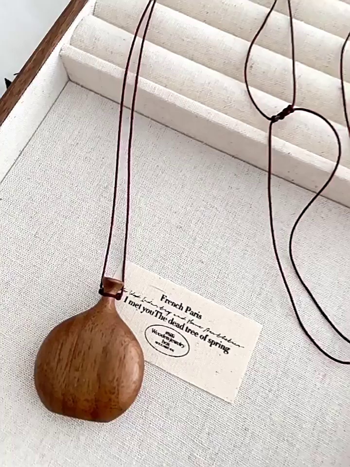 饰品抽拉式可调节民族风毛衣链中古风复古木质酒壶黑绳长款项链