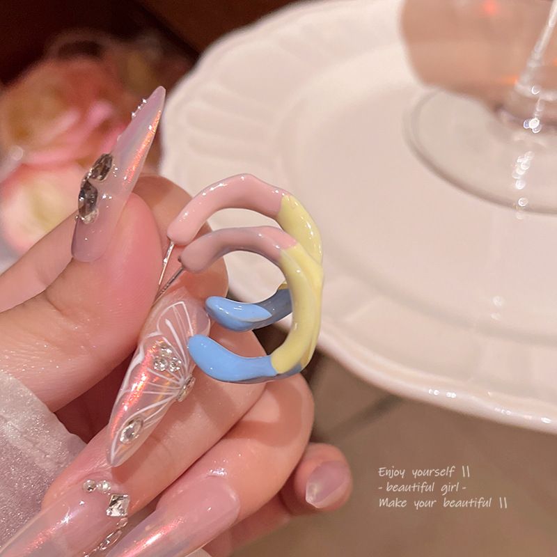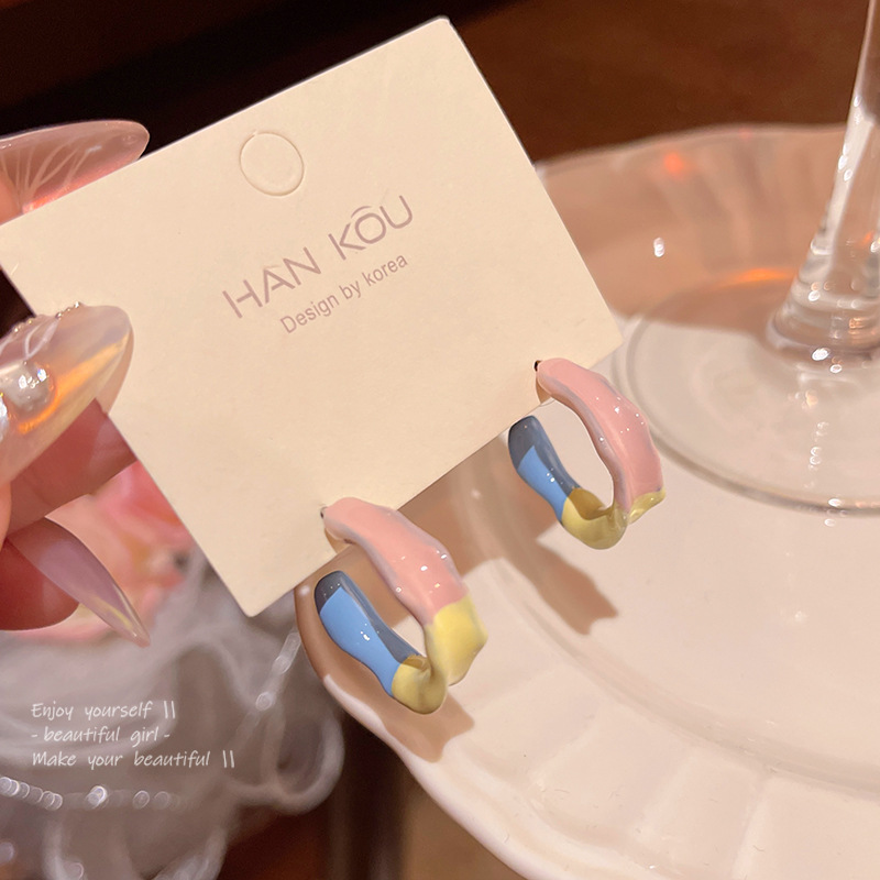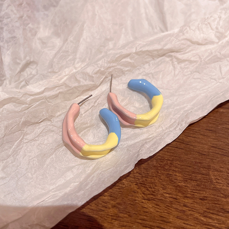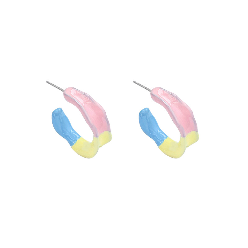 韩系爆款甜美气质几何形耳钉网红同款耳饰多巴胺彩色C形耳圈耳环