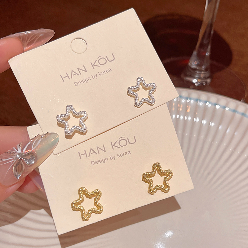 饰品轻奢小众高级感简约五角星耳环耳饰韩系金属感麻花星星耳钉女