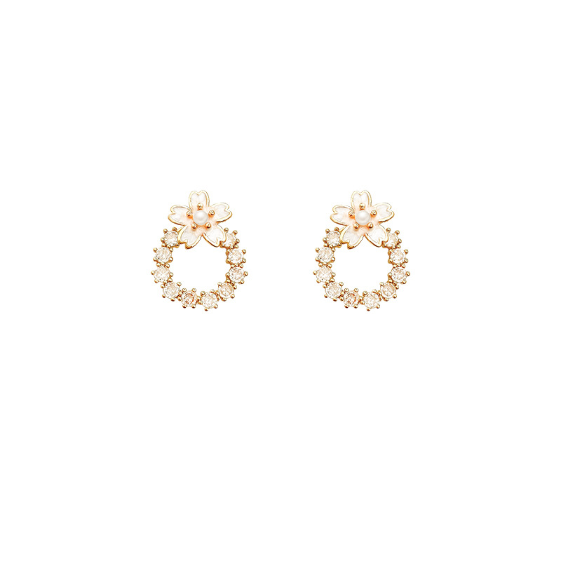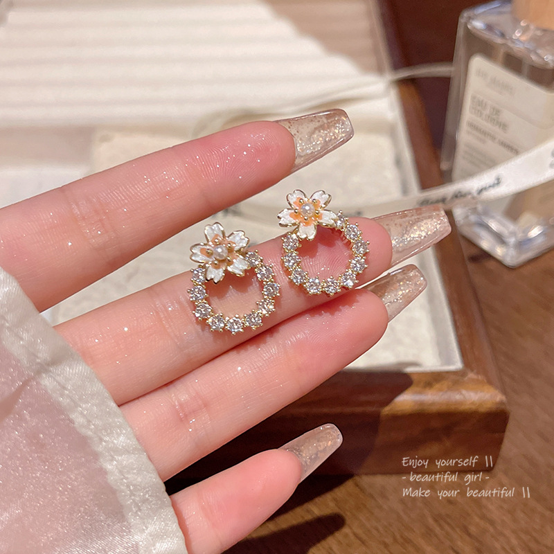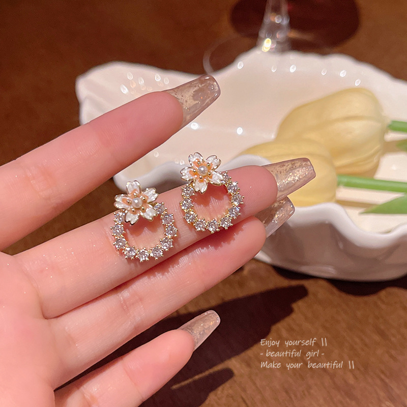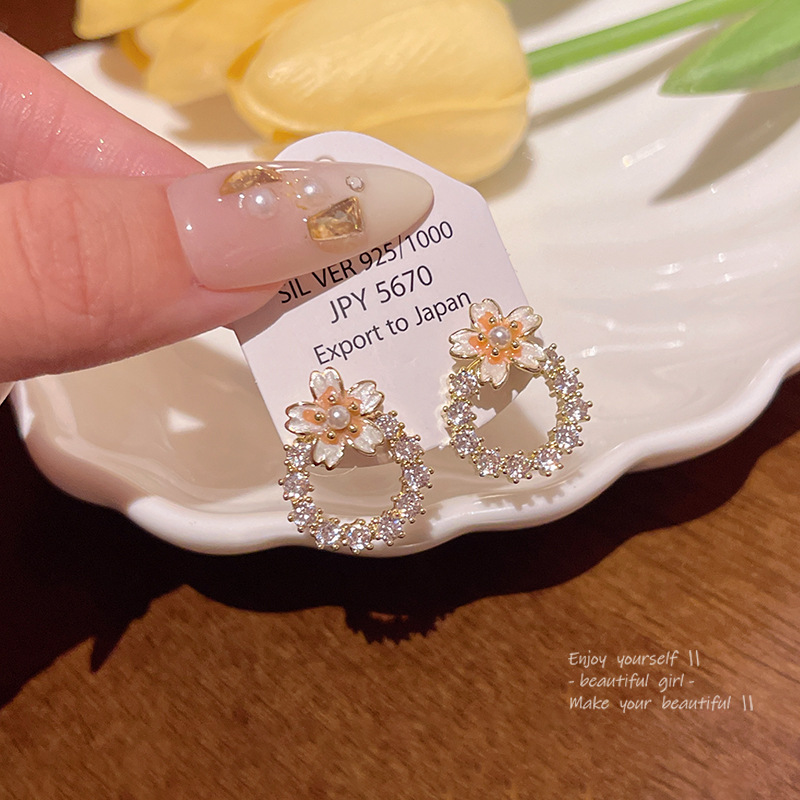 饰品百搭气质简约满钻耳钉耳饰小众高级感精致锆石花朵耳钉女批发