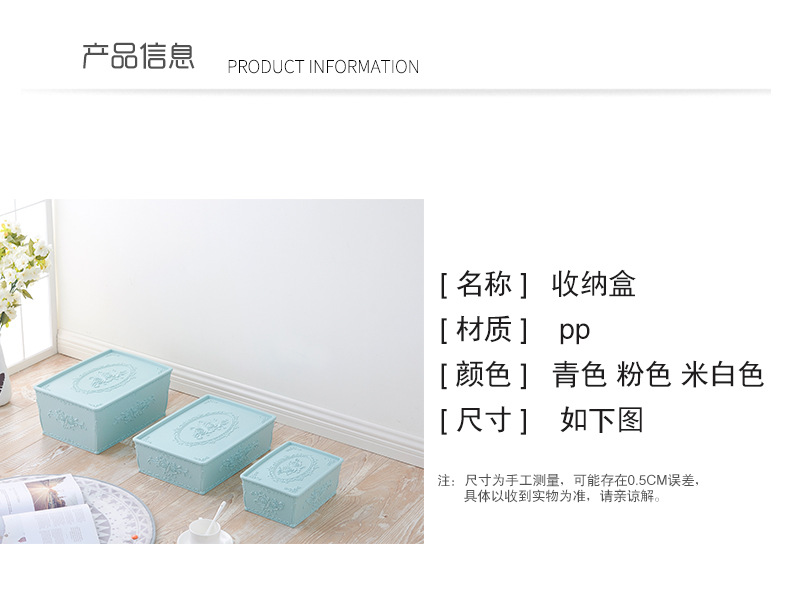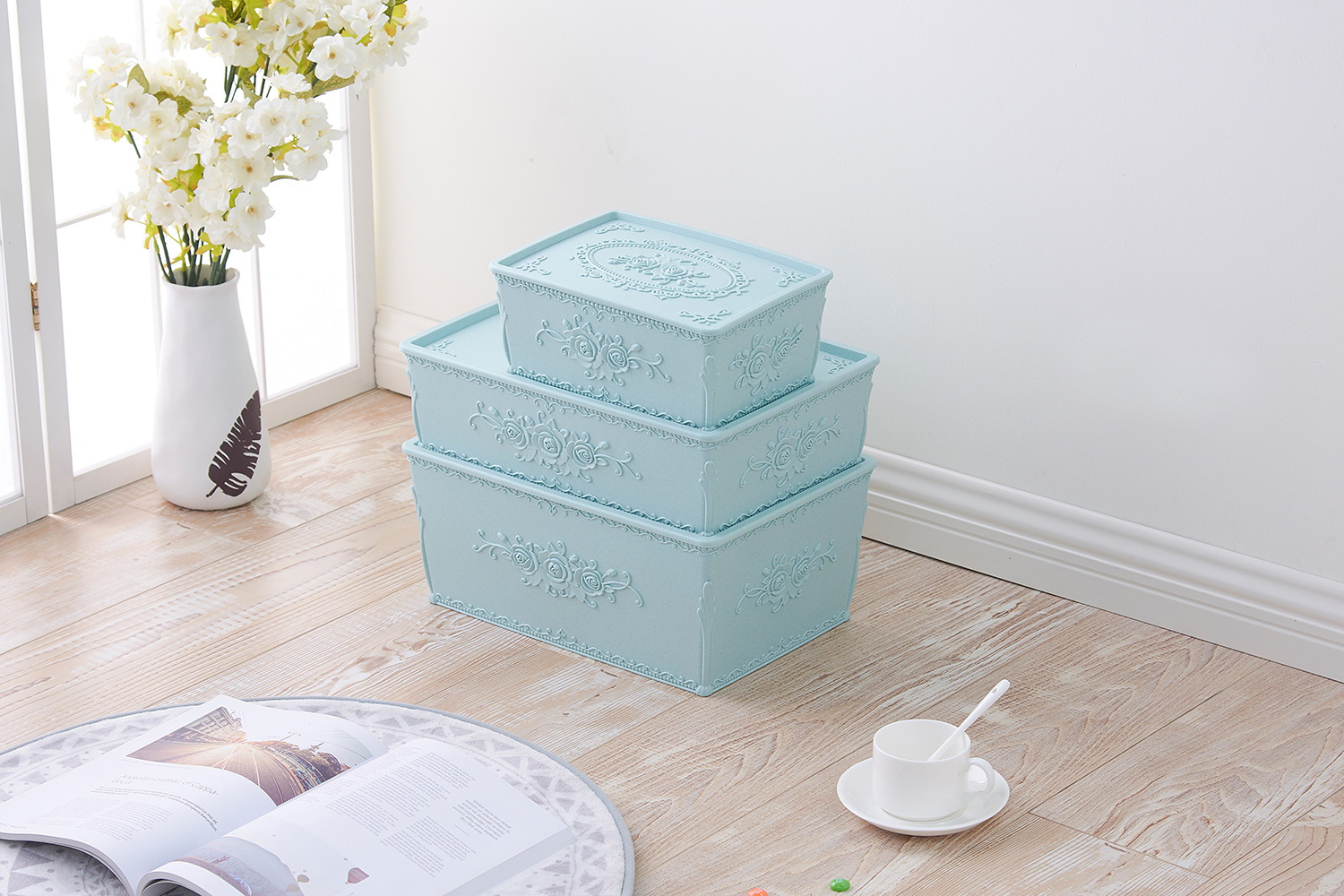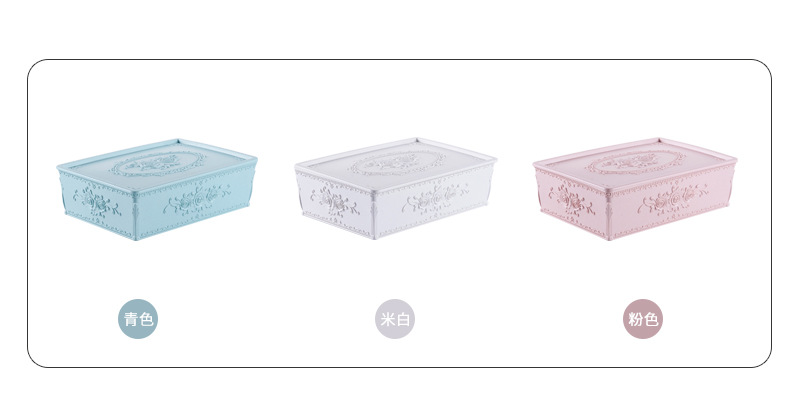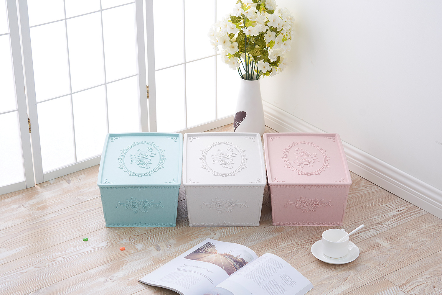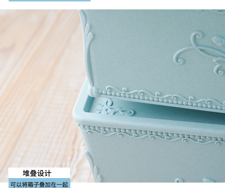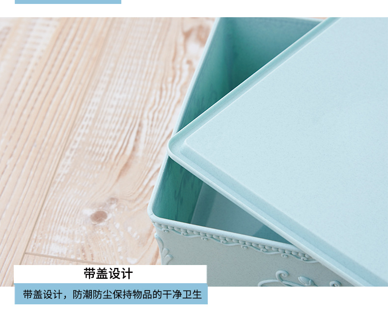 实用杂物收纳盒塑料有盖防尘雕花方形多用整理箱家用塑料储物盒