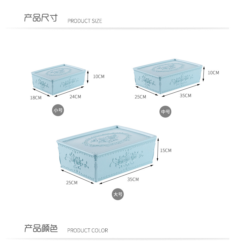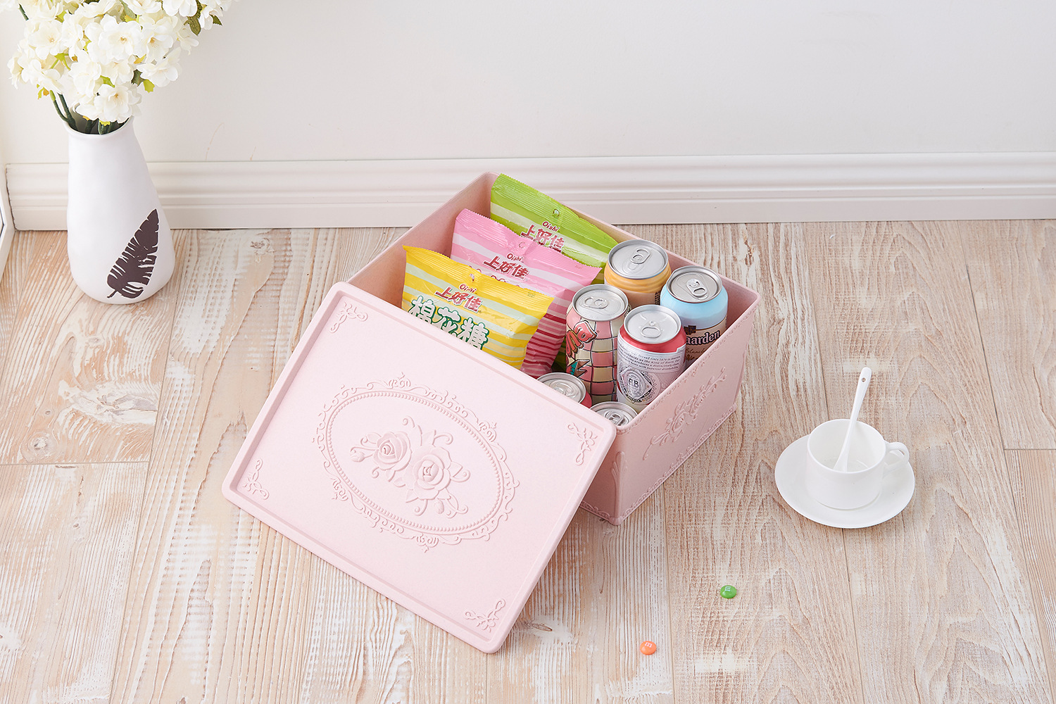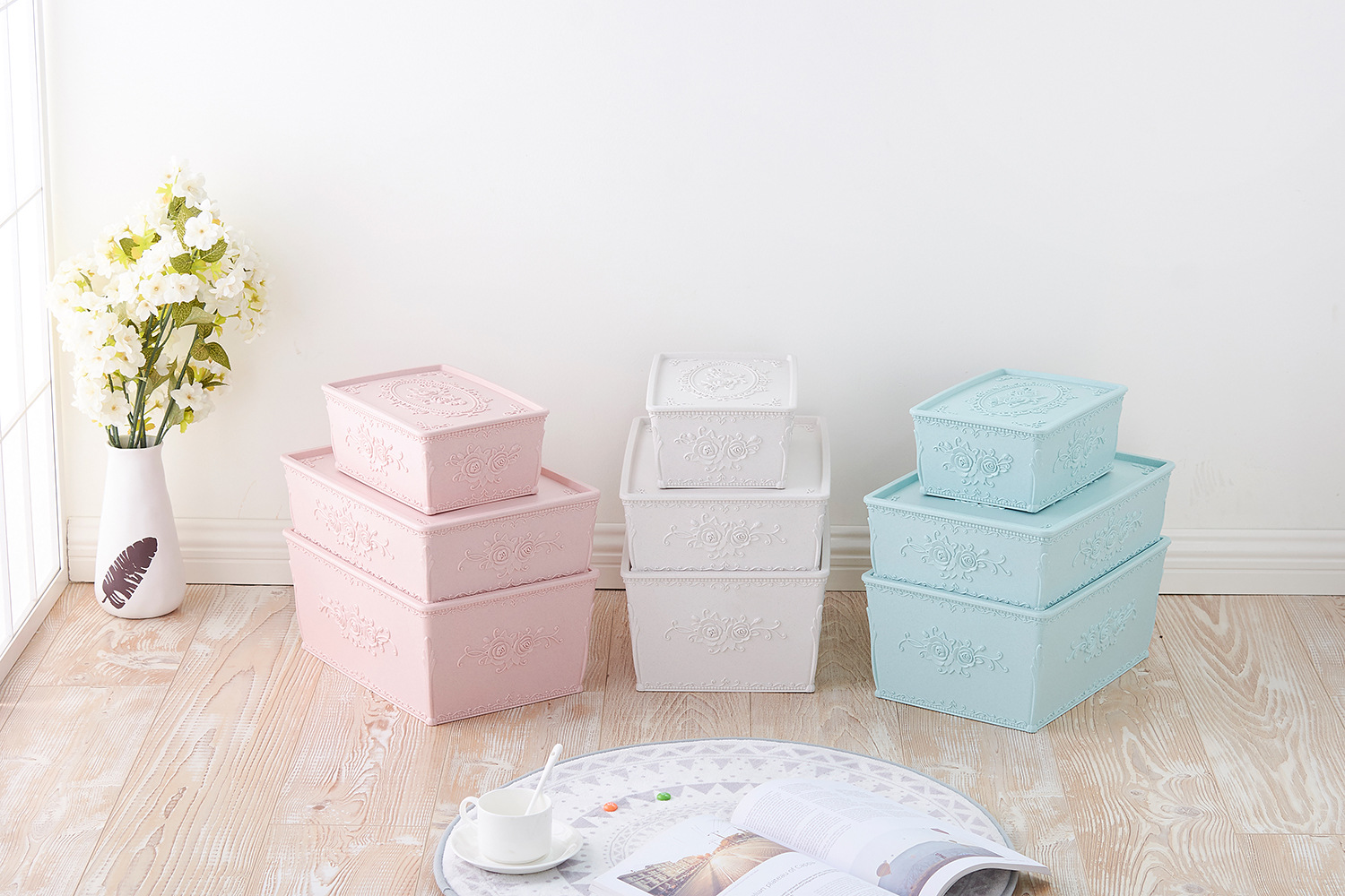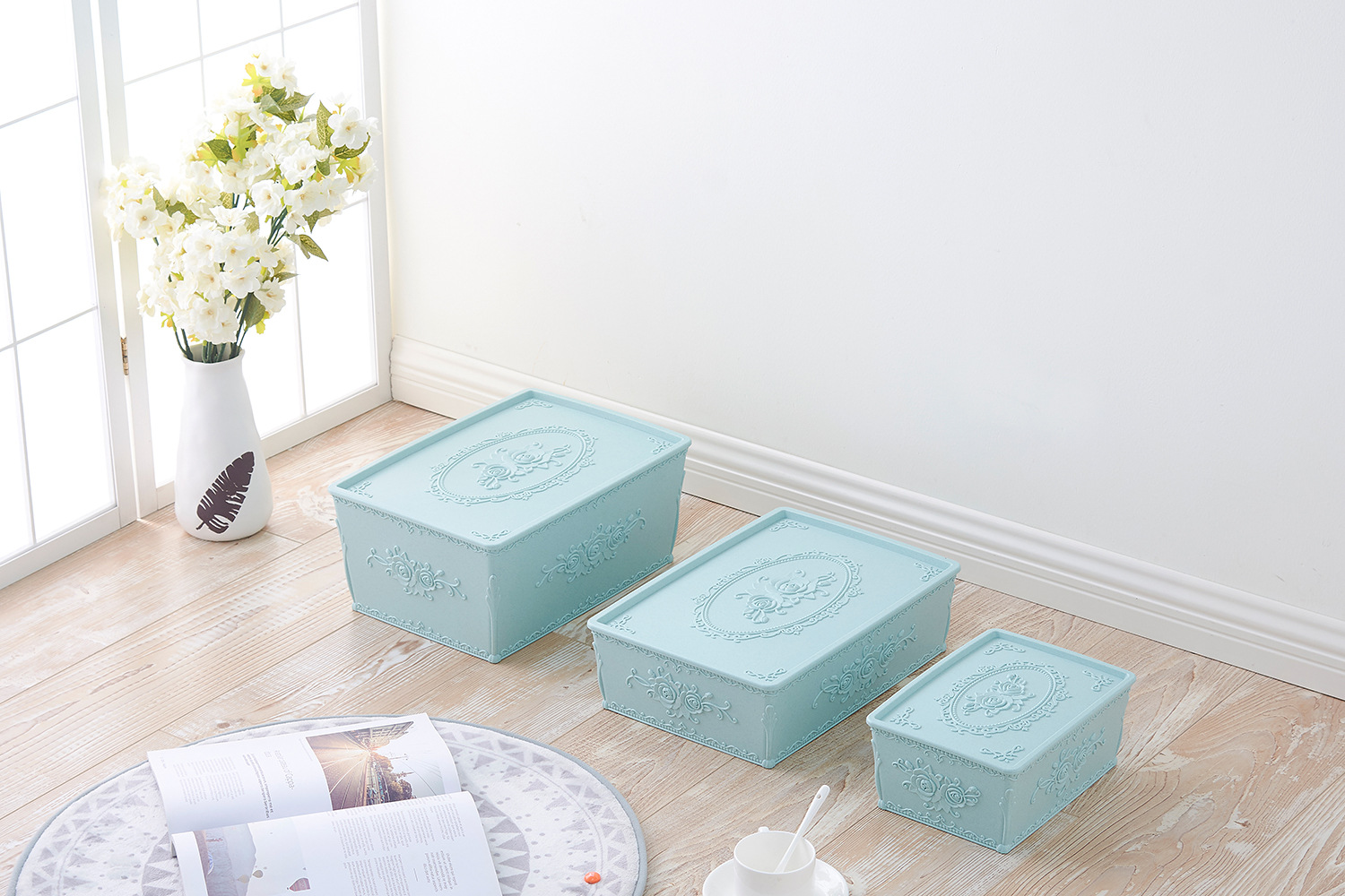 实用杂物收纳盒塑料有盖防尘雕花方形多用整理箱家用塑料储物盒