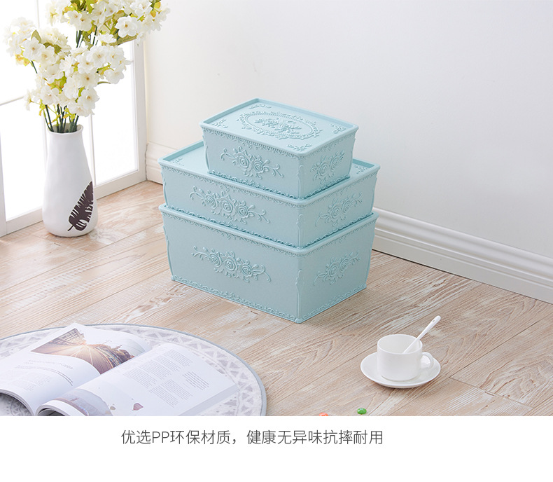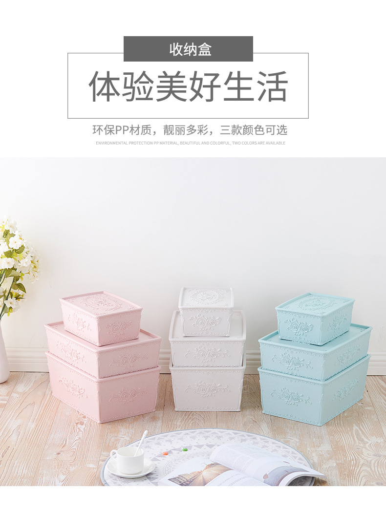 杂物收纳盒塑料有盖防尘定雕花方形实用多用整理箱家用塑料储物盒