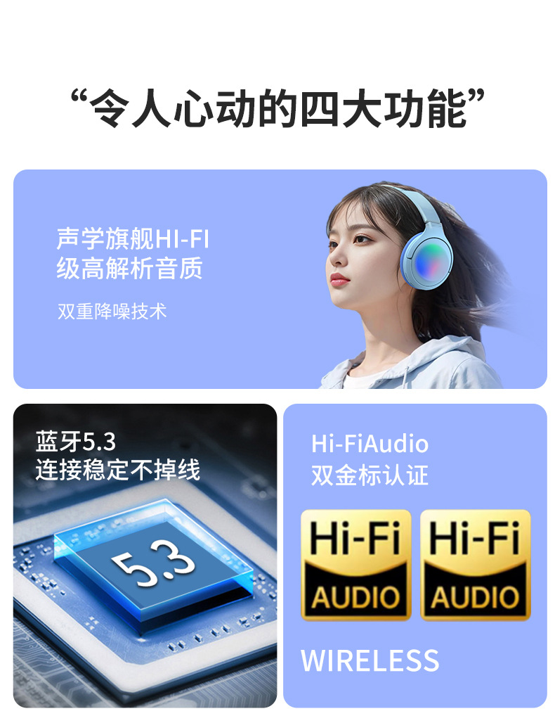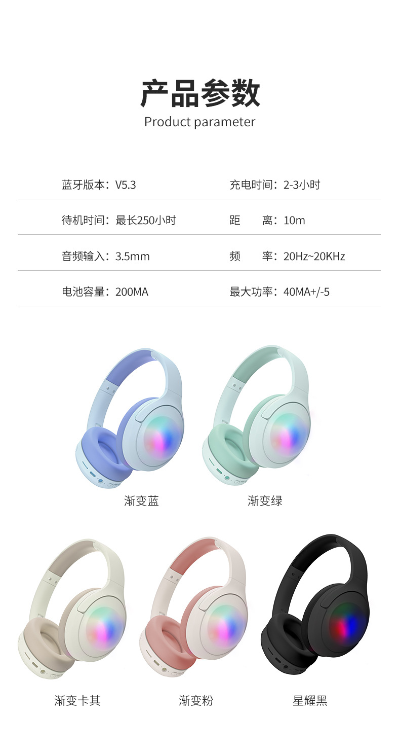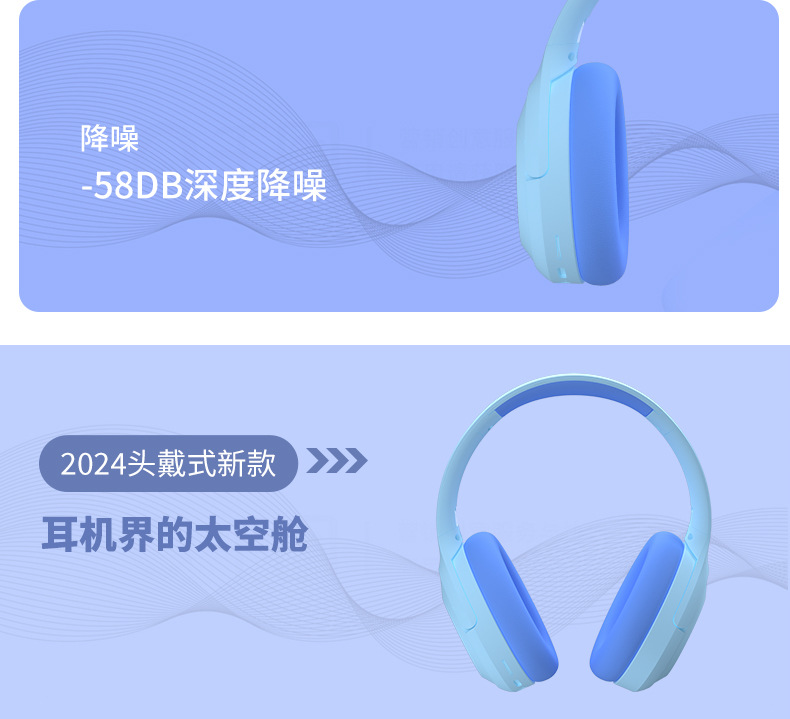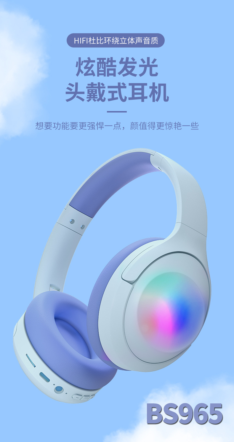 跨境爆款BS965无线头戴式5.3蓝牙耳机主动降噪重低音超长续航耳麦