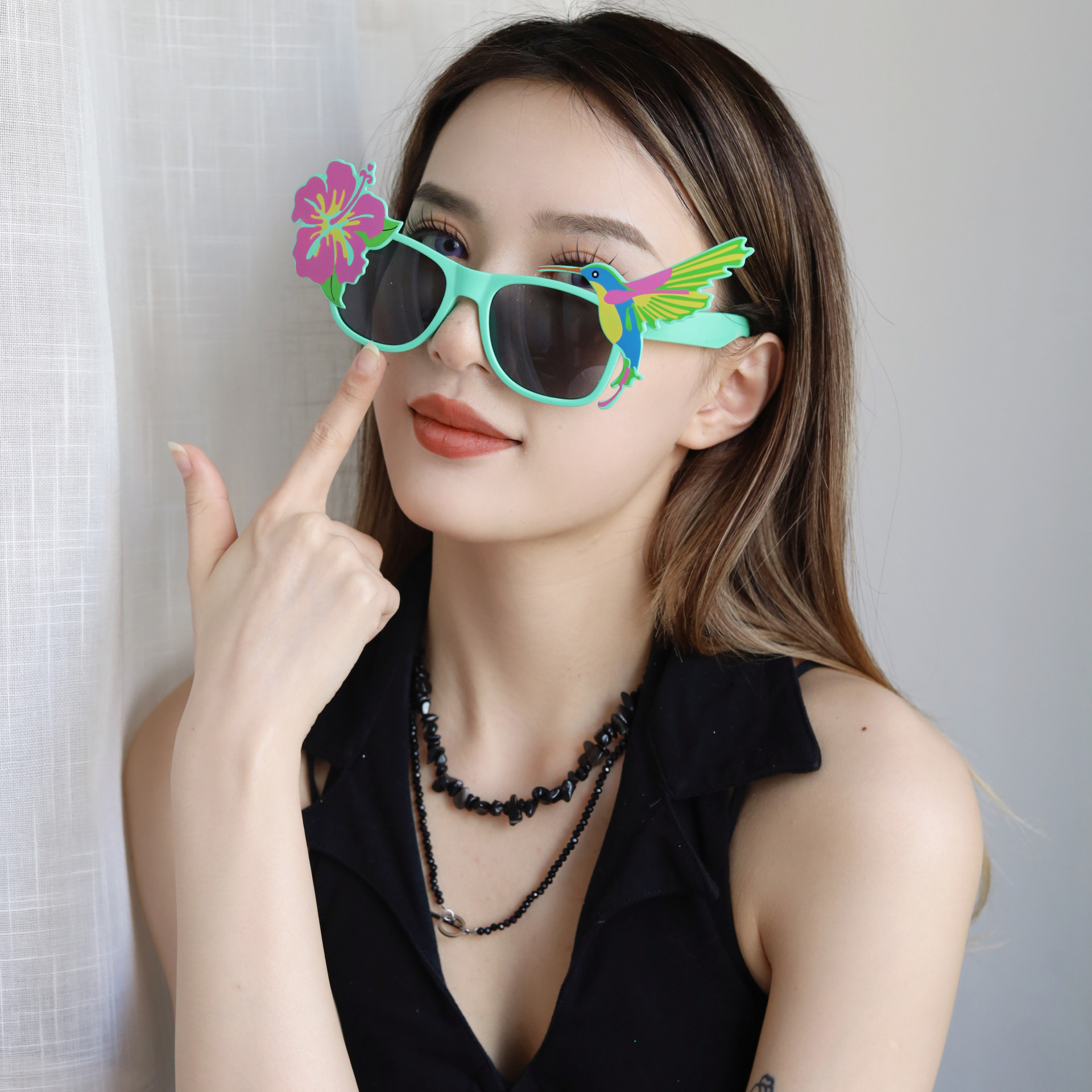 夏威夷沙滩派对舞会木槿花蜂鸟眼镜椰树火烈鸟鹦鹉花酒杯搞怪眼镜