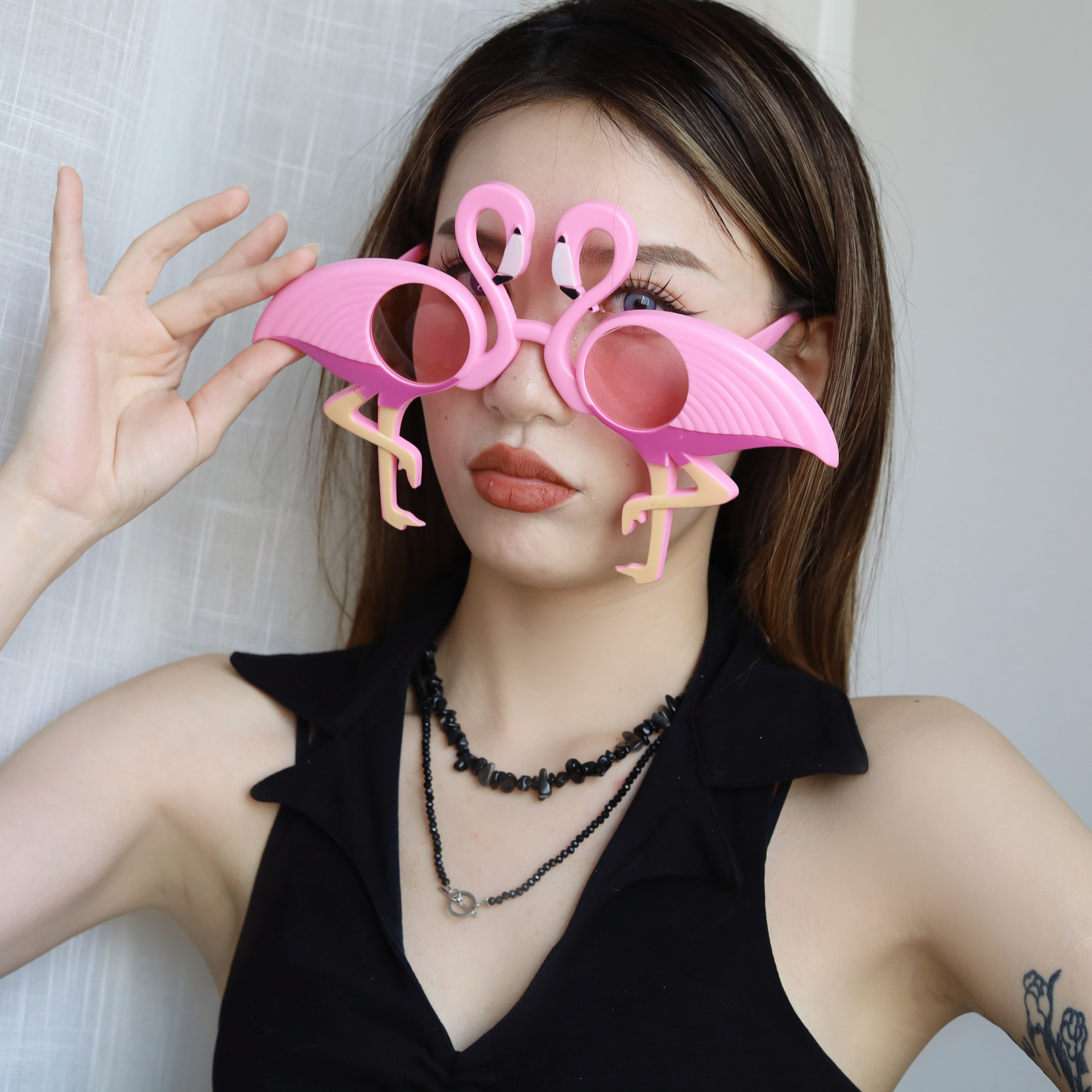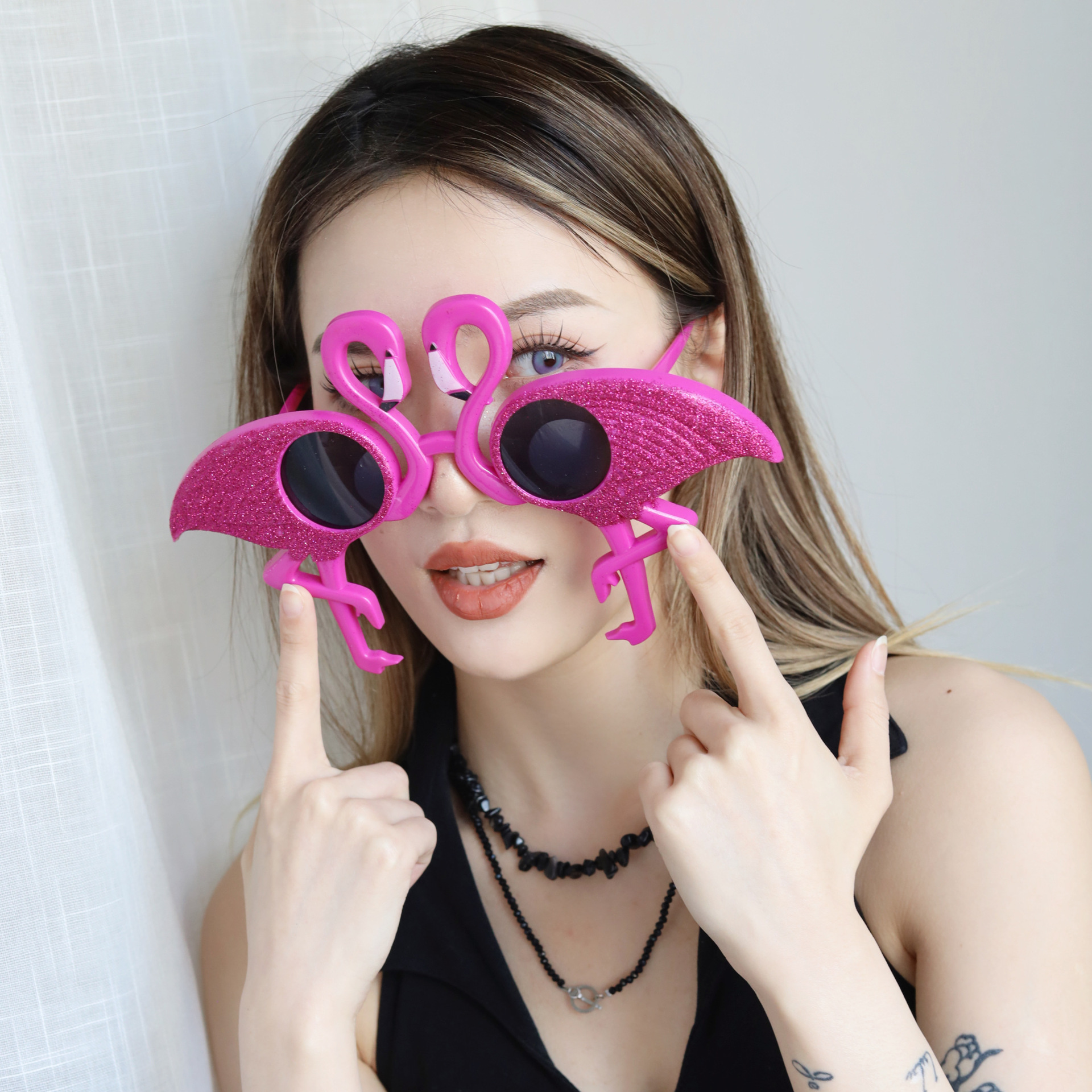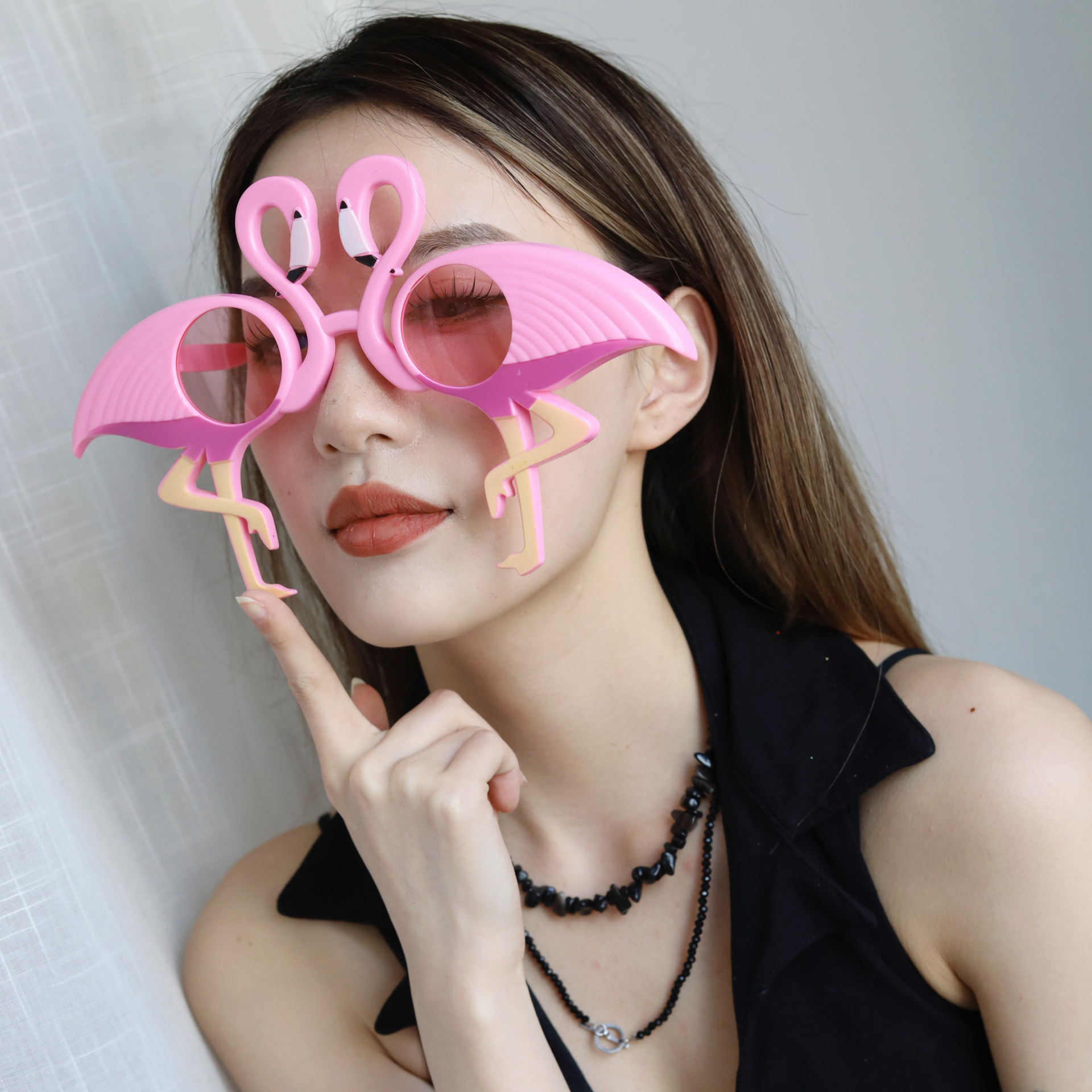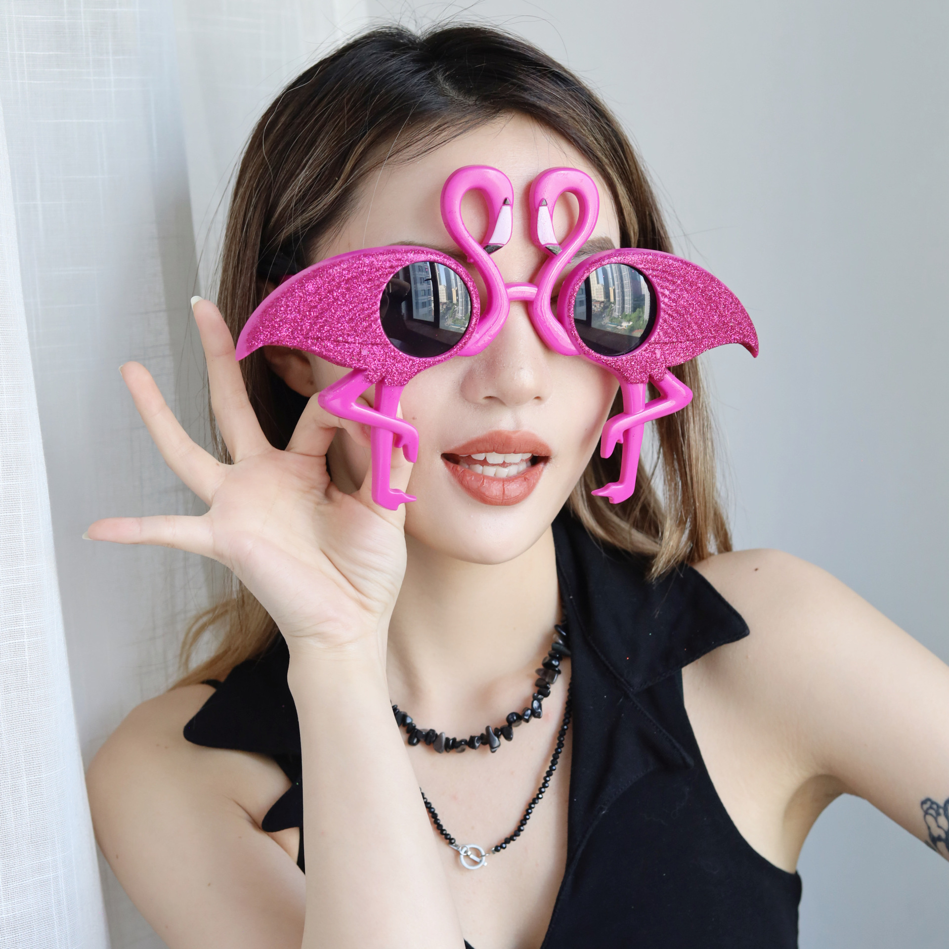 夏威夷沙滩舞会晚会派对眼镜 自拍道具火烈鸟啤酒杯椰树搞怪眼镜