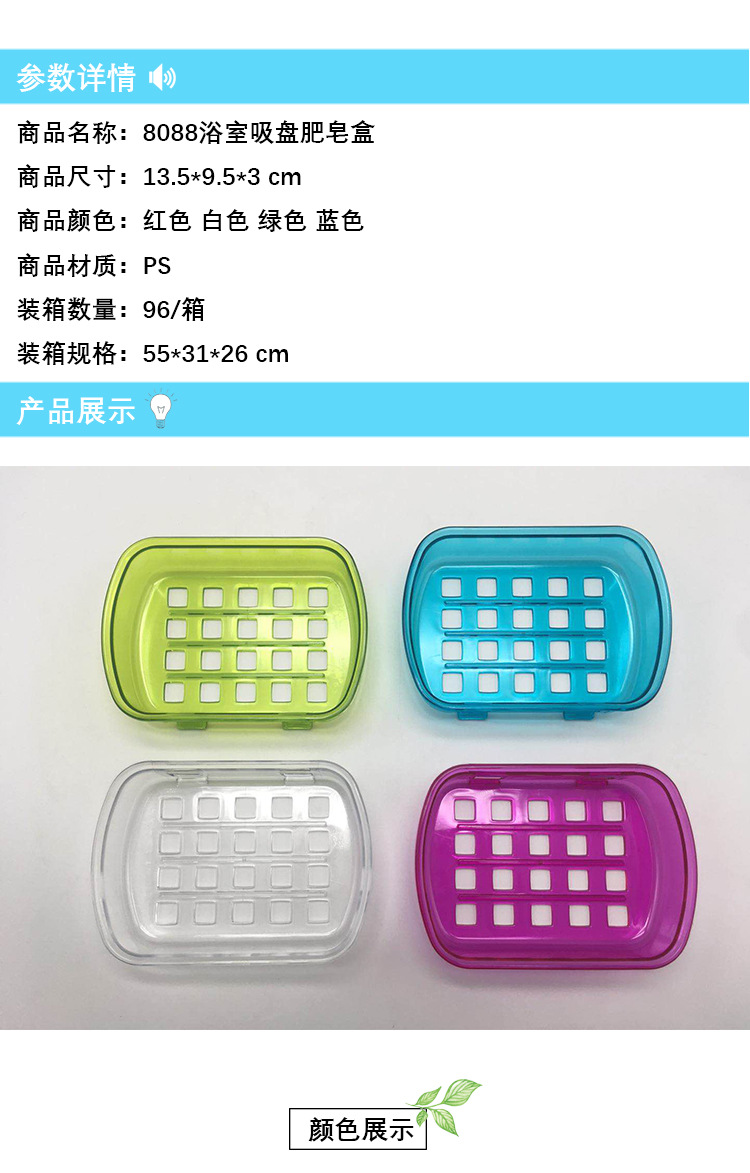 8088-166F03吸盘挂蓝肥皂盒 浴室透明肥皂盒 塑料ps皂盒