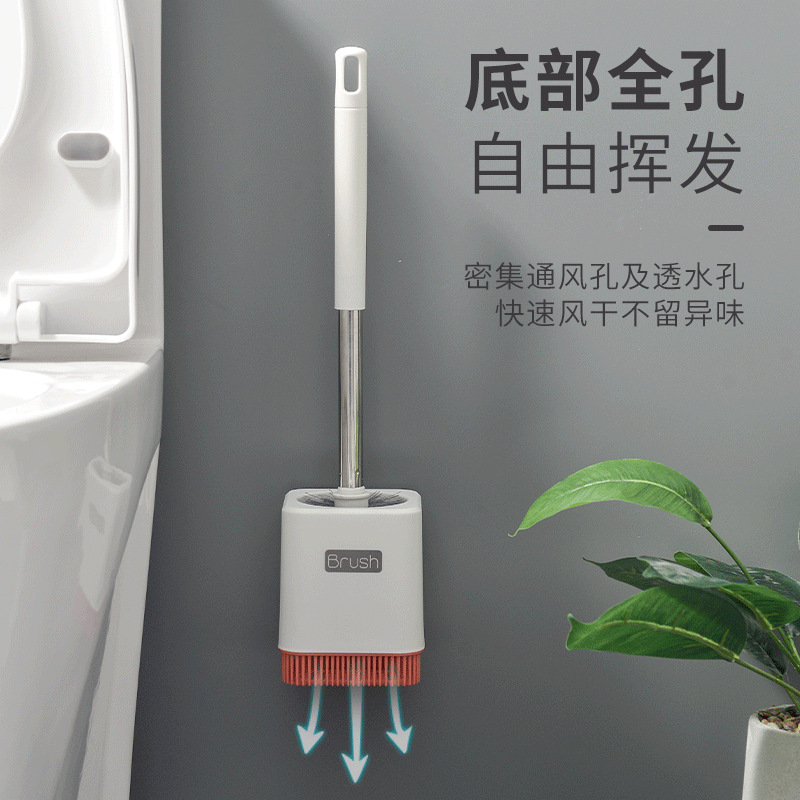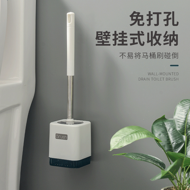 工厂直销不锈钢长柄马桶清洁盒装带底座软毛马桶刷
