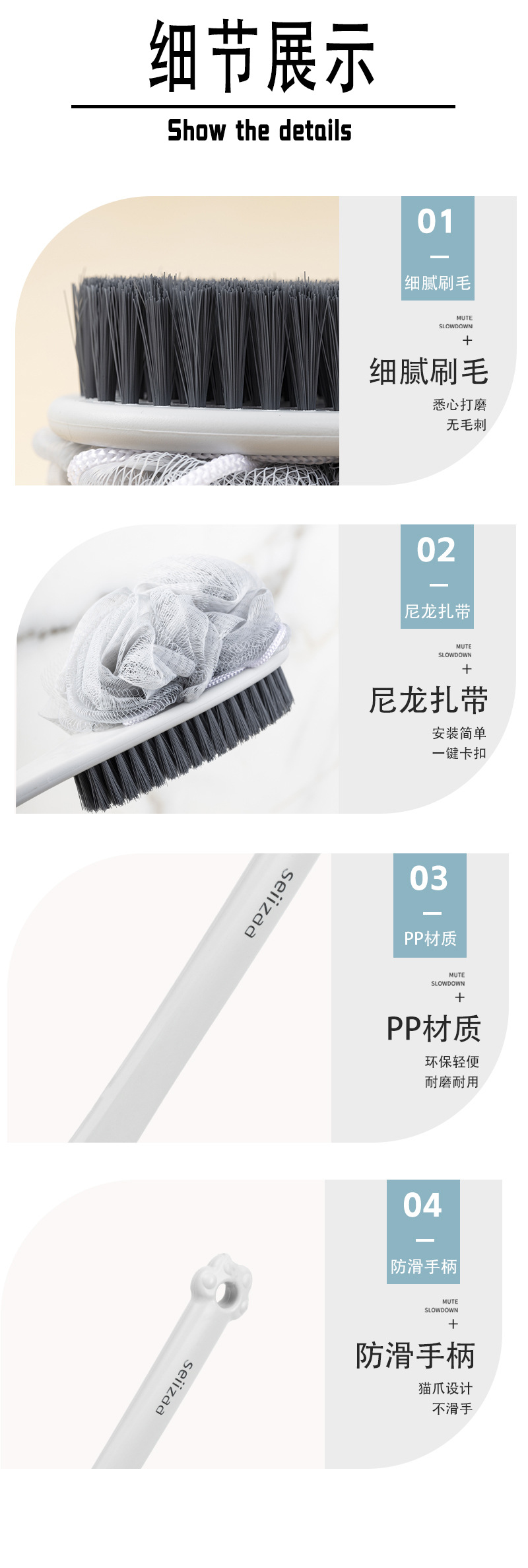 多功能浴花刷沐浴球后背清洁刷洗澡刷软毛长柄沐浴刷搓澡搓背神器