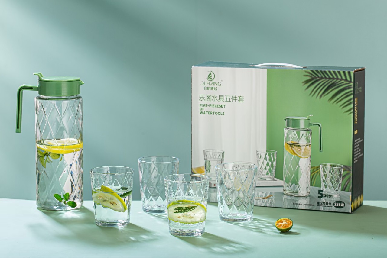 新款乐阁玻璃水具5件套菱形冷水壶家用果汁杯开业庆典礼品印logo