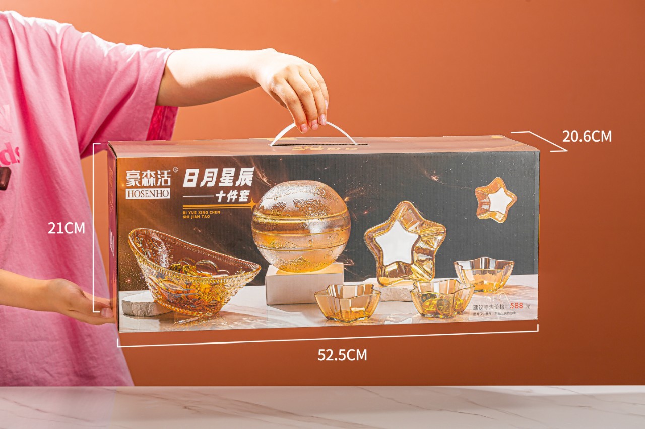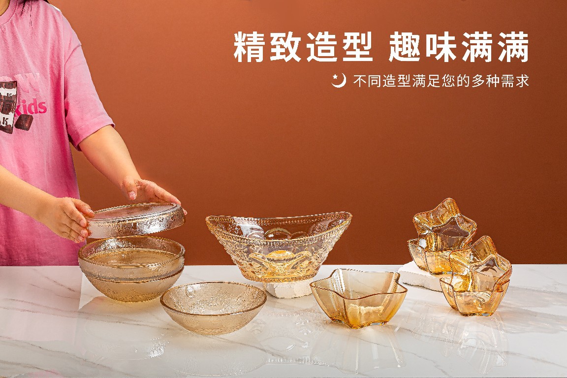 琥珀色钢化微波炉玻璃碗欧式餐盘饭碗碟子金色泡面碗伴手礼盒套装