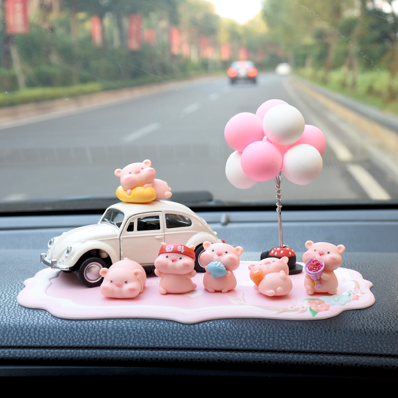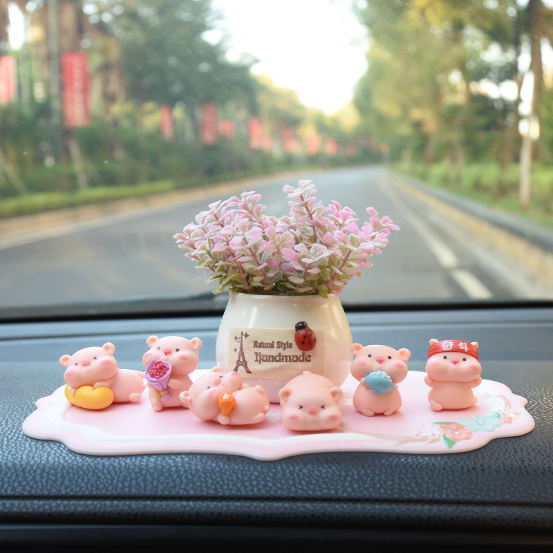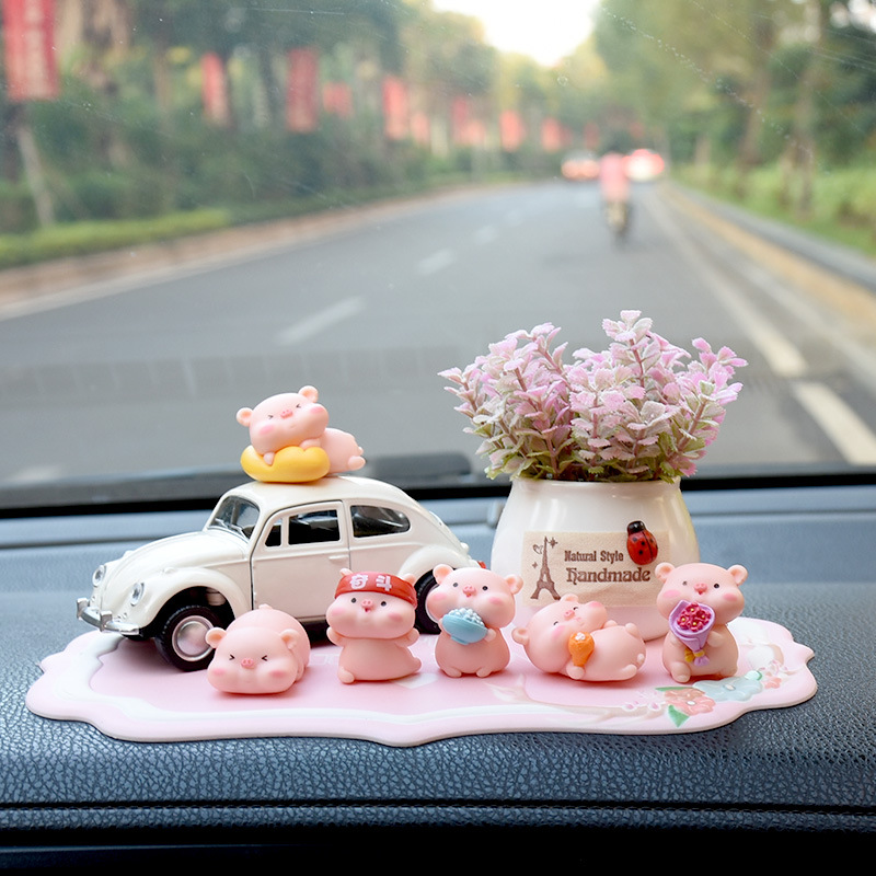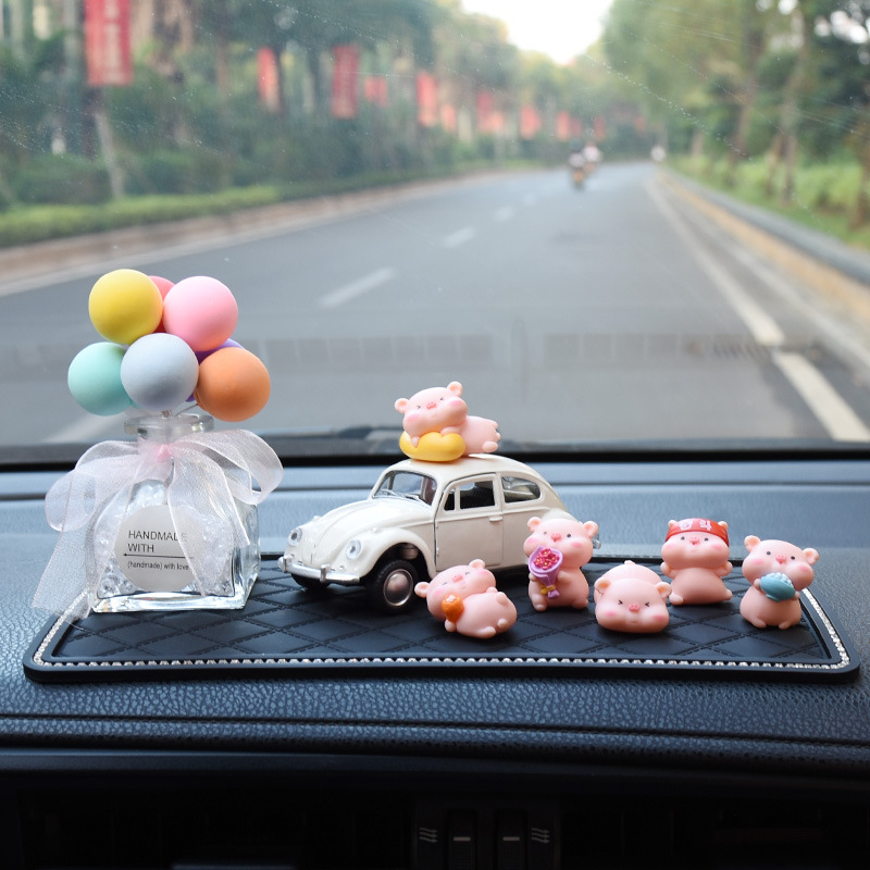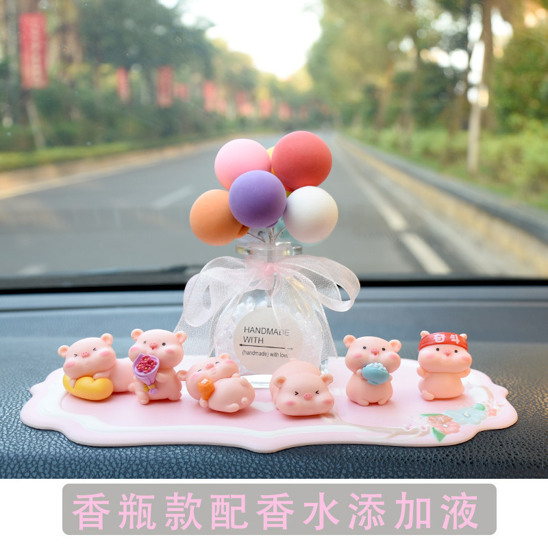 网红小猪车内饰品摆件女神汽车中控台装饰创意高档可爱车载香水