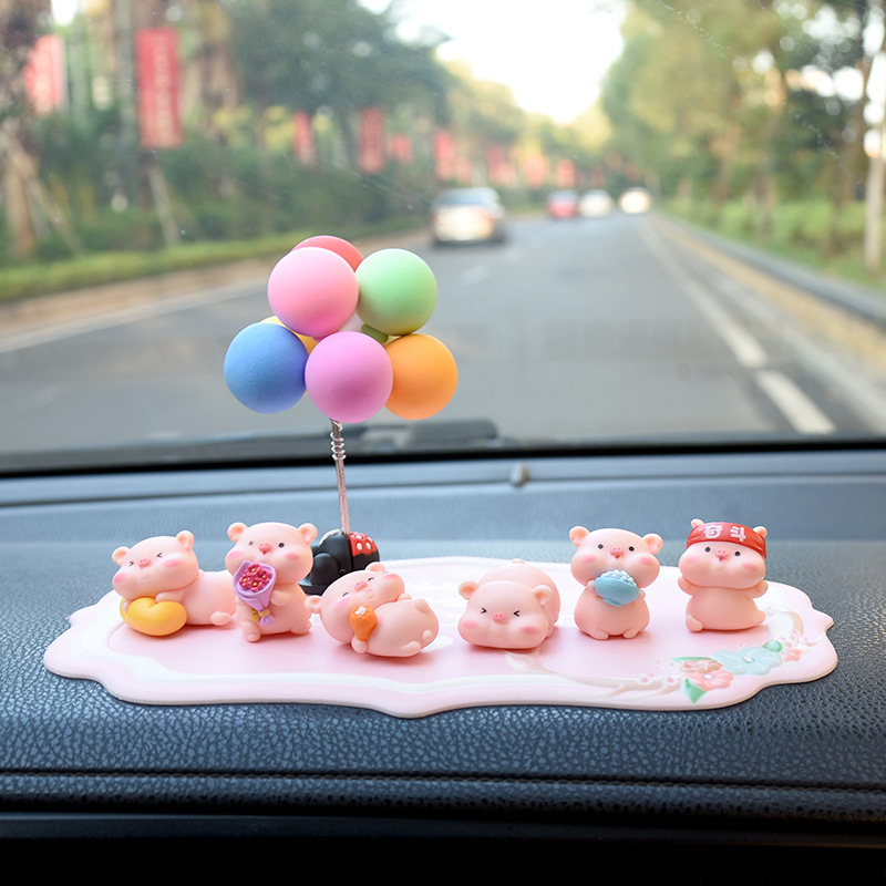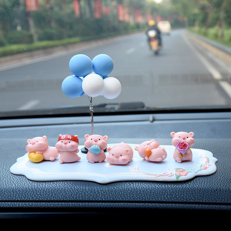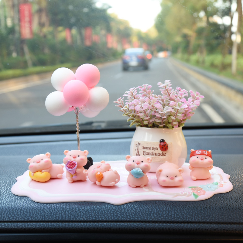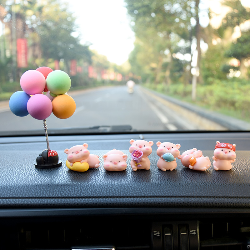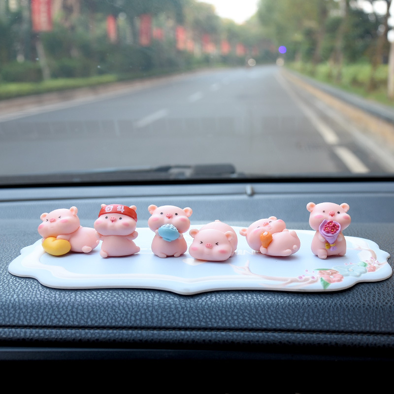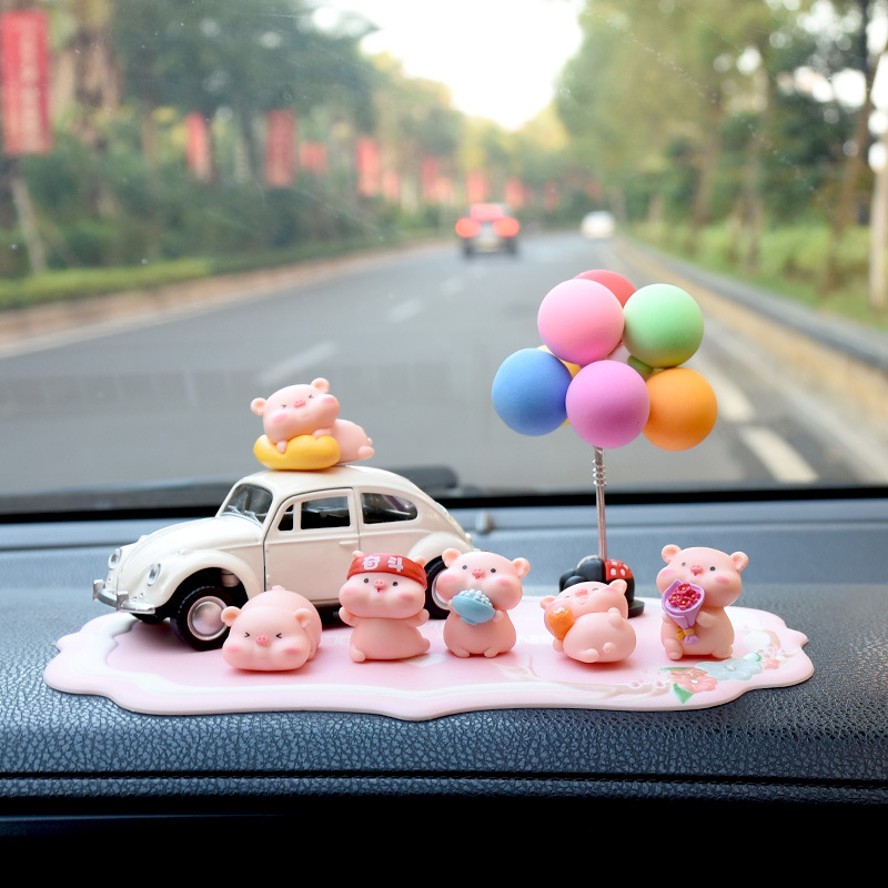 网红小猪车内饰品摆件女神汽车中控台装饰创意高档可爱车载香水
