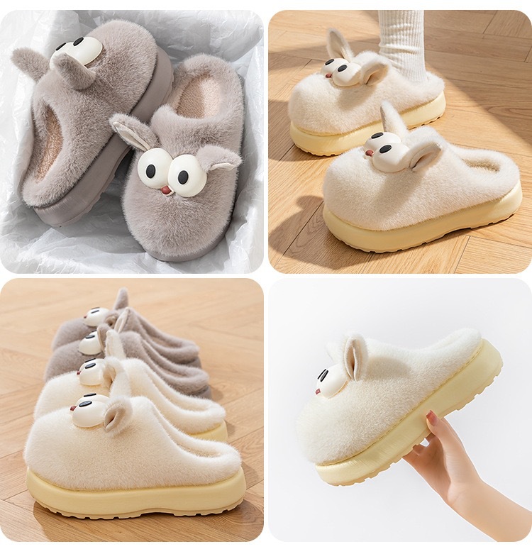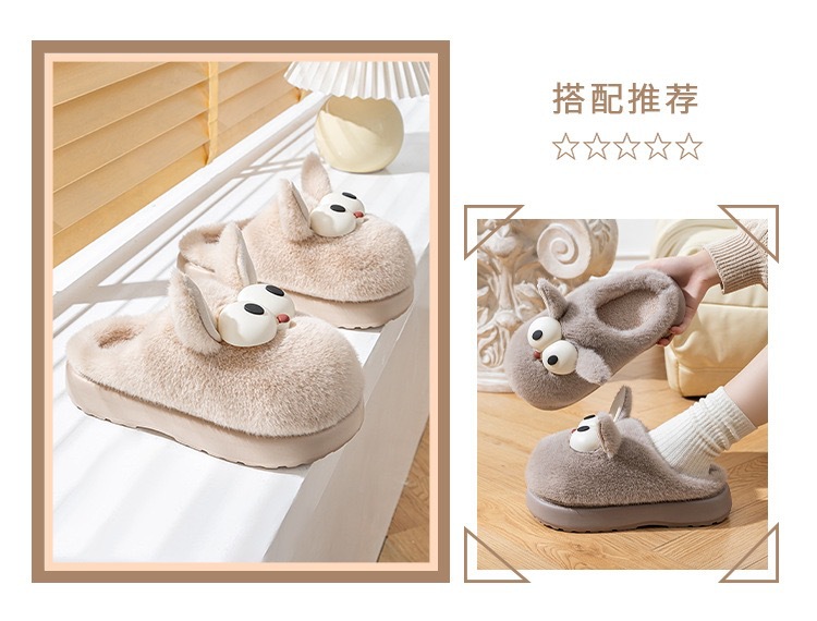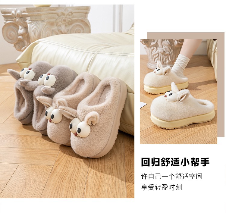 窠窠良品棉拖鞋冬季新款室内居家棉鞋加绒加厚防滑轻便毛毛拖鞋女