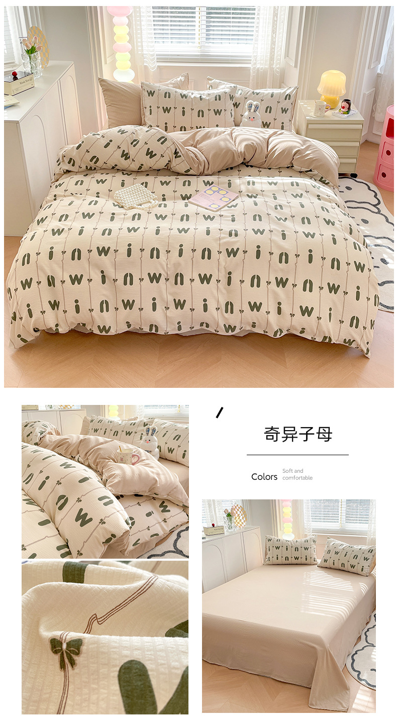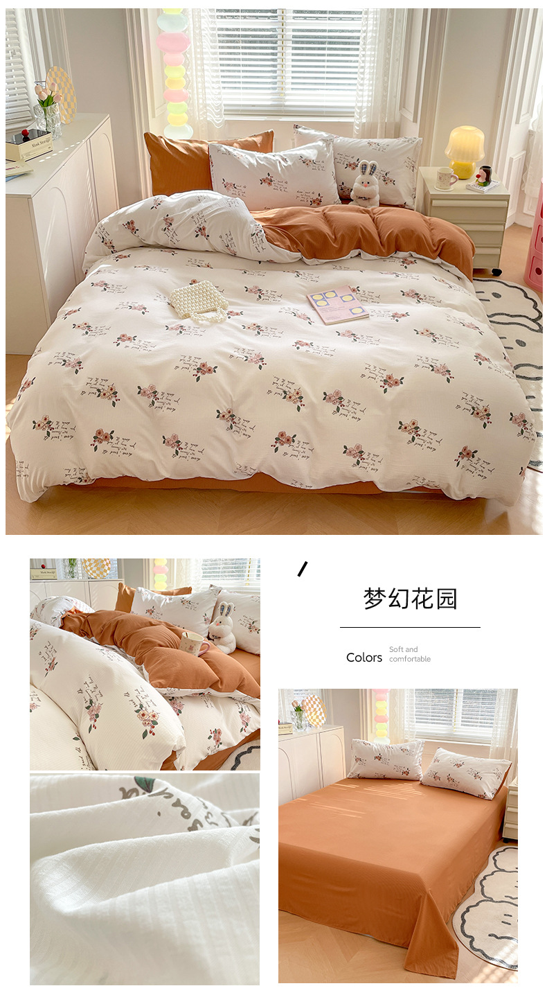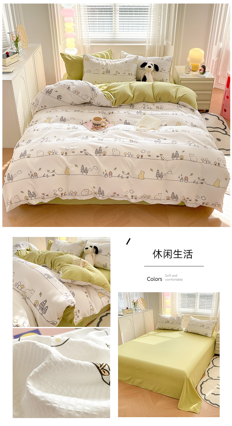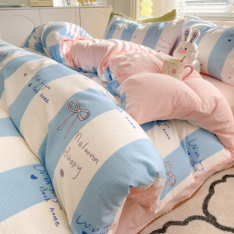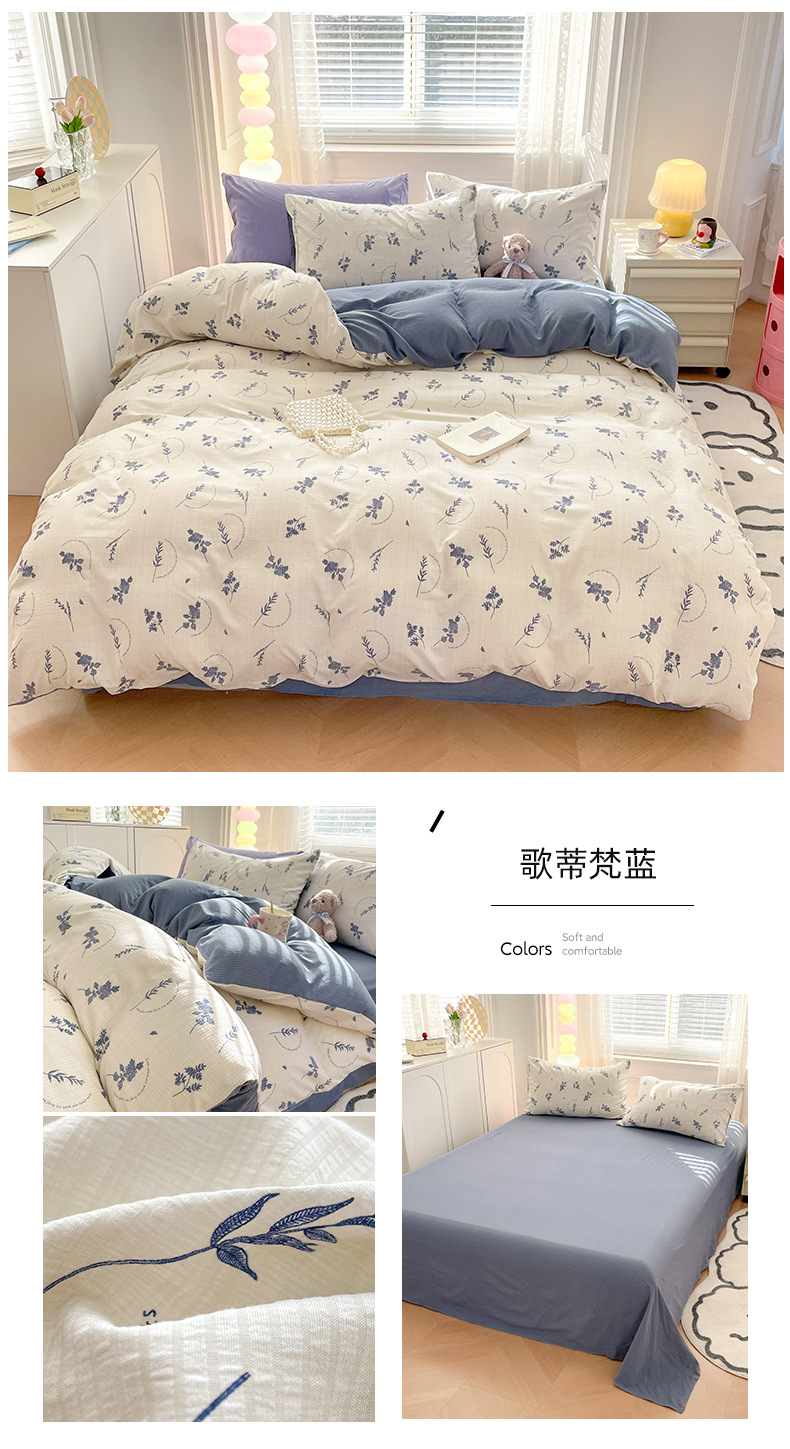 ins床上四件套 母婴级泡泡棉床单被套学生宿舍三件套床笠套件批发