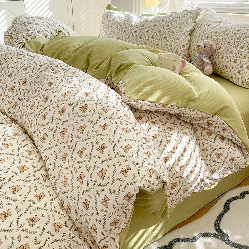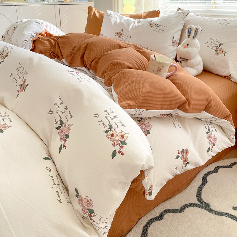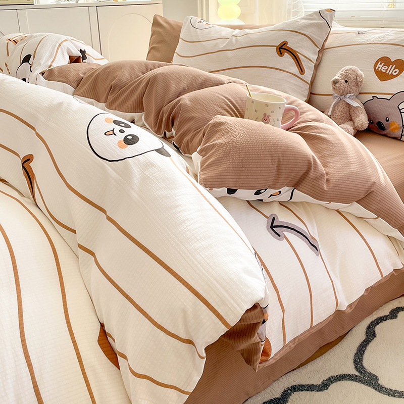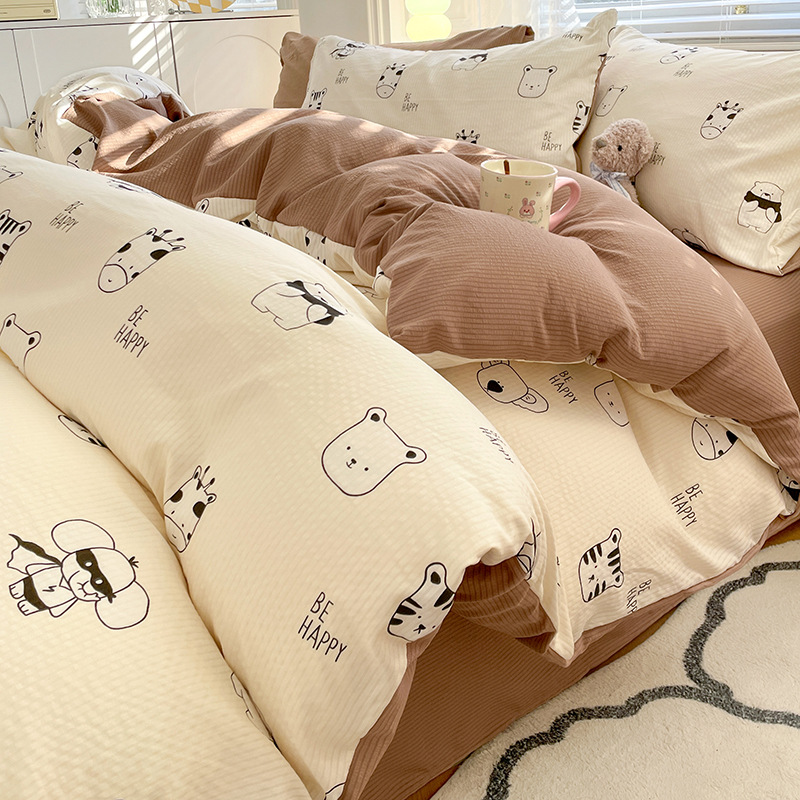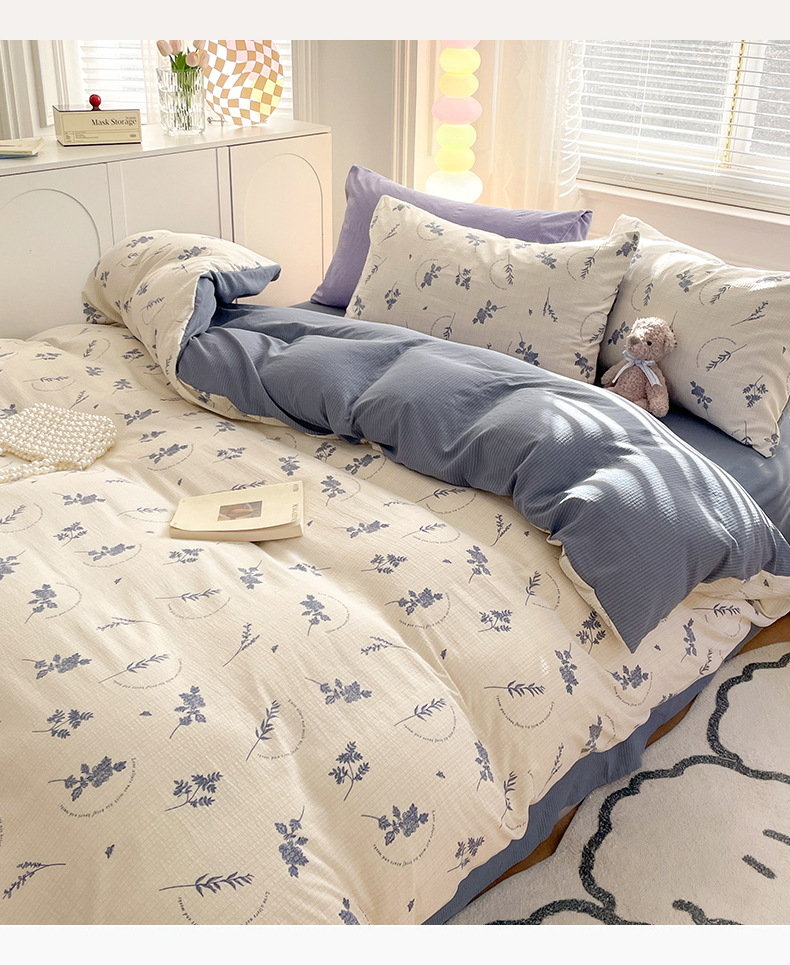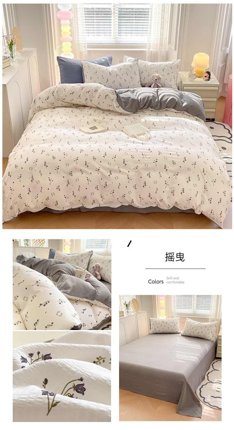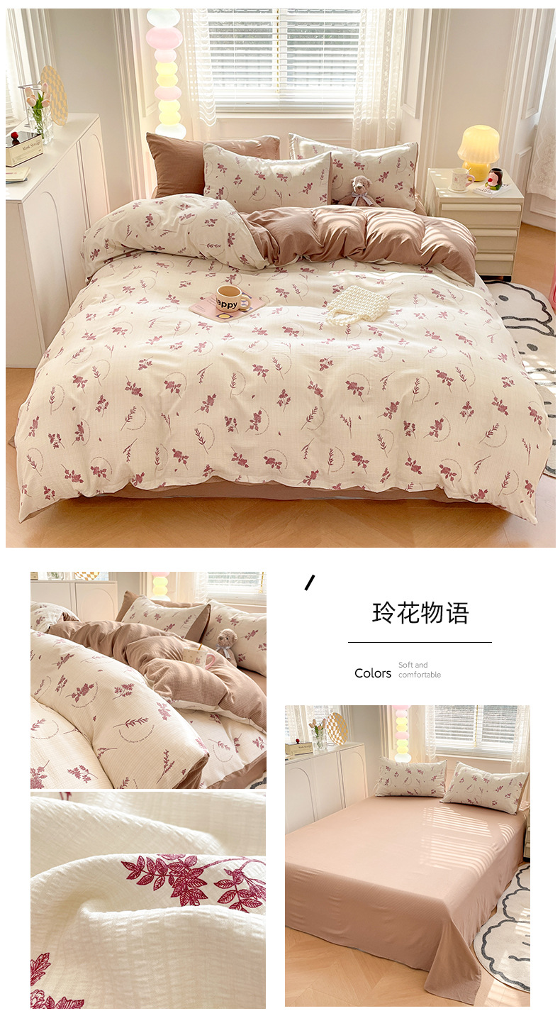 ins床上四件套 母婴级泡泡棉床单被套学生宿舍三件套床笠套件批发