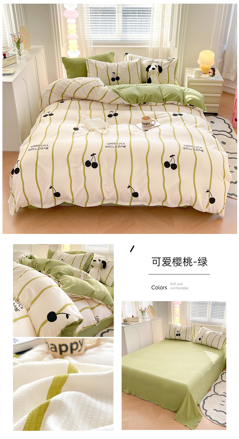 | 1.2m fitted sheet four-piece set (quilt cover 150 x200cm)(1.2m床笠款四件套(被套150X200cm)) | USD $14.78 | 10000 set available |