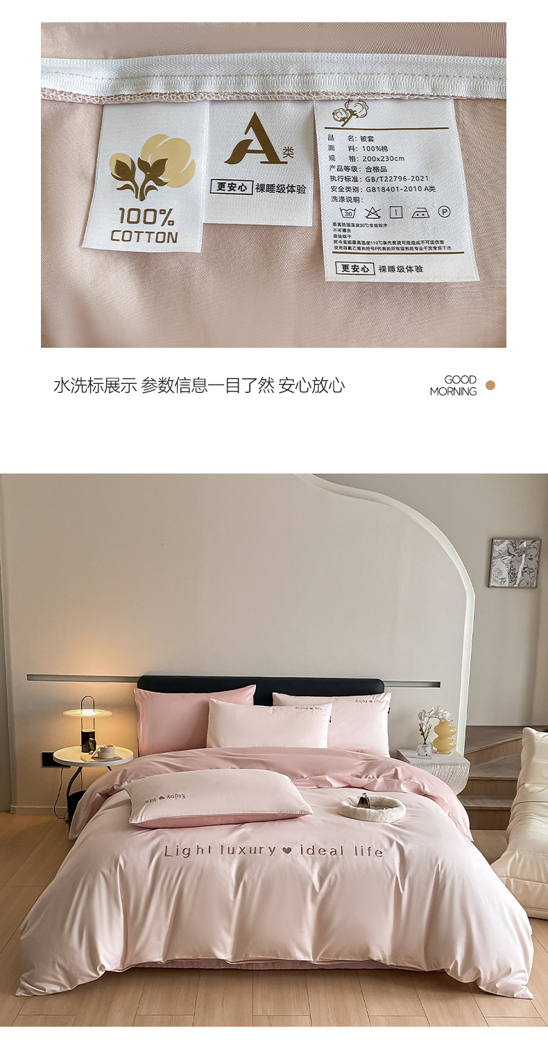 高端100支长绒棉四件套 全棉纯棉被罩贡缎床单被套纯色三件套床笠