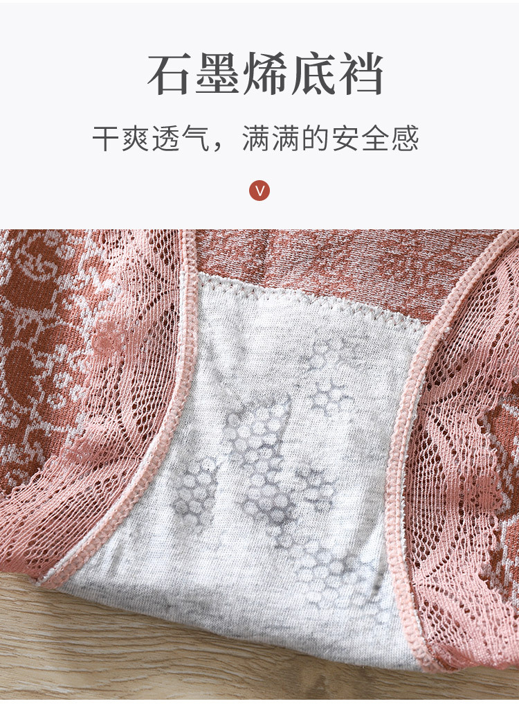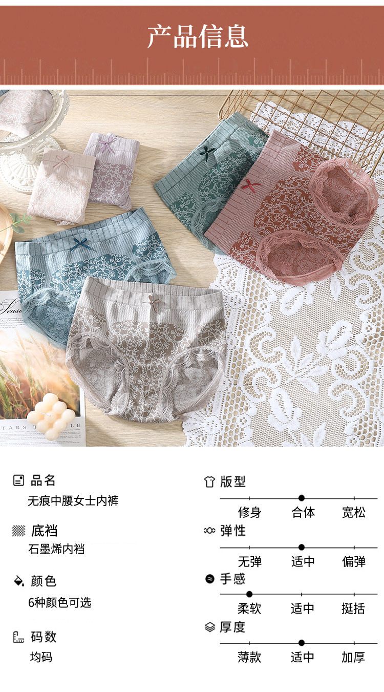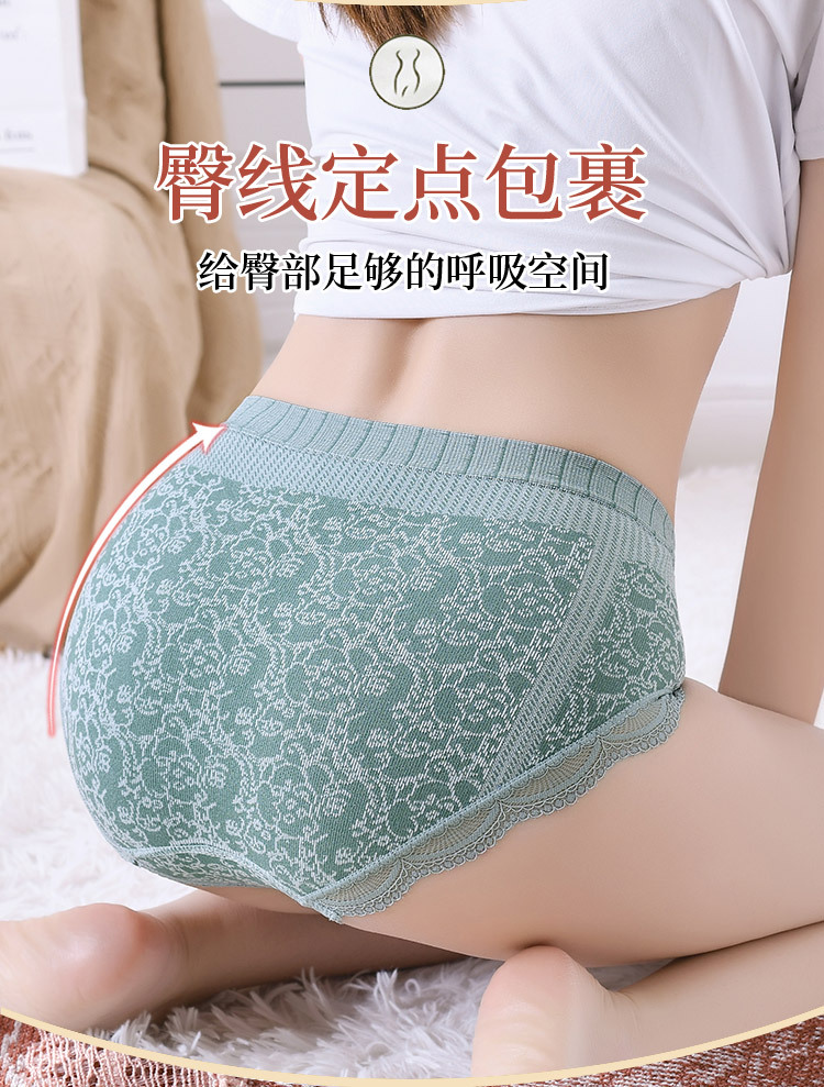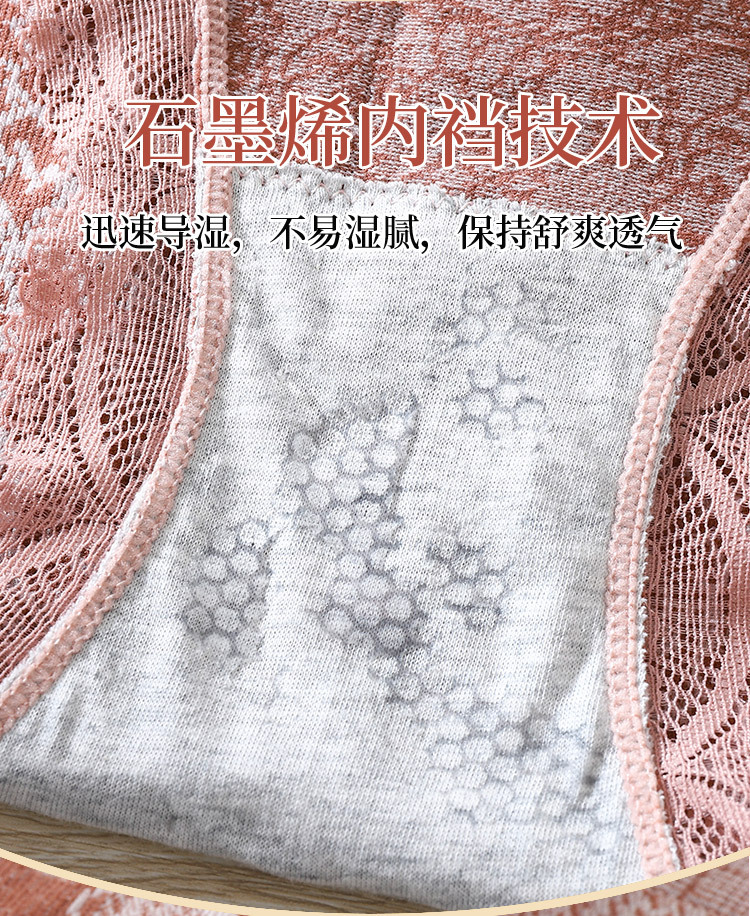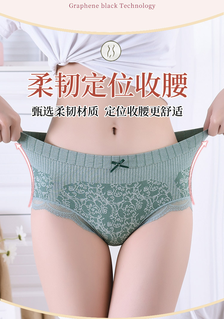 跨境大码高腰内裤女士无缝石墨烯底裆透气蕾丝三角裤【独立包装】
