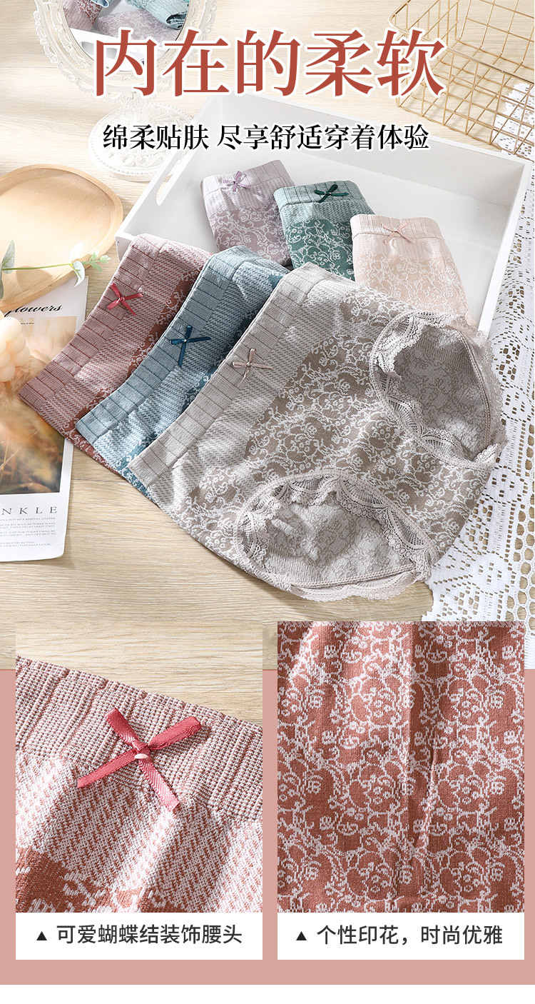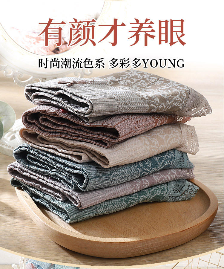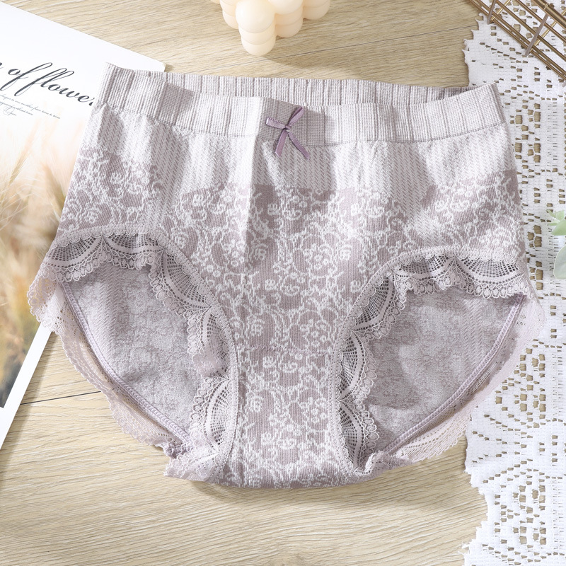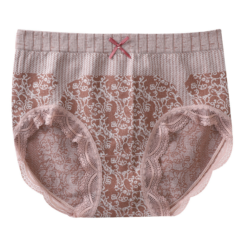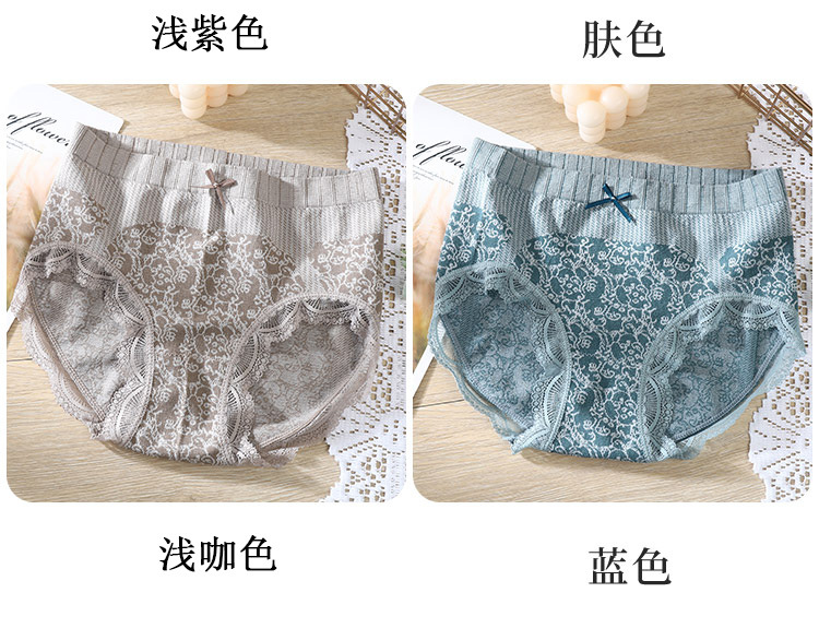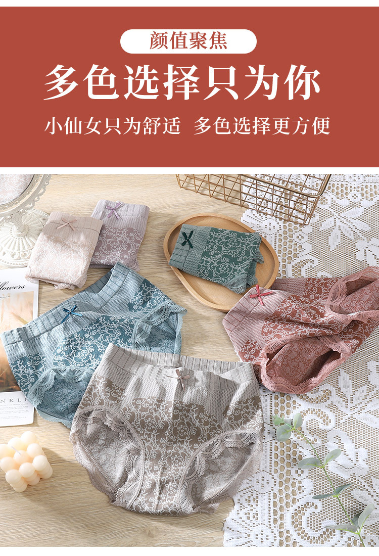 跨境大码高腰内裤女士无缝石墨烯底裆透气蕾丝三角裤【独立包装】