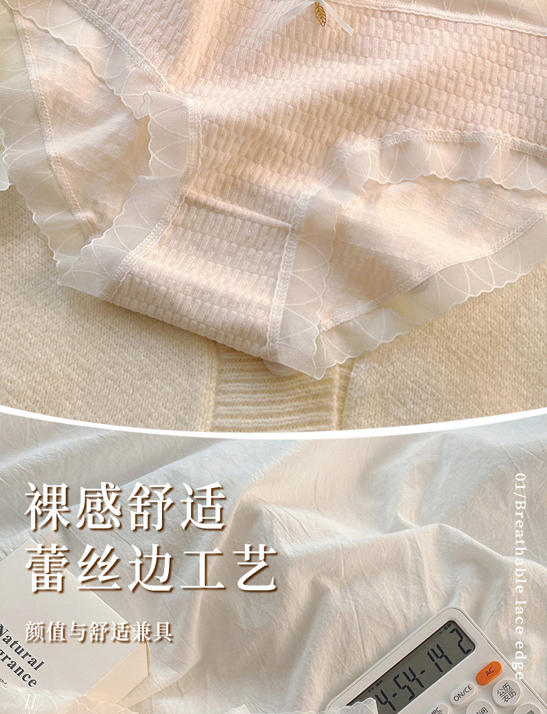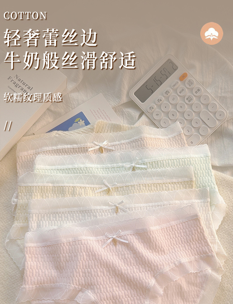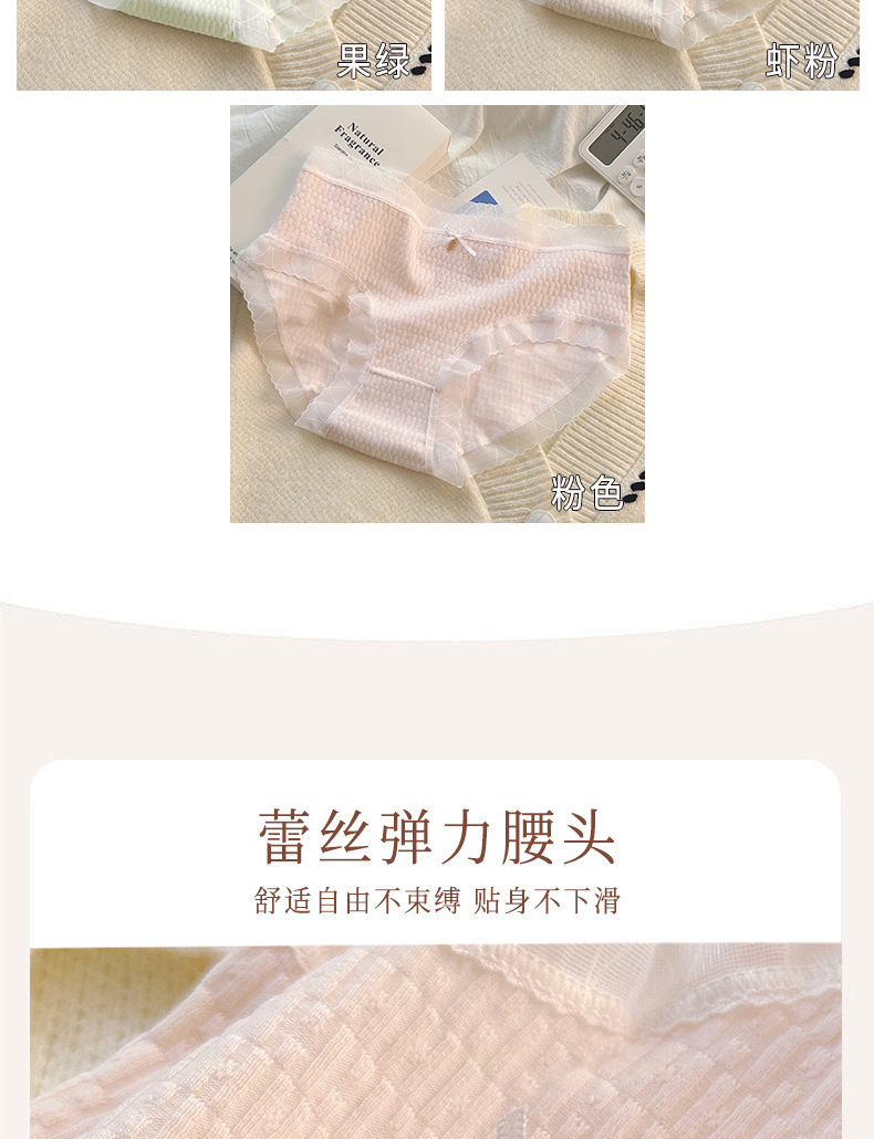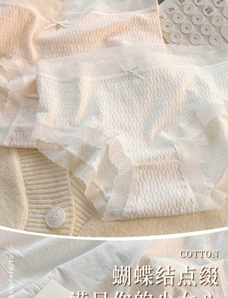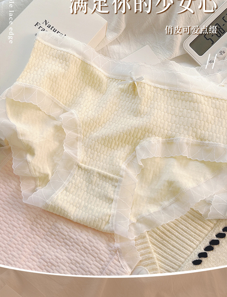 甜美少女蕾丝边纯棉提花内裤女中腰奶油系柔适全棉档女士三角短裤