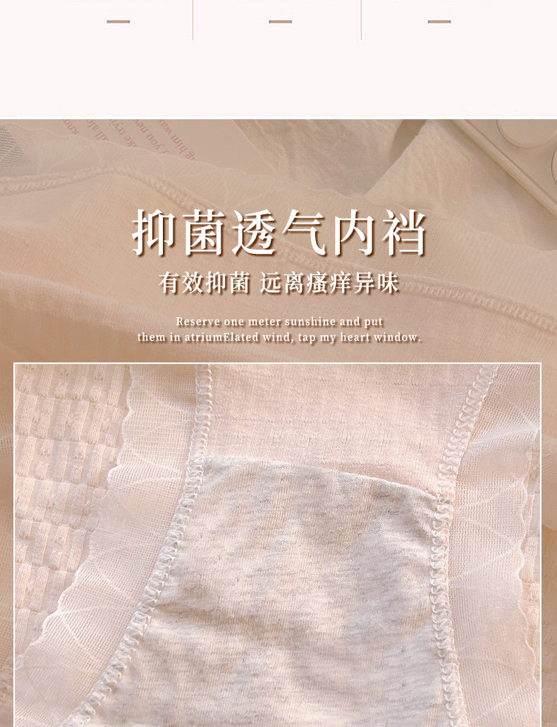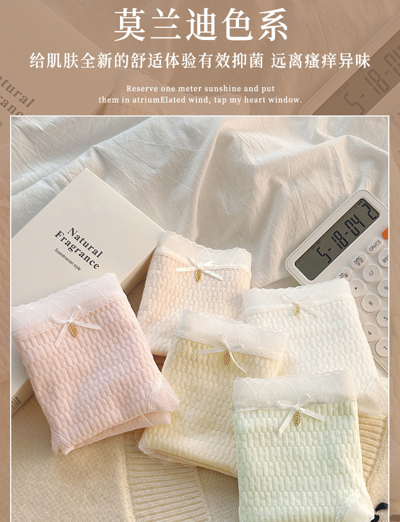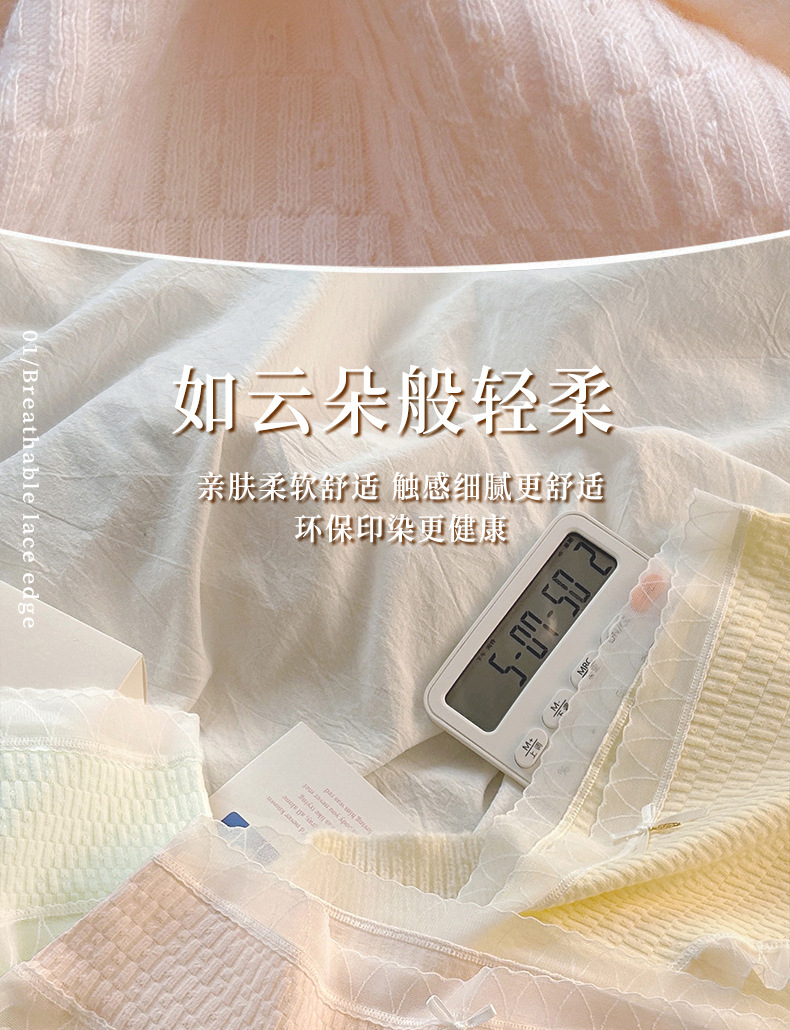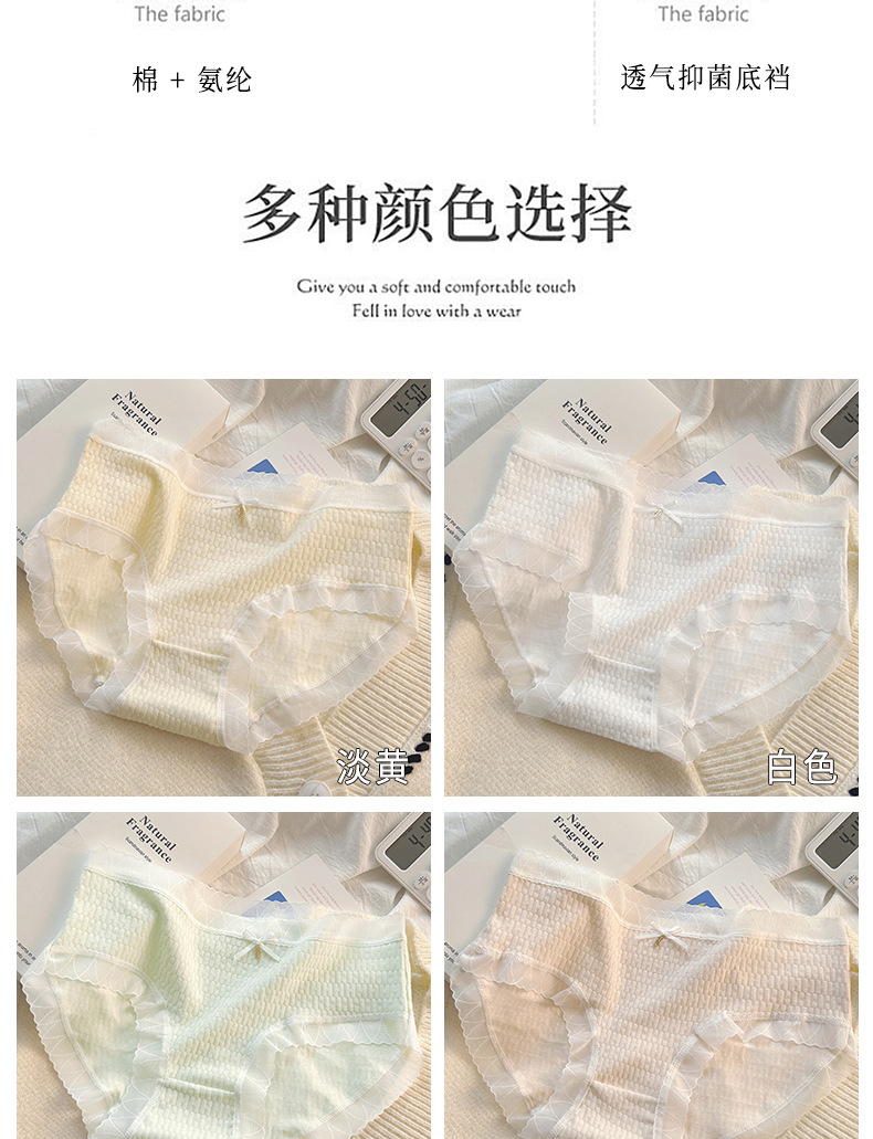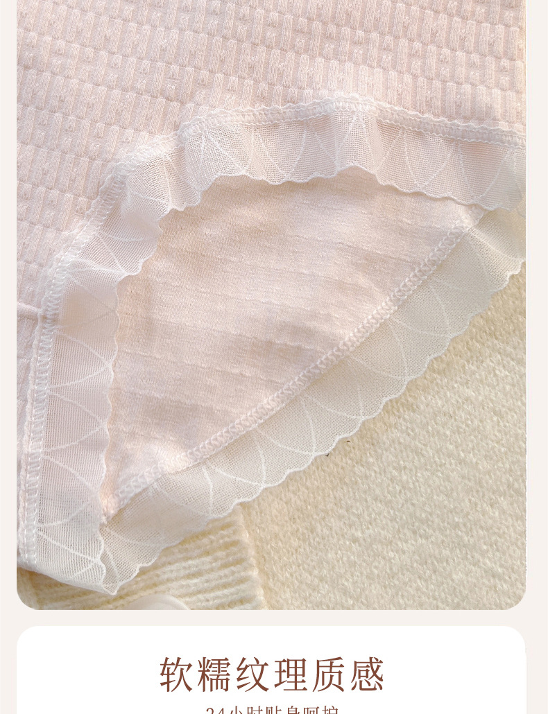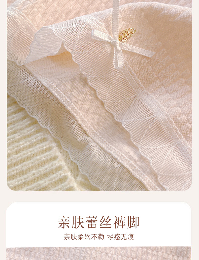 甜美少女蕾丝边纯棉提花内裤女中腰奶油系柔适全棉档女士三角短裤