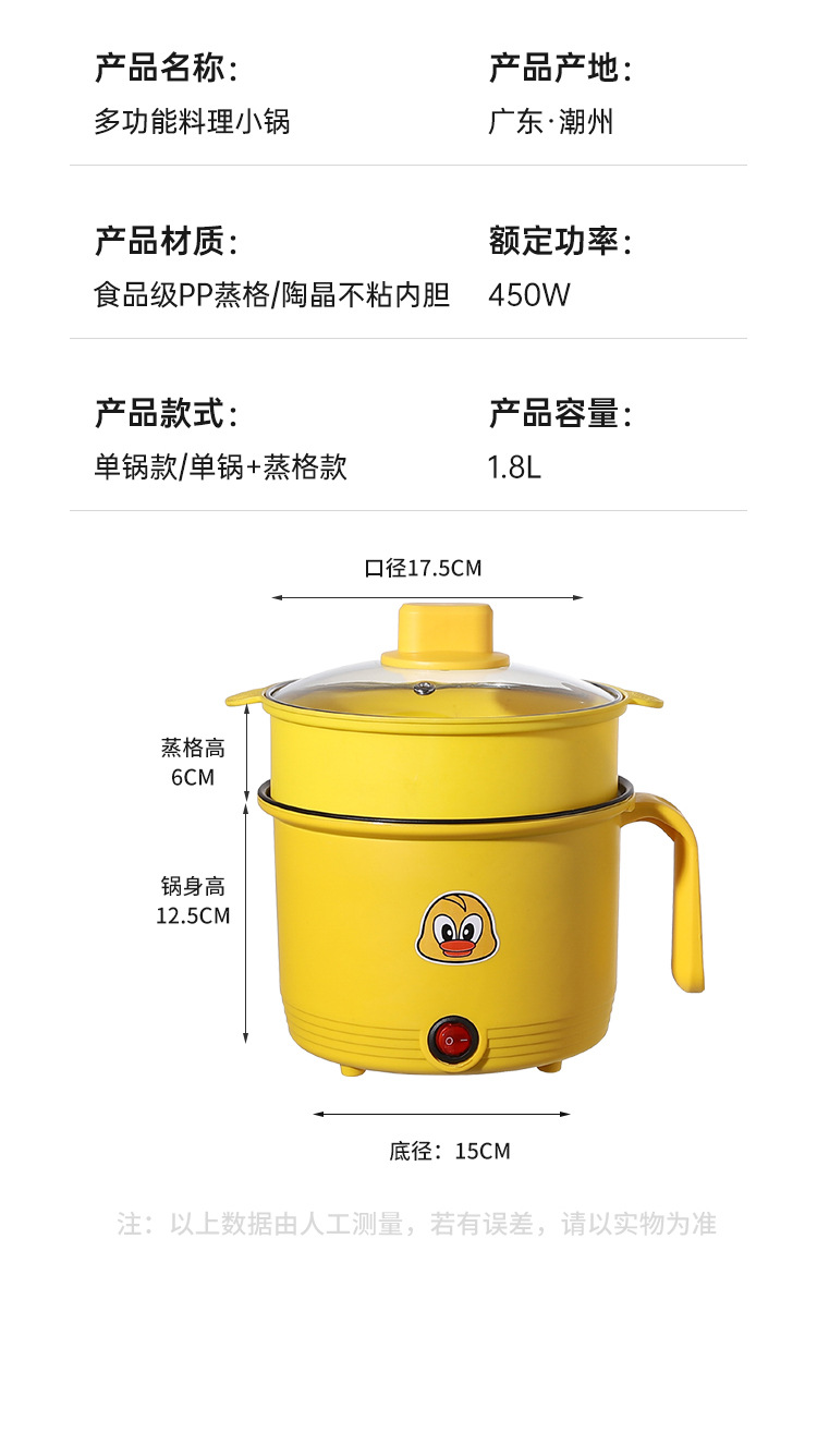 小黄鸭电煮锅多功能迷你宿舍学生煮面小锅泡面锅电热火锅礼品批发