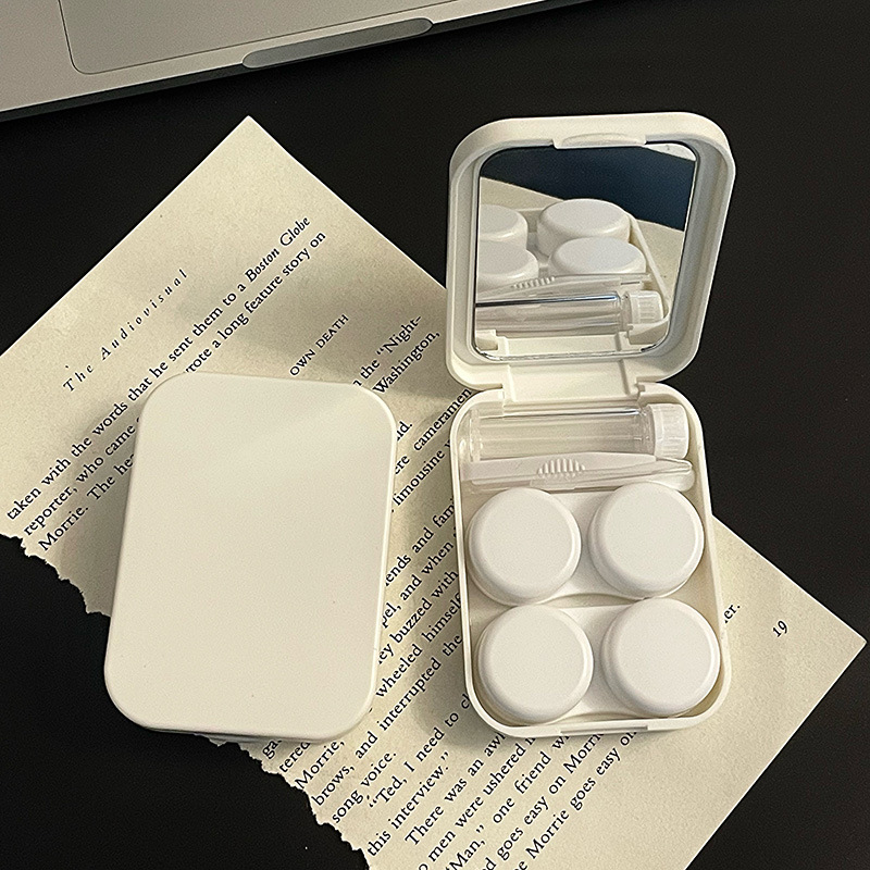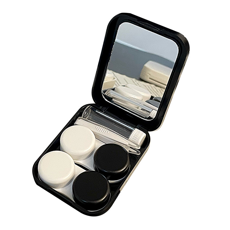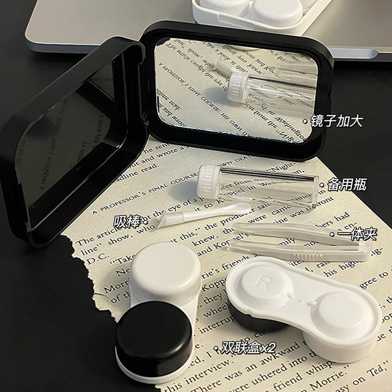 美瞳盒纯色黑白两副装收纳盒磨砂加厚隐形眼镜伴侣盒带镜子