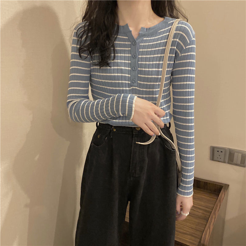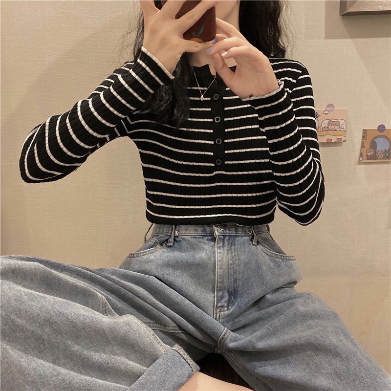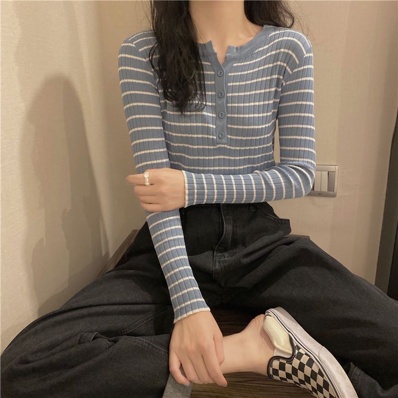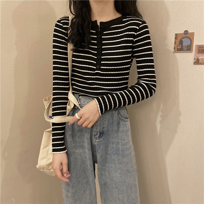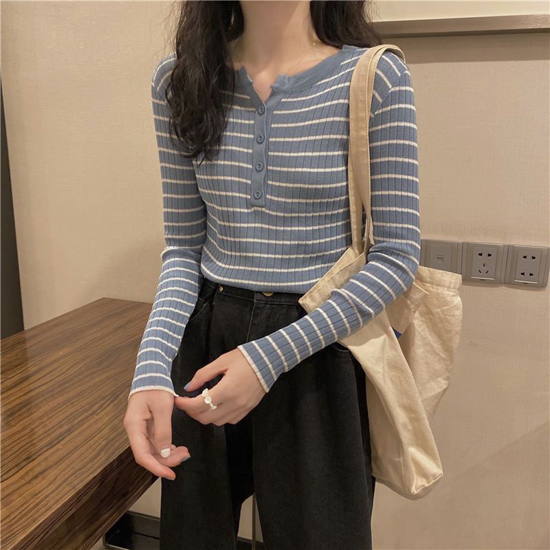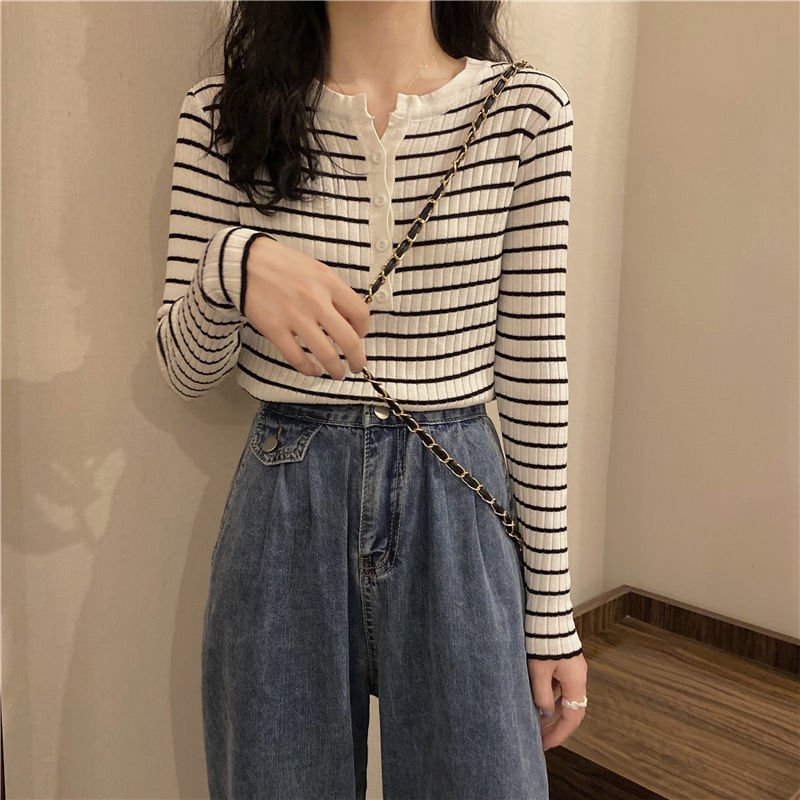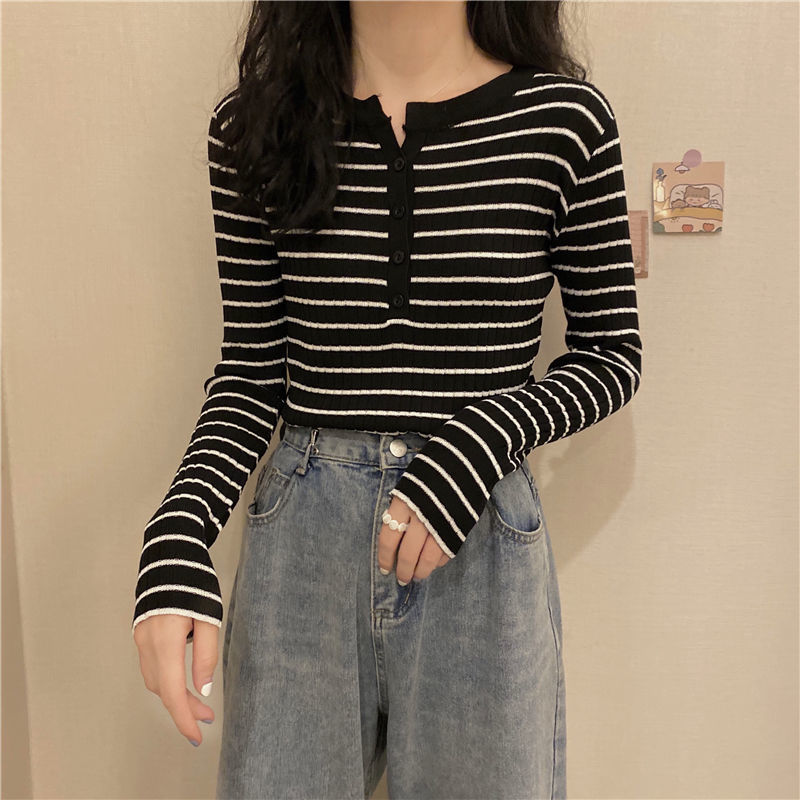 条纹针织衫春秋季打底衫内搭女装2023新款薄款修身爆款长袖上衣服