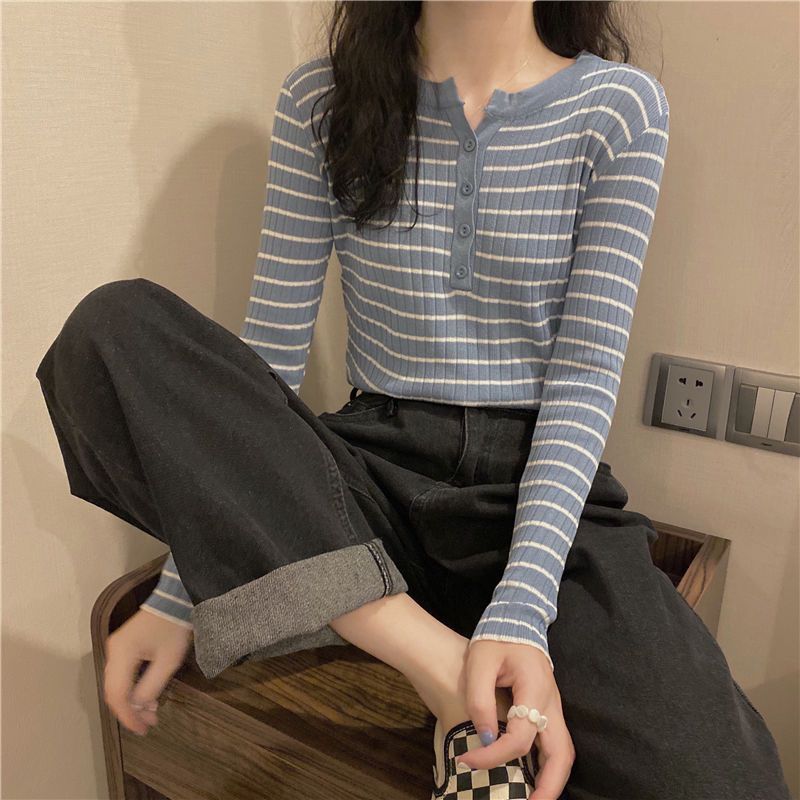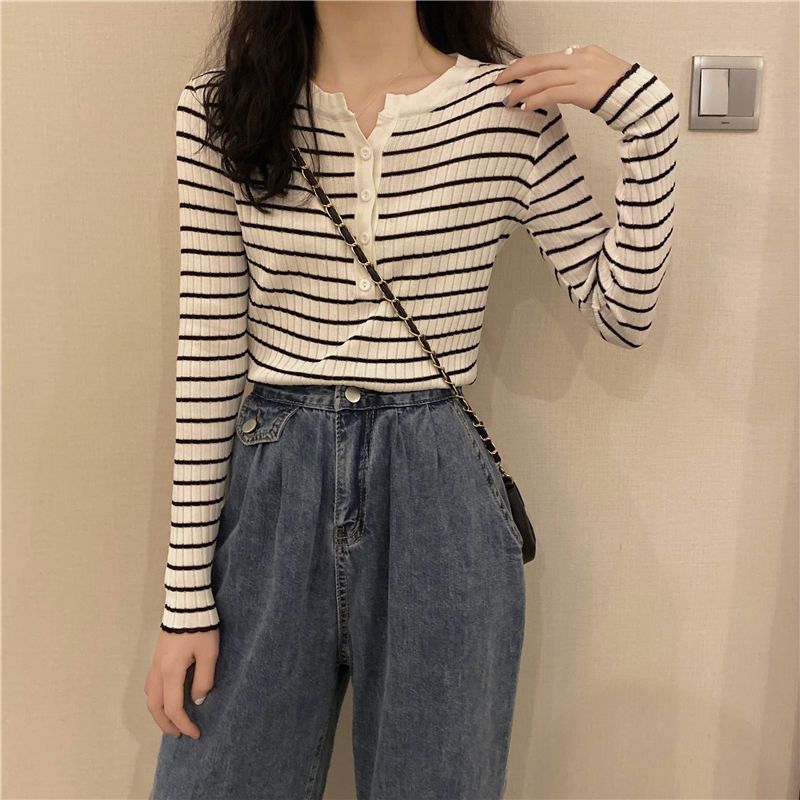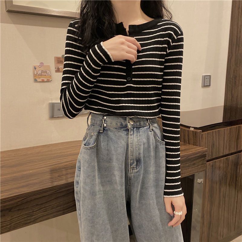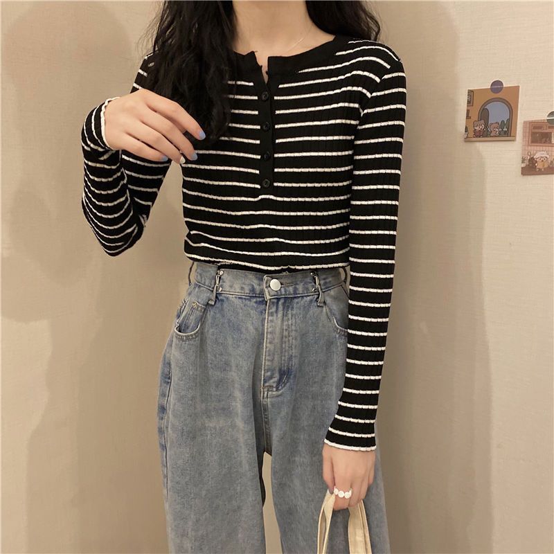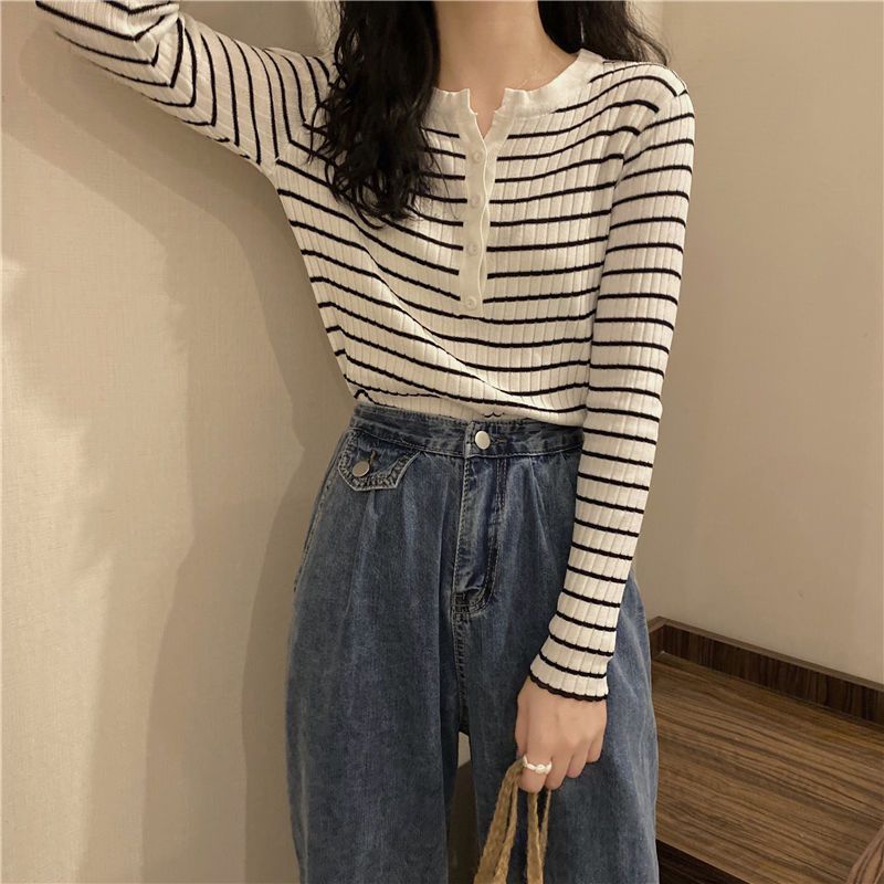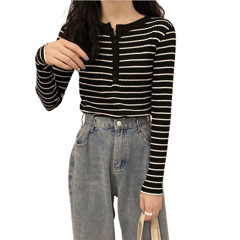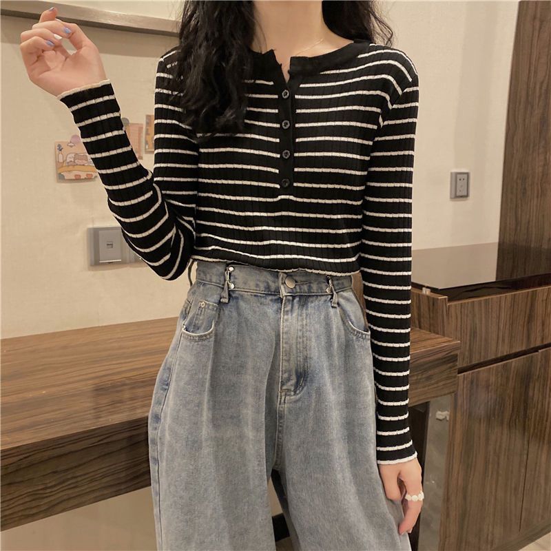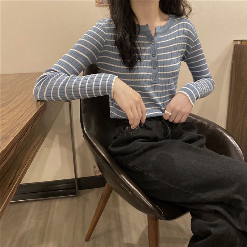 条纹针织衫春秋季打底衫内搭女装2023新款薄款修身爆款长袖上衣服