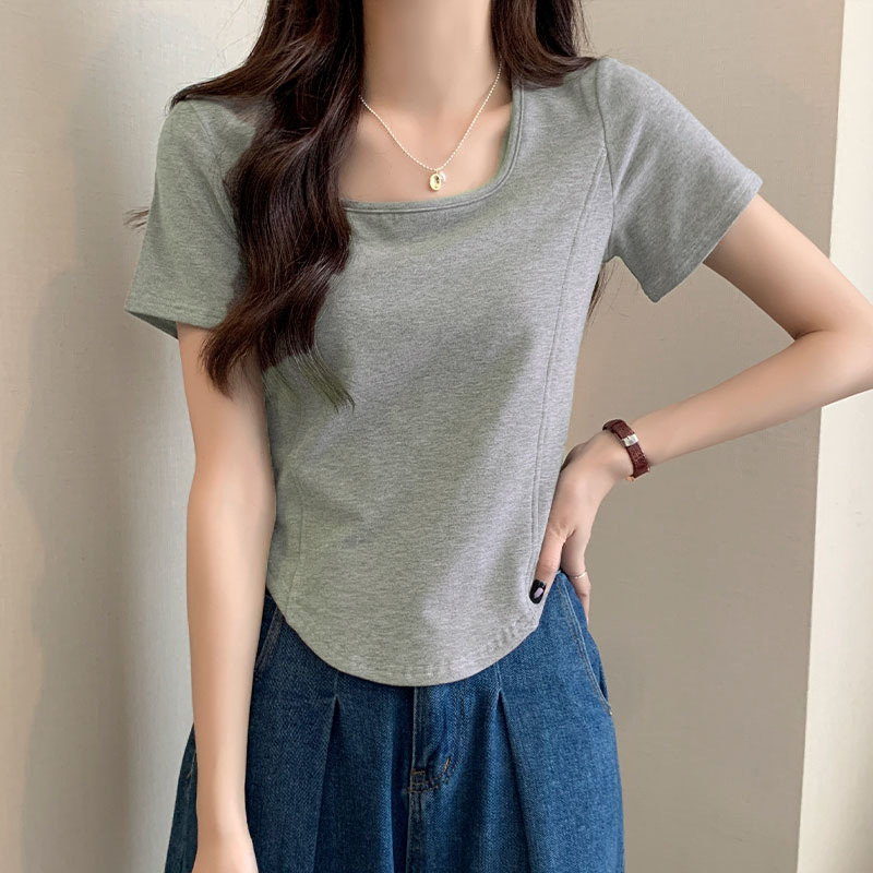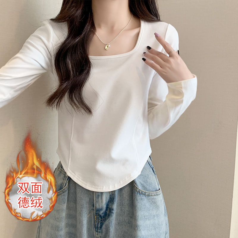 黑色修身显瘦方领打底衫女装外穿秋季2024新款不规则下摆长袖t恤