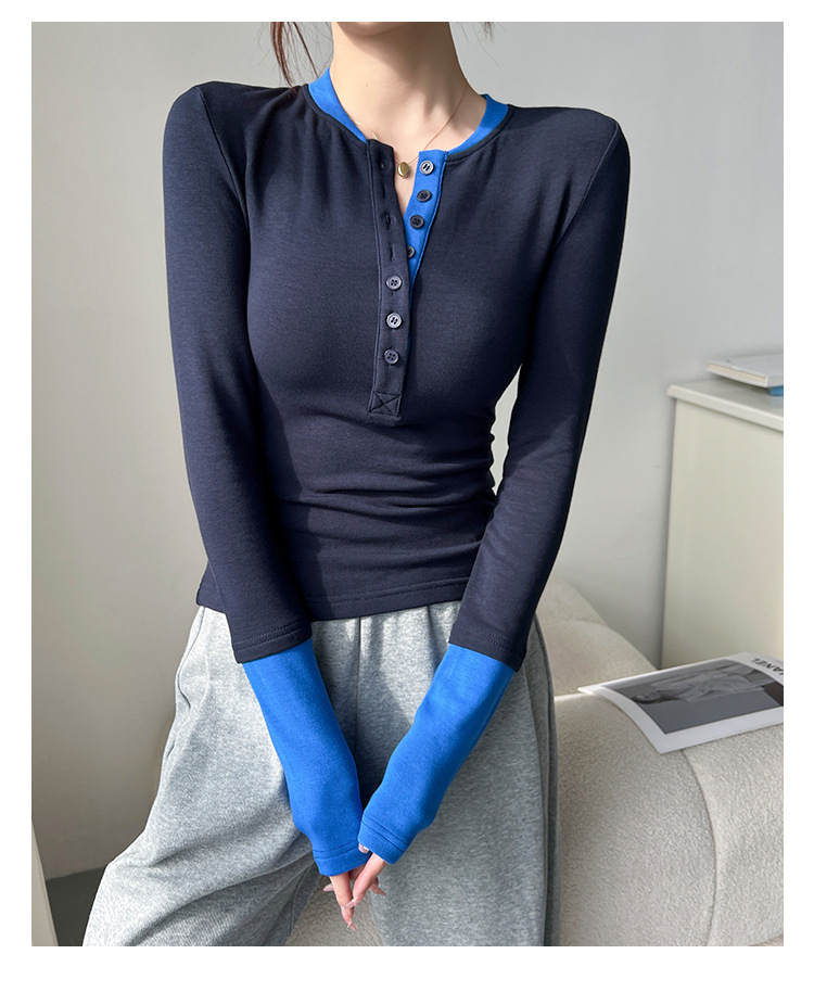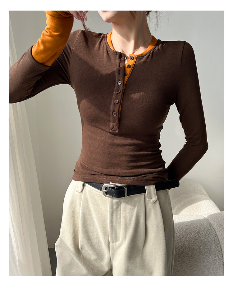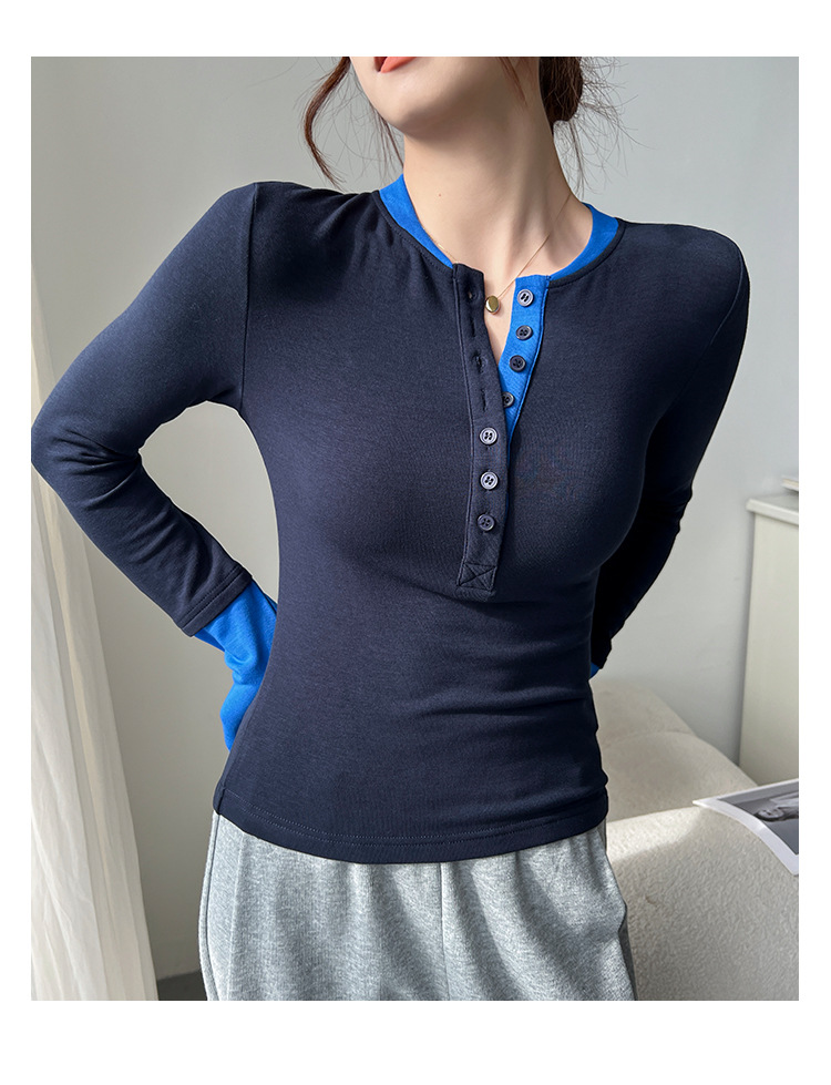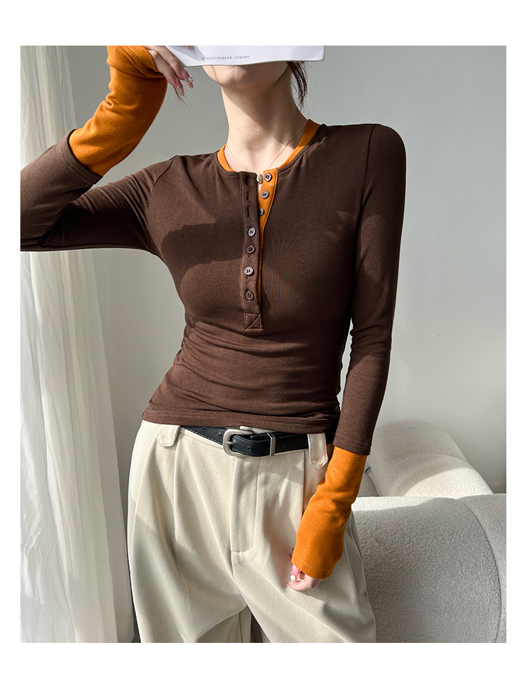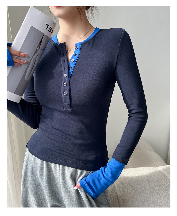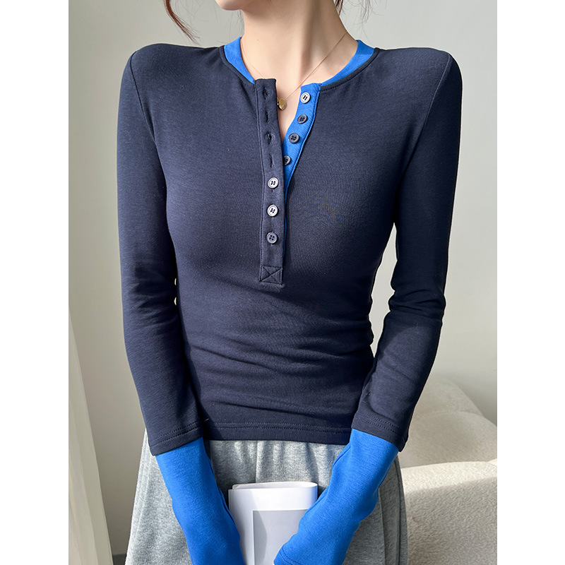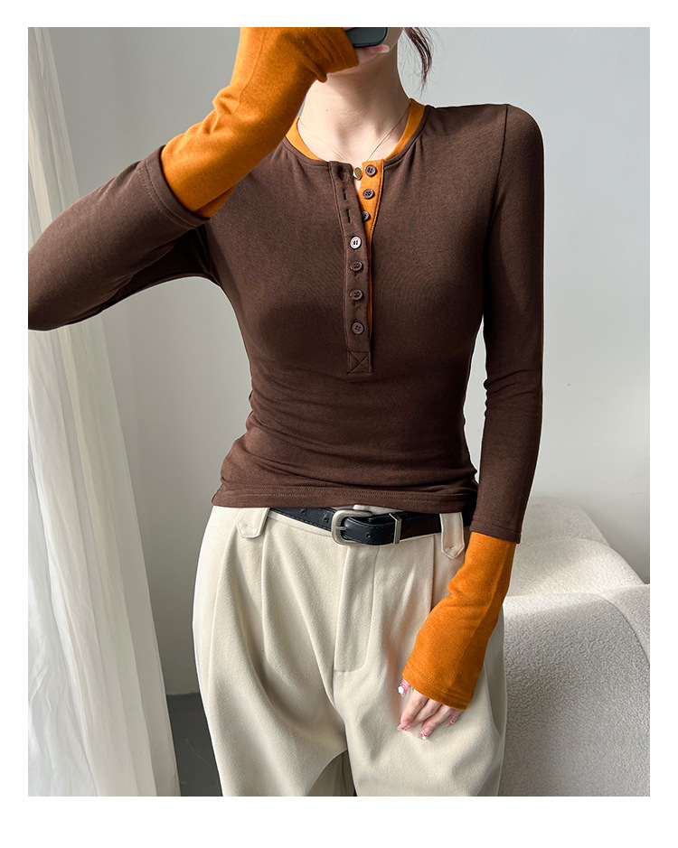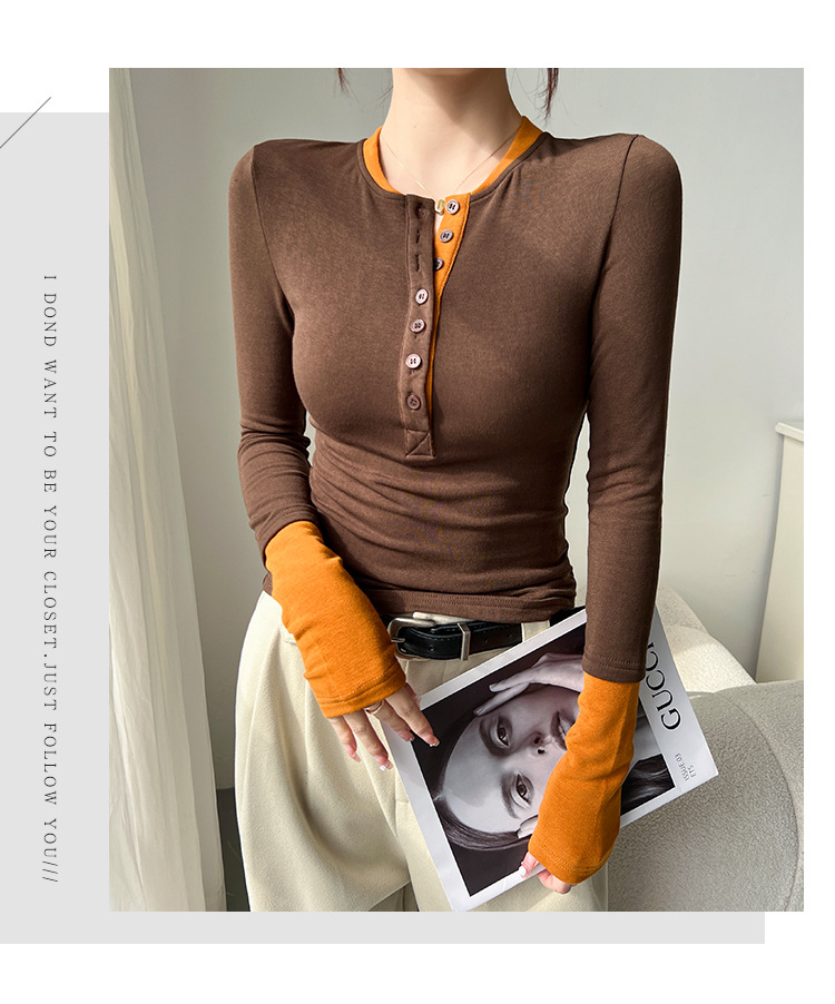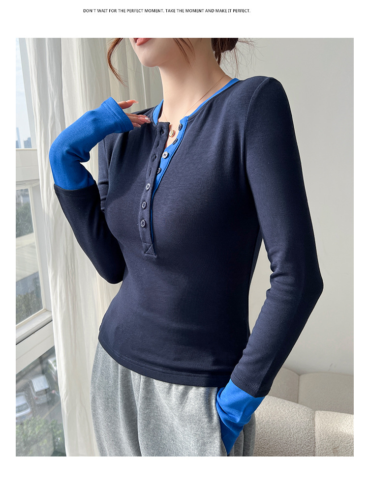 辣妹性感修身撞色拼接长袖t恤修身显瘦内搭打底衫设计感小众上衣