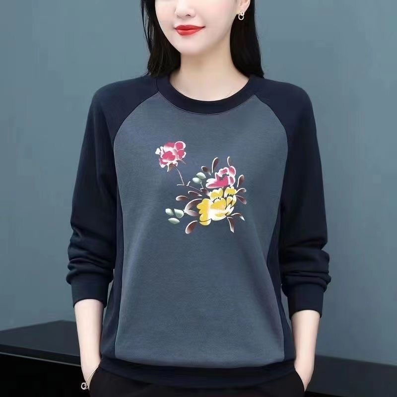 2024年秋装新款纯棉长袖t恤女中年妈妈春秋中老年打底衫宽松上衣