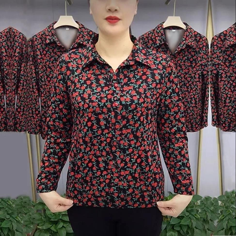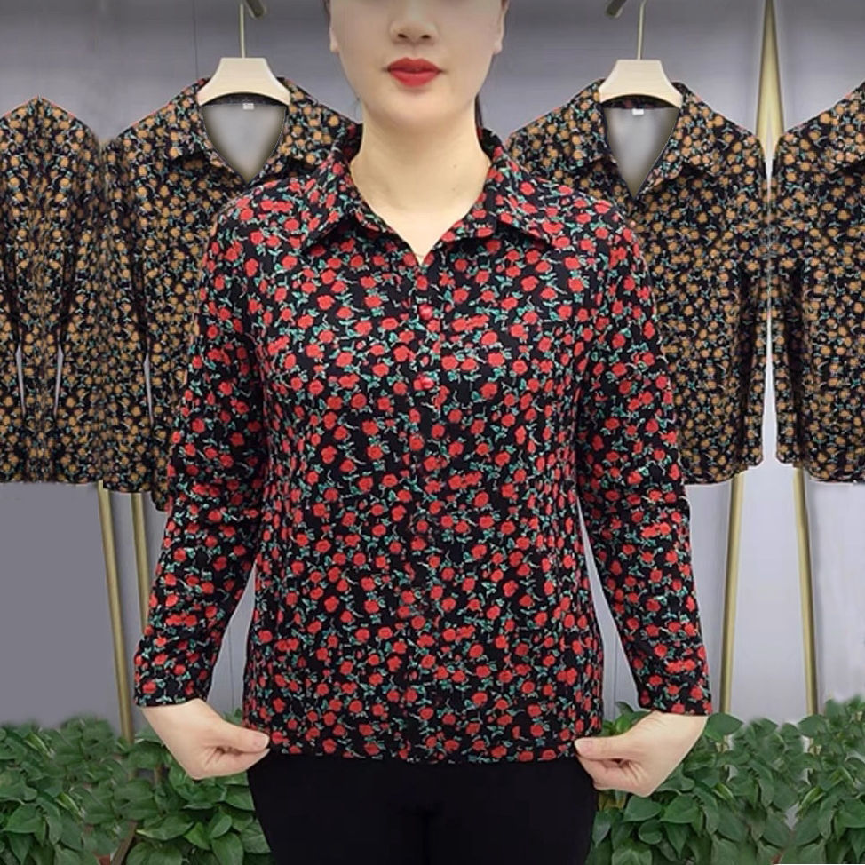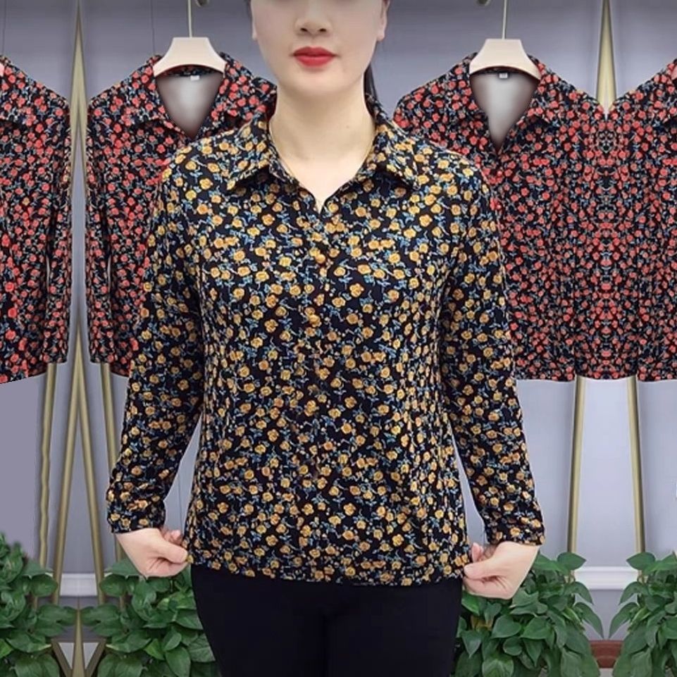 中老年女秋装长袖T恤新款翻领套头衫妈妈装春秋打底小衫宽松上衣